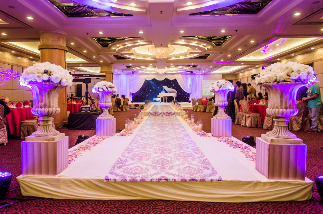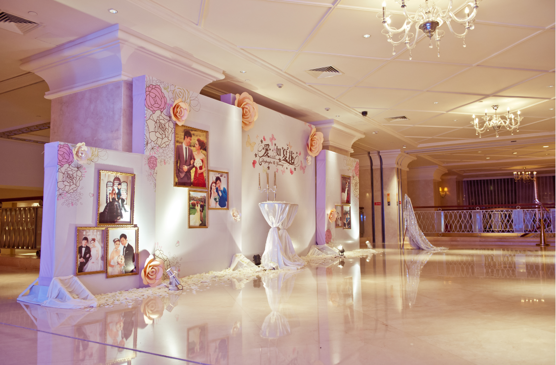 • 现场督导——————2名 现场搭建人员————6名 现场音乐渲染DJ师——1名 PAR灯操作人员———1名 婚礼现场: 全场专门为新人设计主题LOGO(包含材料KT板,含设计费用) 高端主题婚礼背景设计桁架搭建或32平大气唯美星空幕布 签到台主题造型纱幔一套 签到台精美设计摆件一组 特色迎宾台主题造型纱幔一套 特色迎宾台装饰摆台一组 豪华升级版T台专用路引10组 T台两边铺满花瓣 香槟杯塔或许愿砂(任选) 高端主题定制T台18M 迎宾区精美定制专属迎宾牌两个 欧式时尚造型迎宾架两副 54颗高亮LED染色PAR灯两组(15个)(开场灯光秀使用) 超炫摇头光束灯2台 新人入场大型追光灯1部 大型舞美泡泡机一台