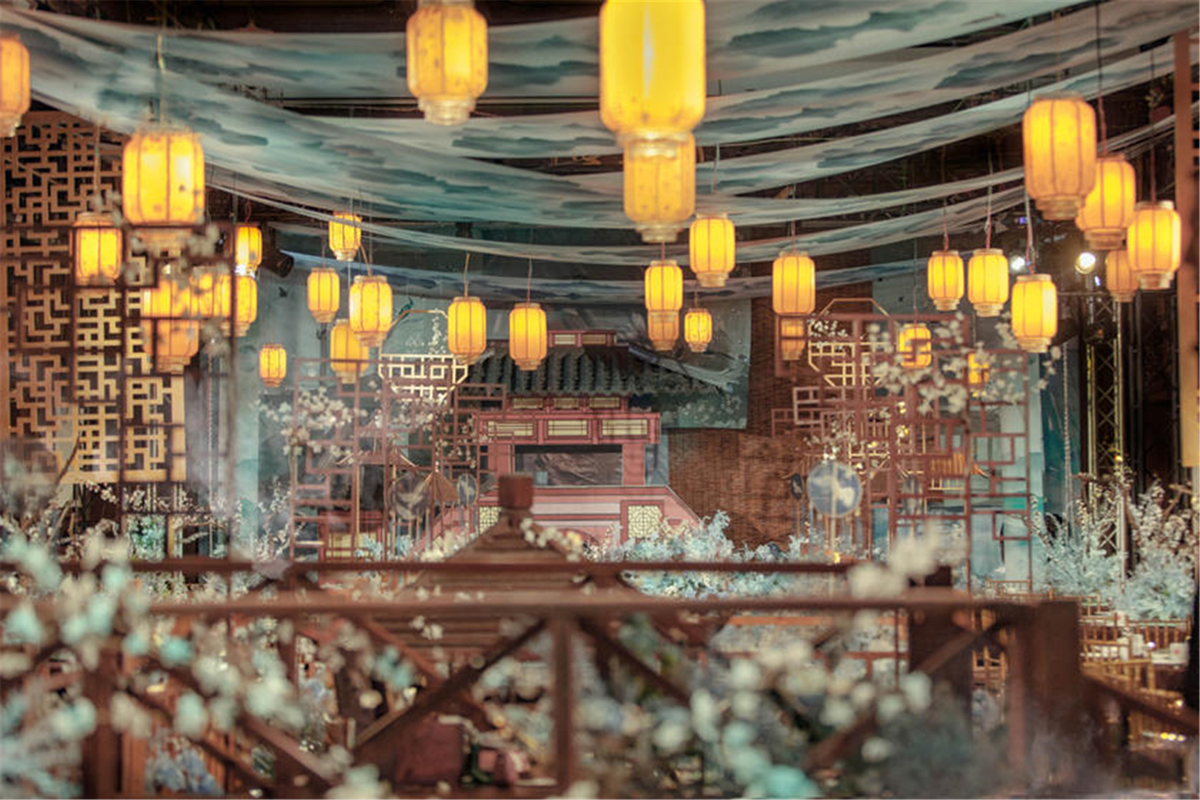 • 红蓝色系中式特色复古婚礼&特色吊顶