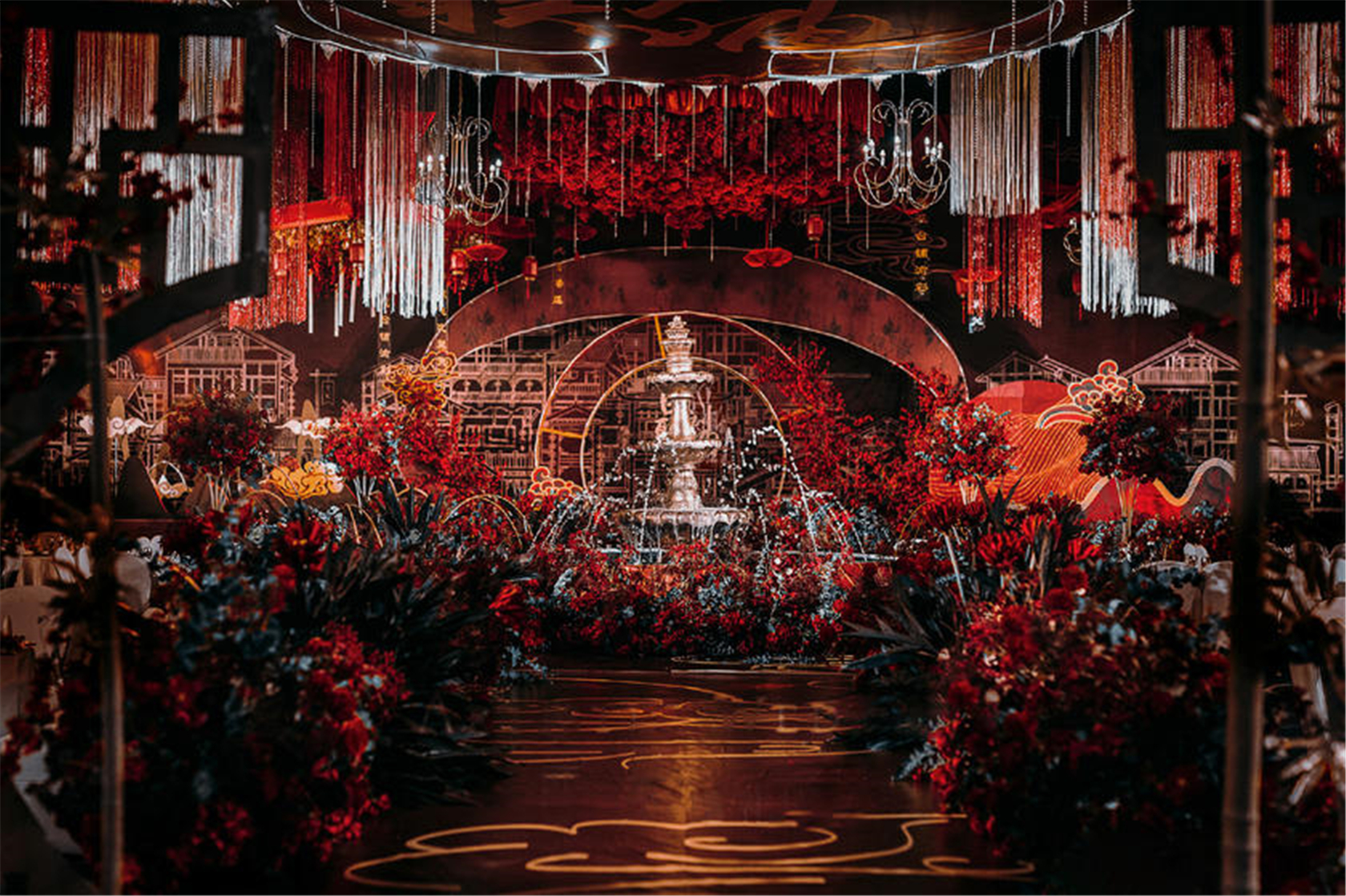 • 大气红色系特色新中式复古婚礼&豪华打吊顶