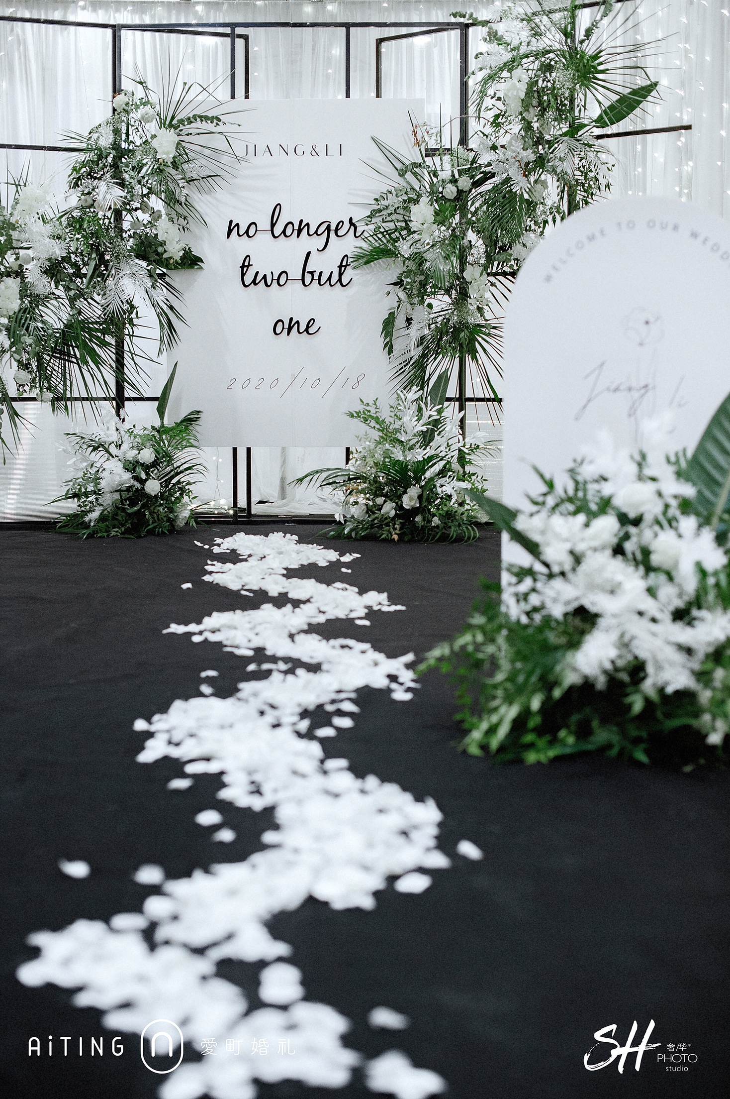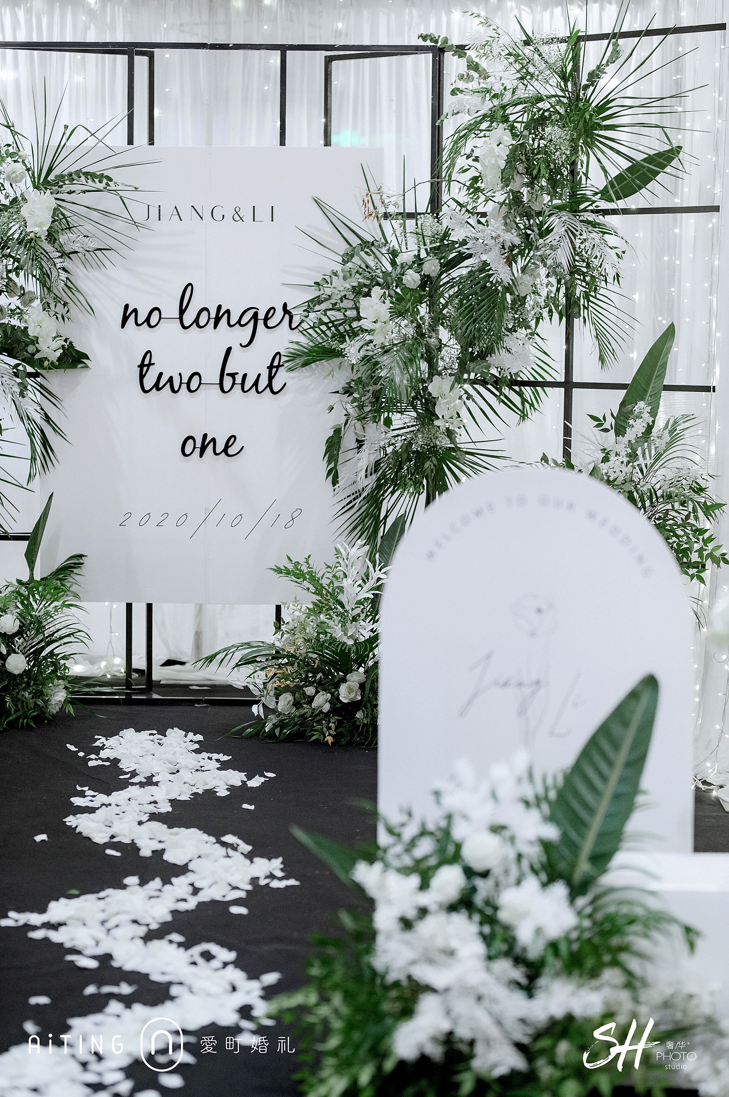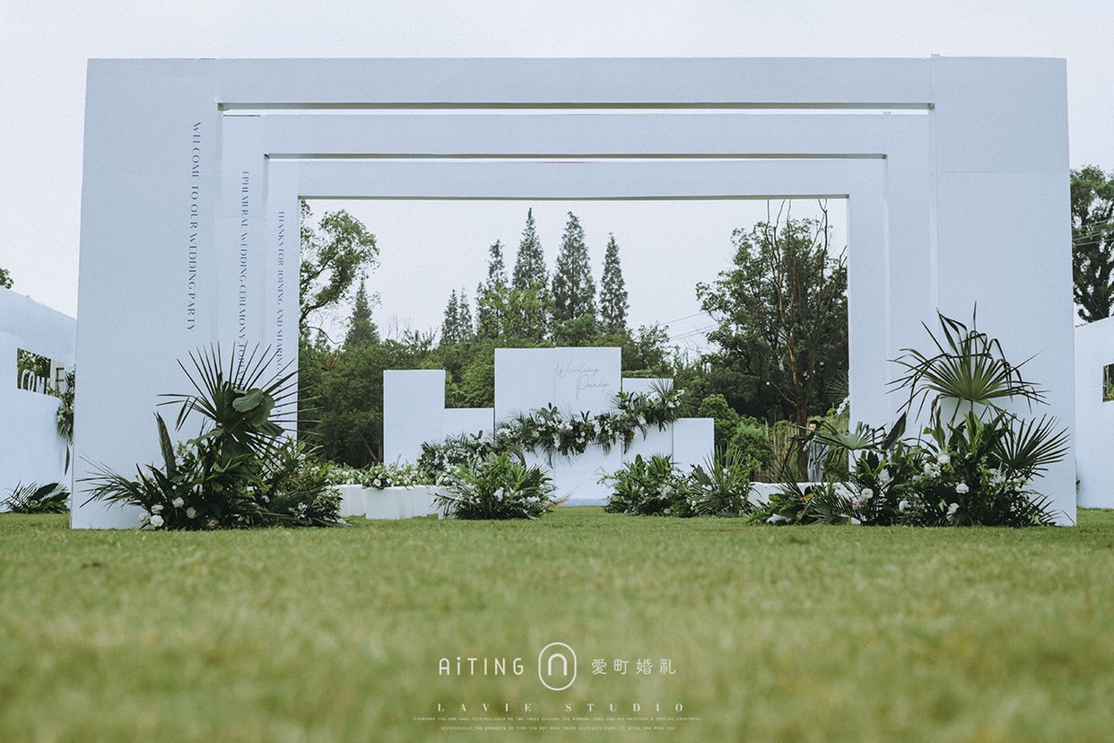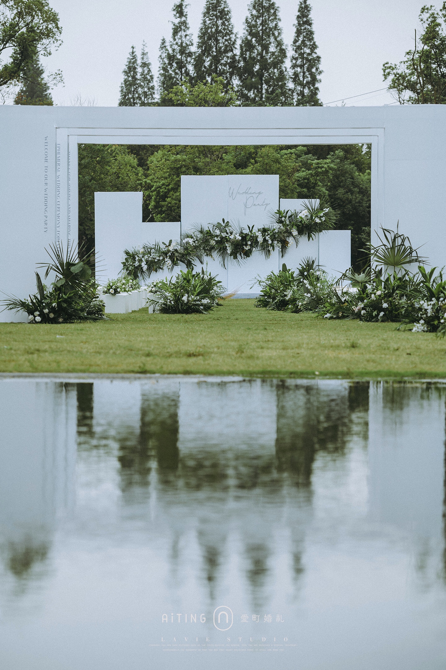 • 婚礼以白绿为主调🍃 纯白色的背景架构+纯鲜花绿植花材布置 错落有致的架构打造超强的立体空间 一场迷宫空间感婚礼❤️