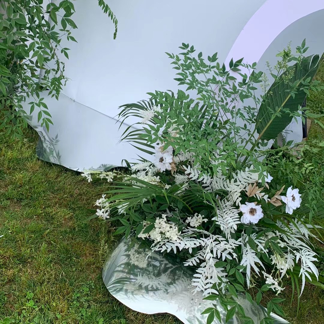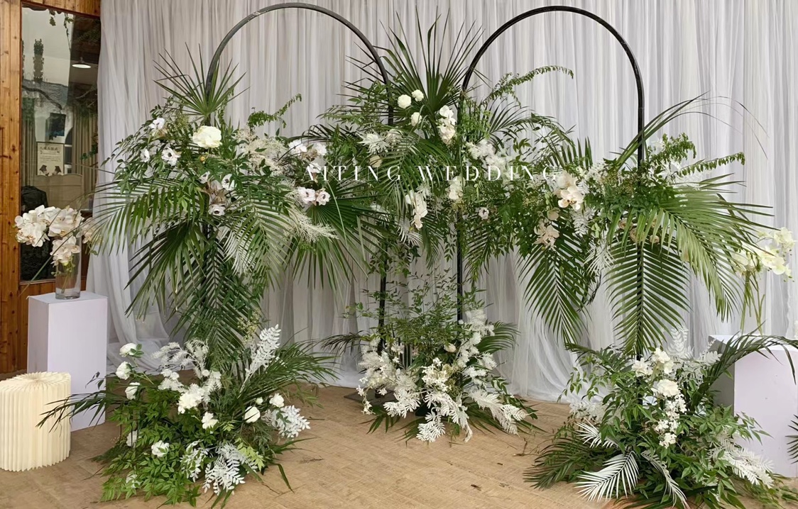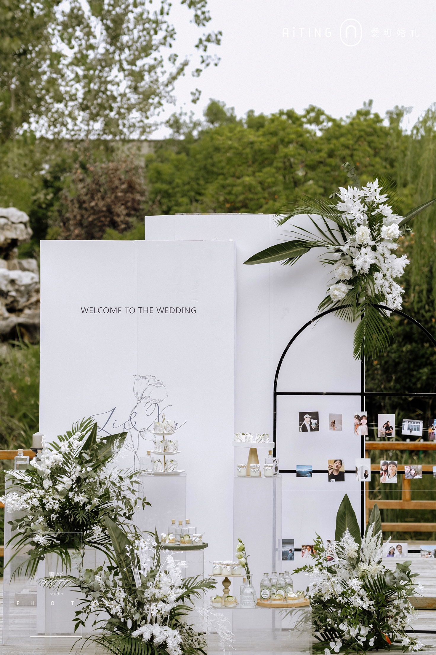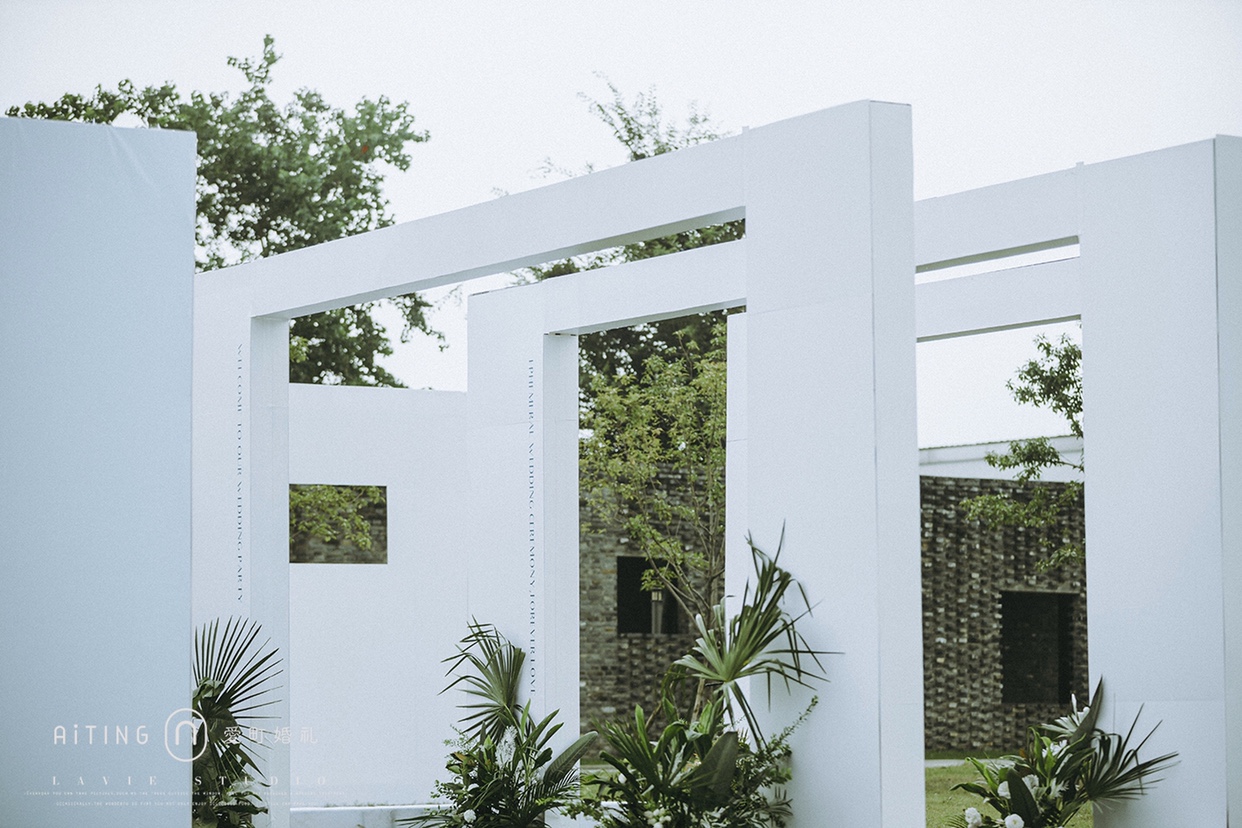 • 婚礼以白绿为主调🍃 纯白色的背景架构+纯鲜花绿植花材布置 错落有致的架构打造超强的立体空间 一场迷宫空间感婚礼❤️