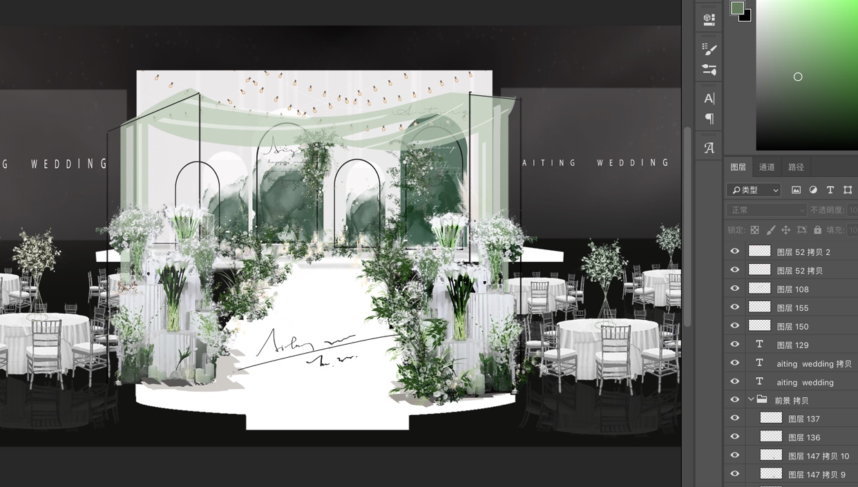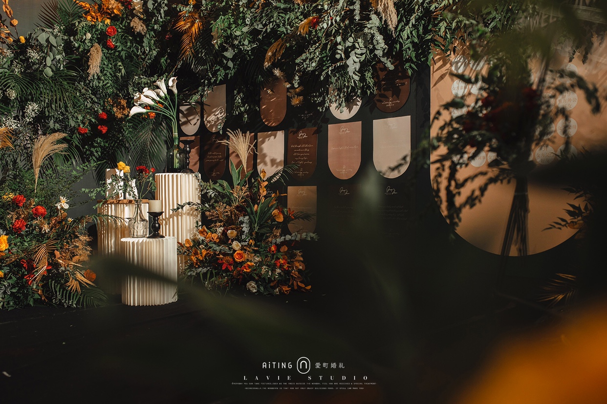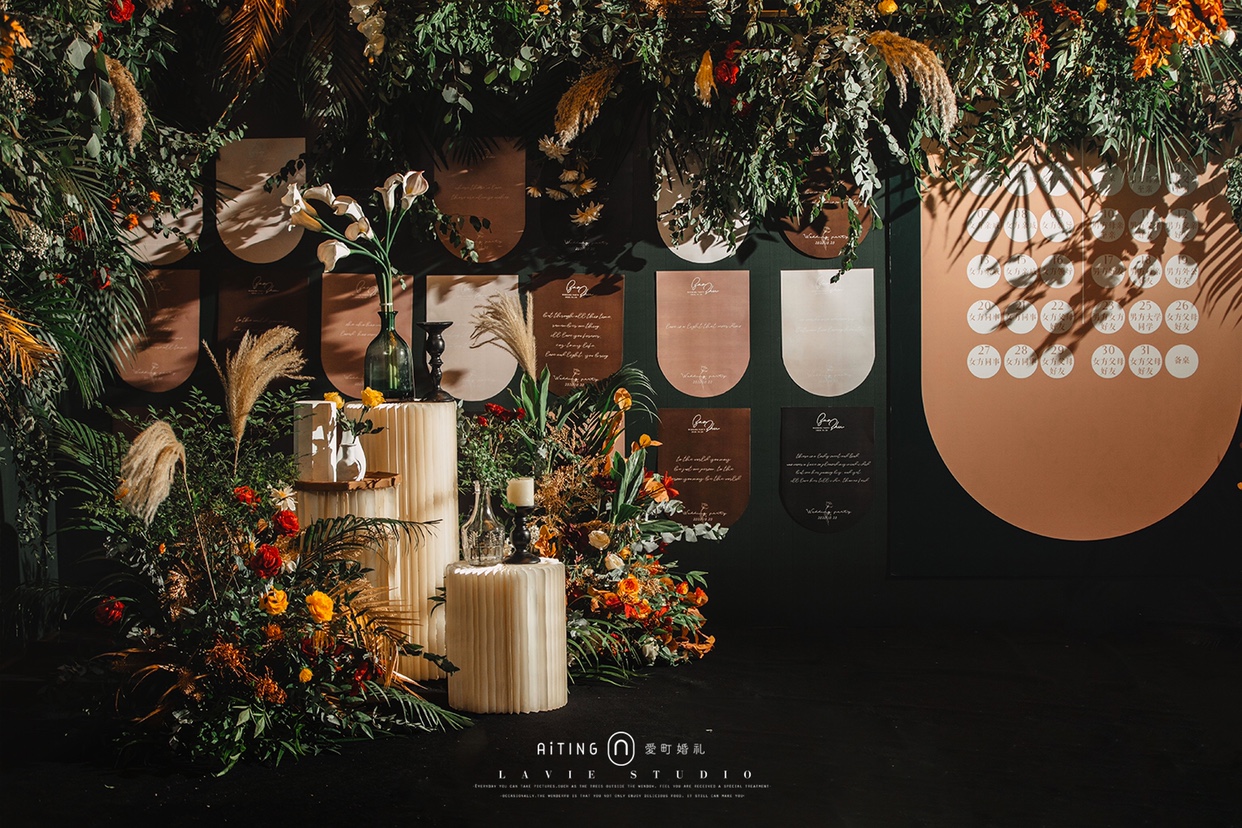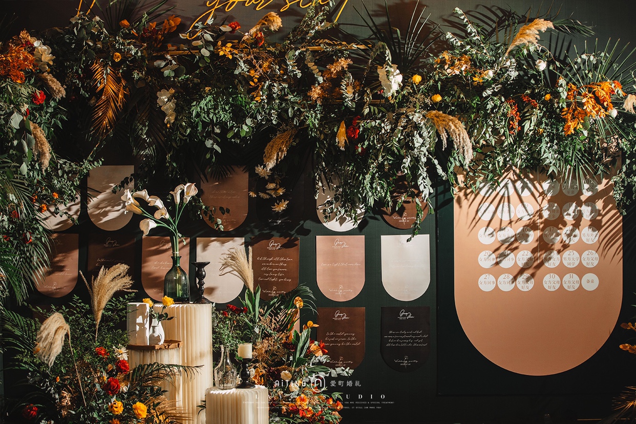 • 爱町|20.10.20 花园国际牡丹厅 小众|复古|格调|质感 |浪漫 墨绿色搭配棕红色 复古极简的高级婚礼