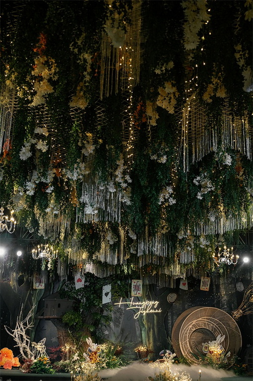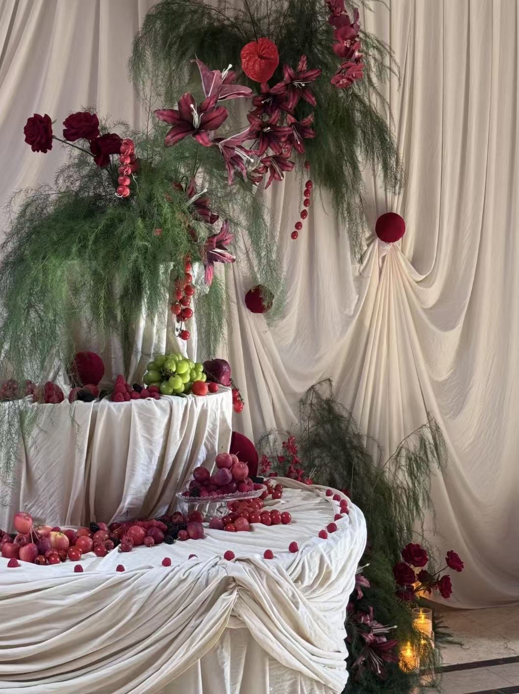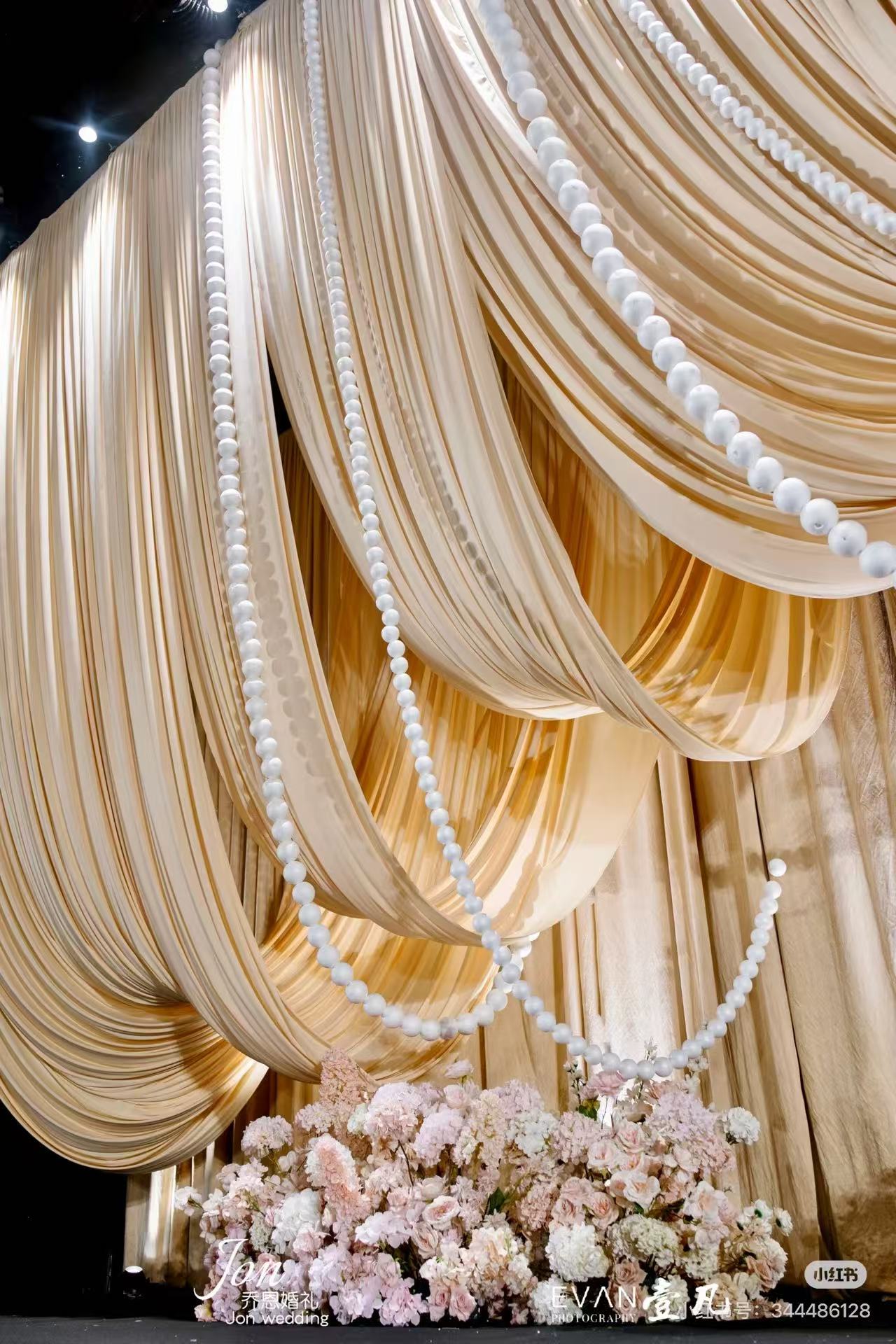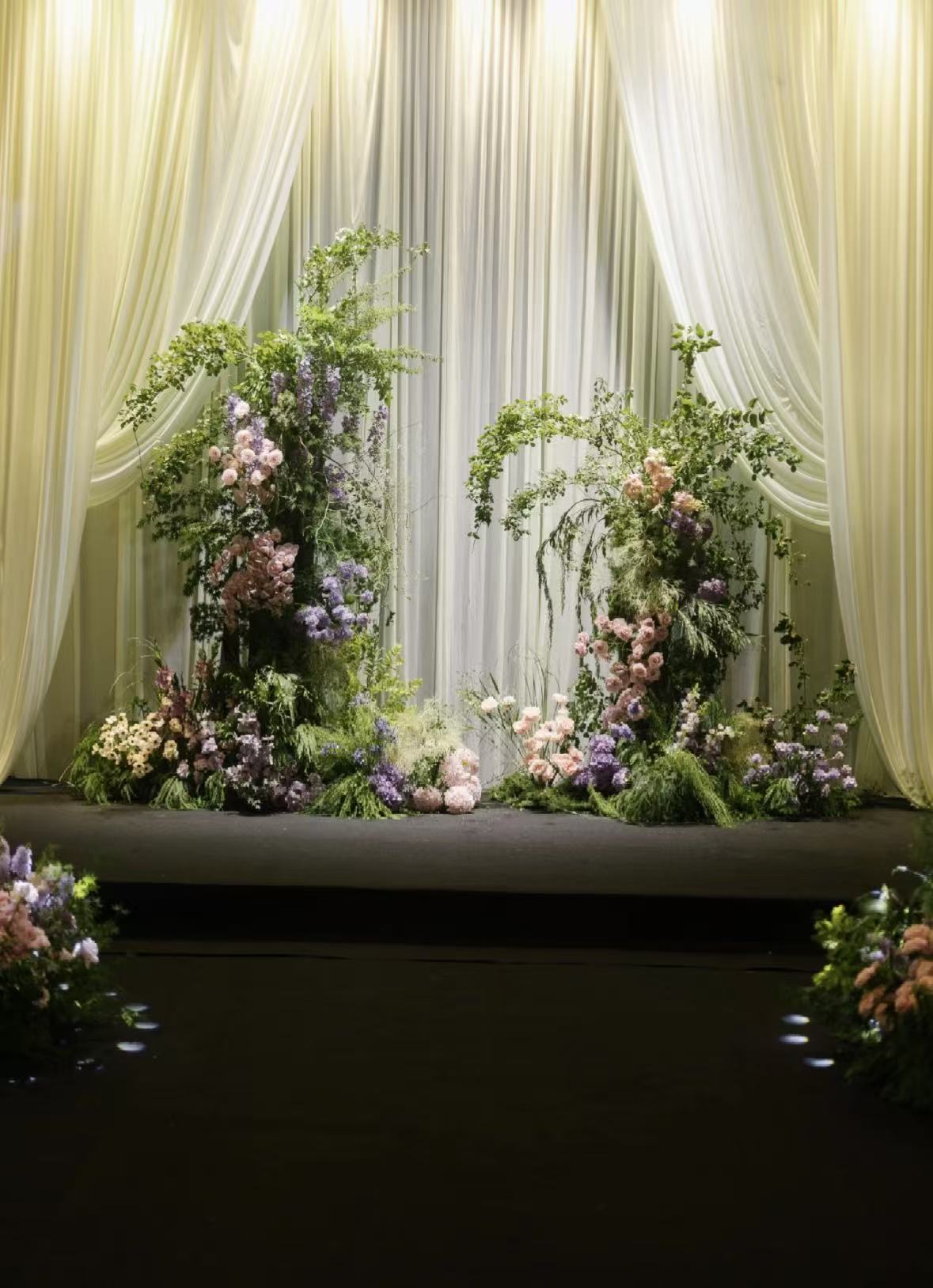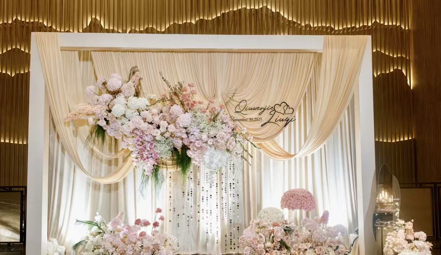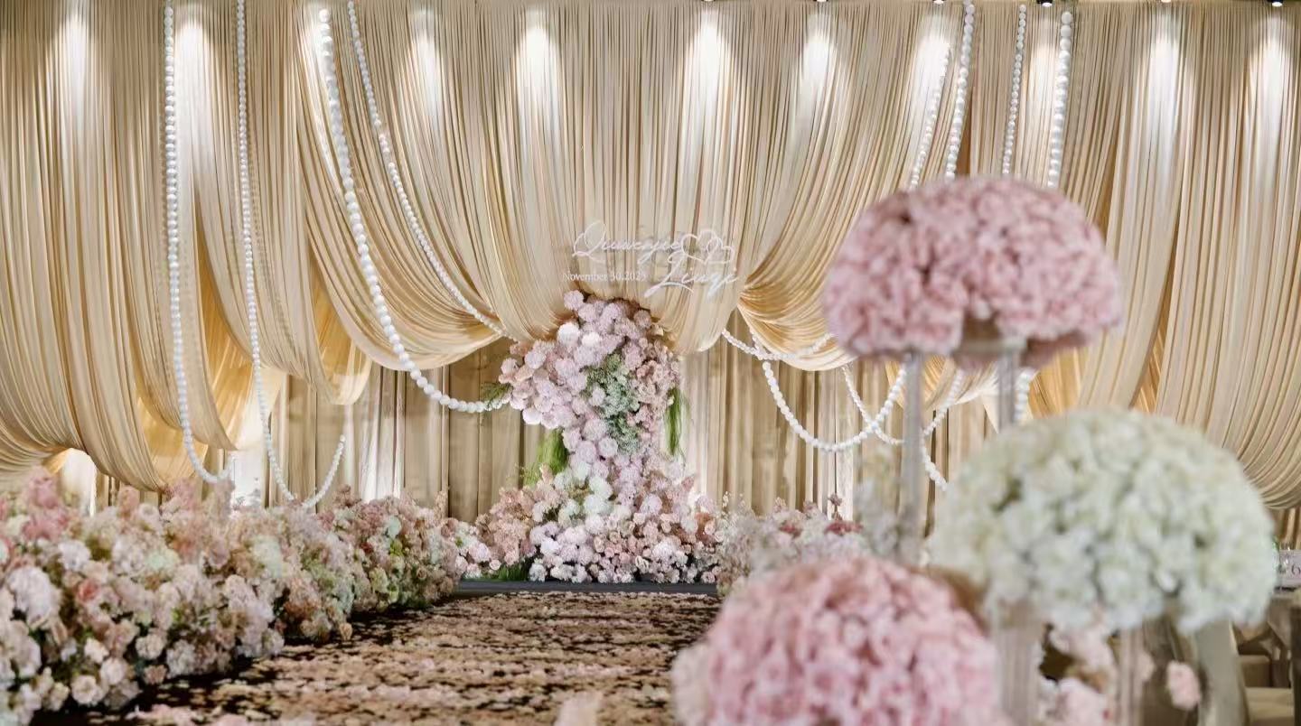 • 香槟布幔搭上绿色花艺,韩式风格瞬间提升