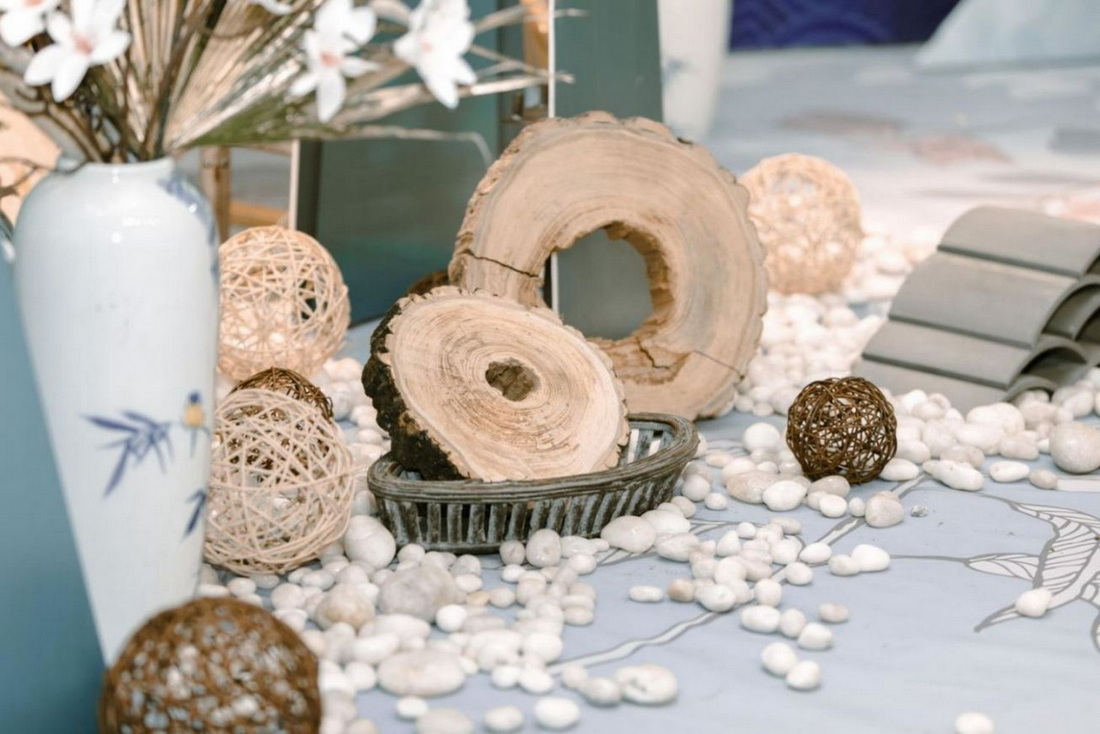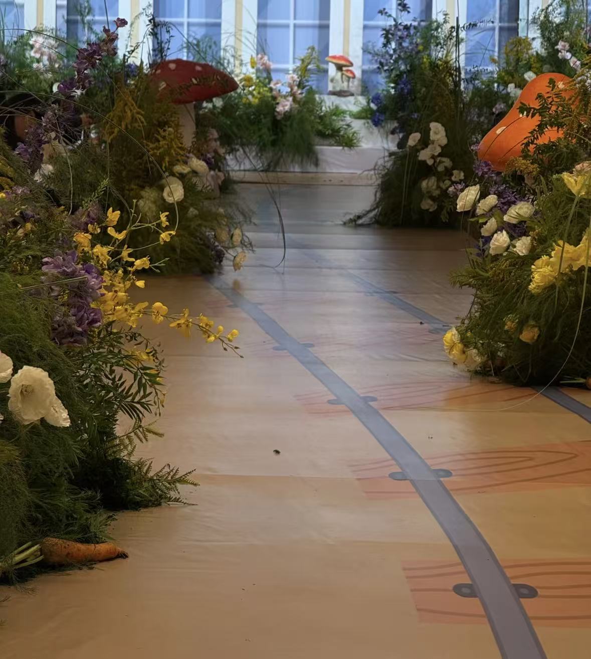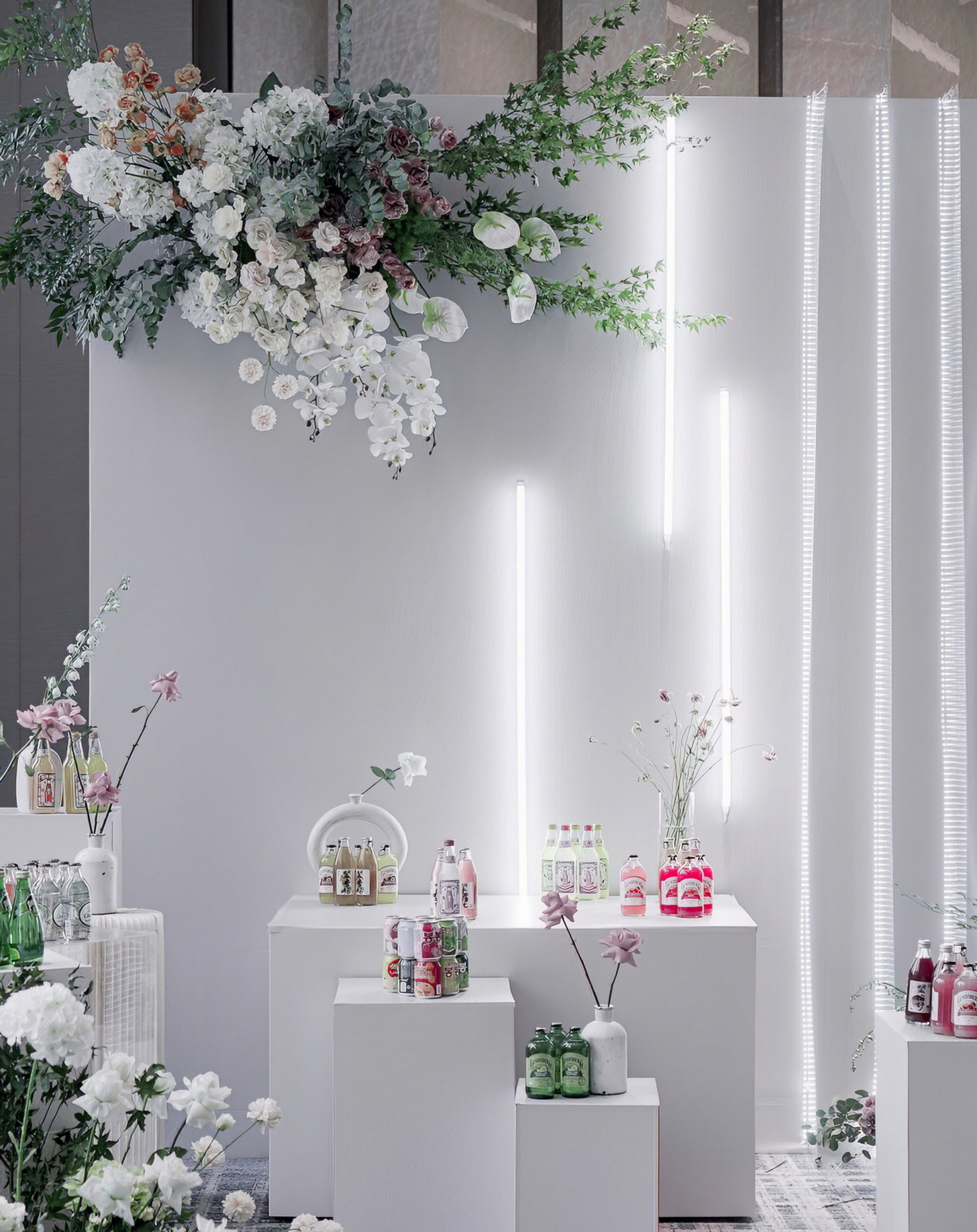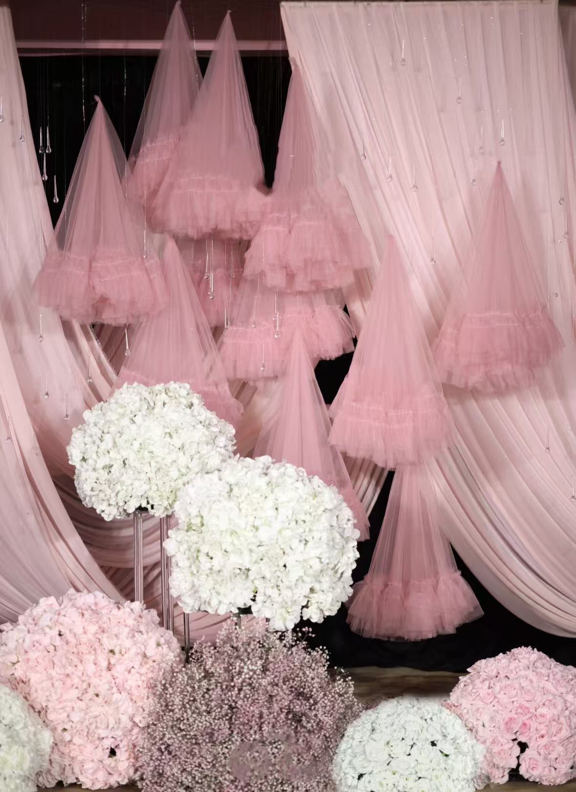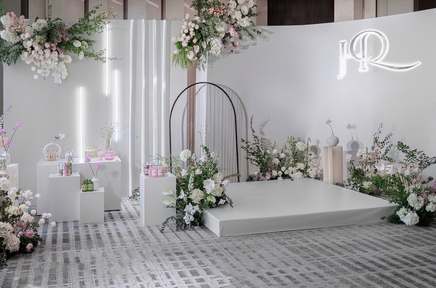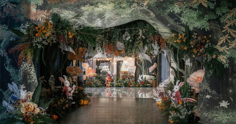 • 香槟布幔搭上绿色花艺,韩式风格瞬间提升
