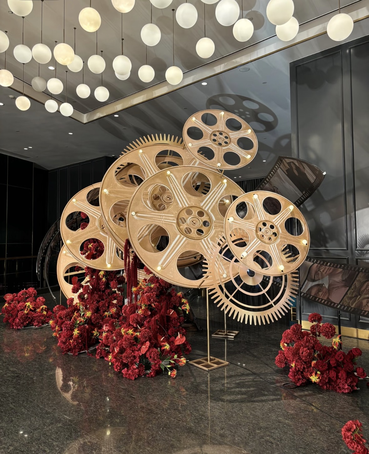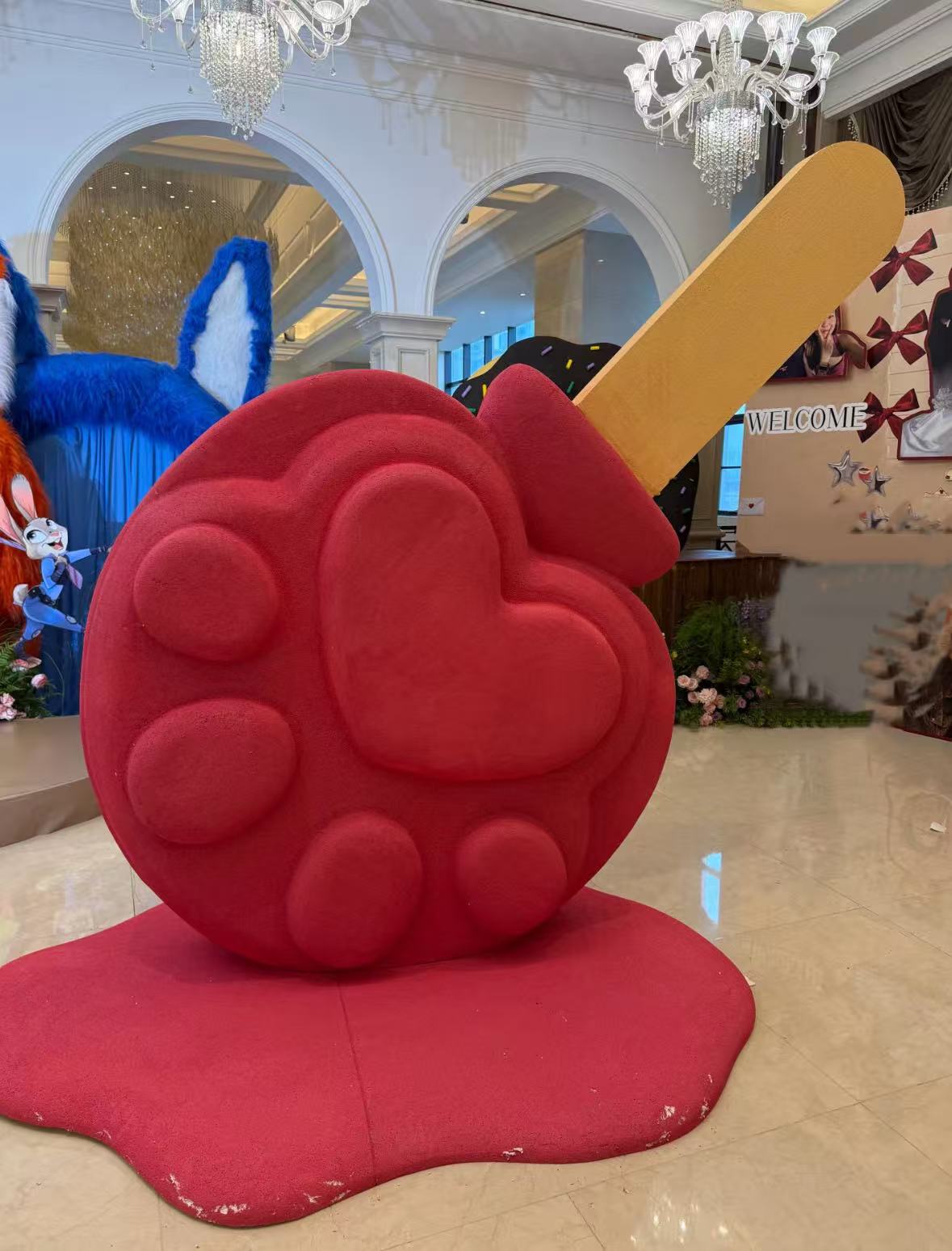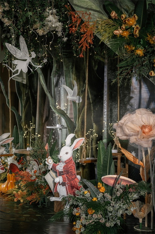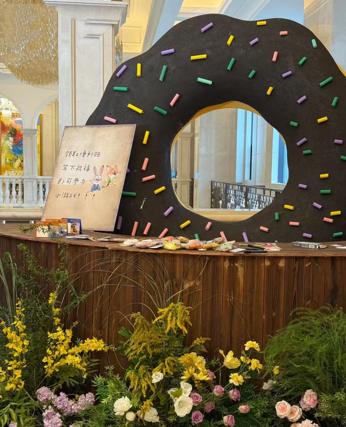 • # 橙色的立体狐头像,还有兔子警官头像,豹子警官,当然还有记忆尤深的粉色雪糕啦! 还有2米多高的超大甜甜圈~厅内布置的舞台主背景的动物城大楼,火车轨道的T台,蘑菇,胡萝卜,婚礼现场藏着动物城的整个街区~