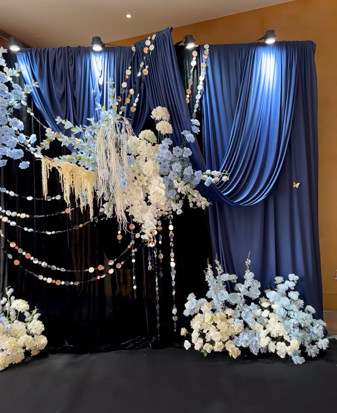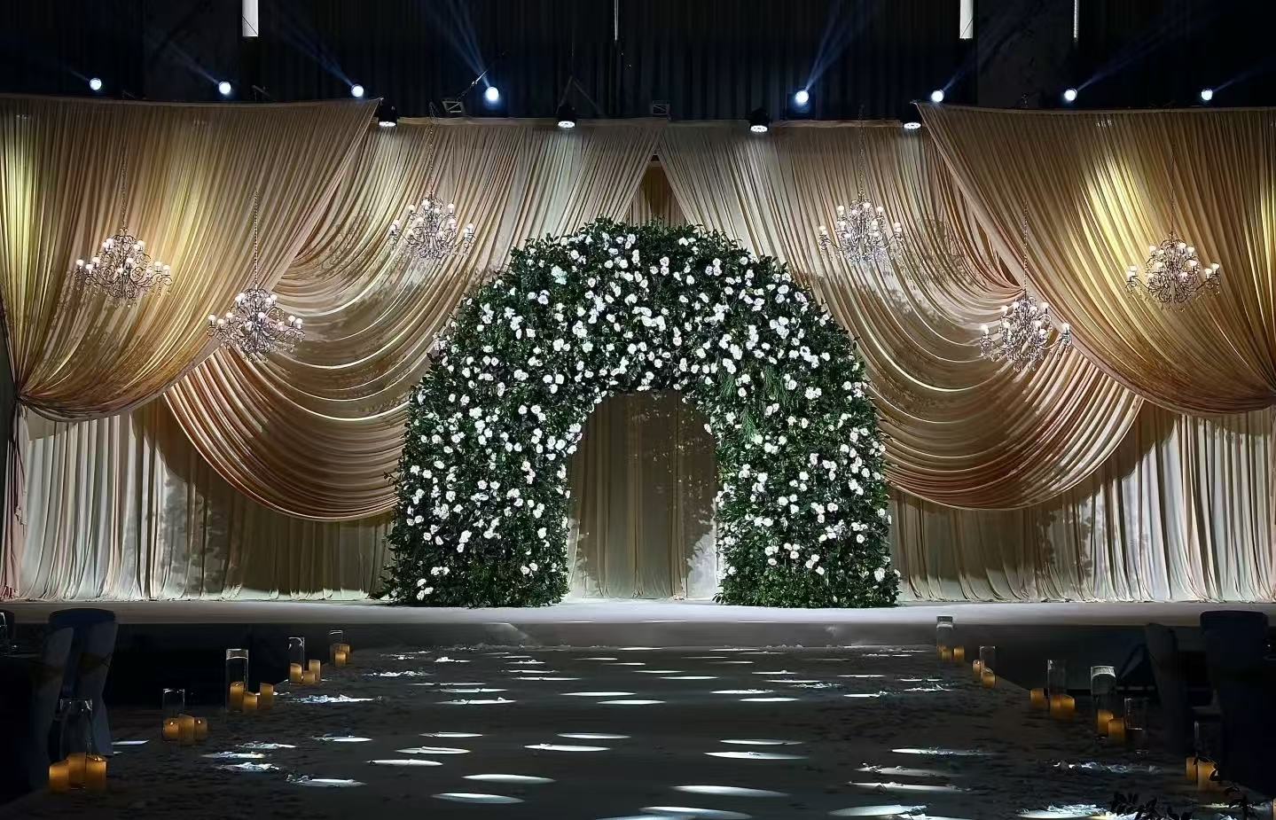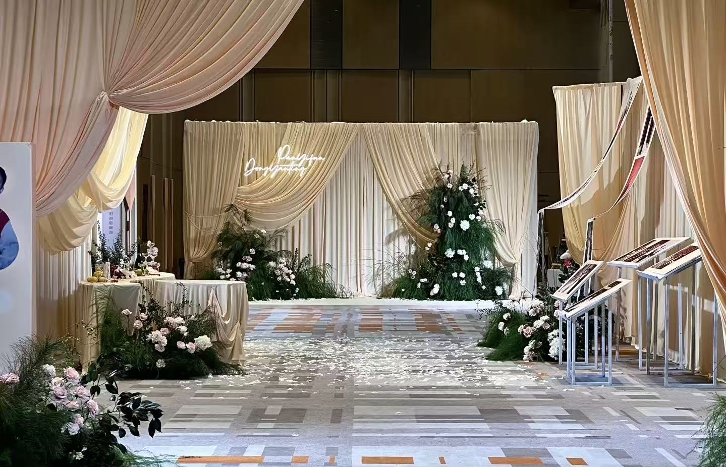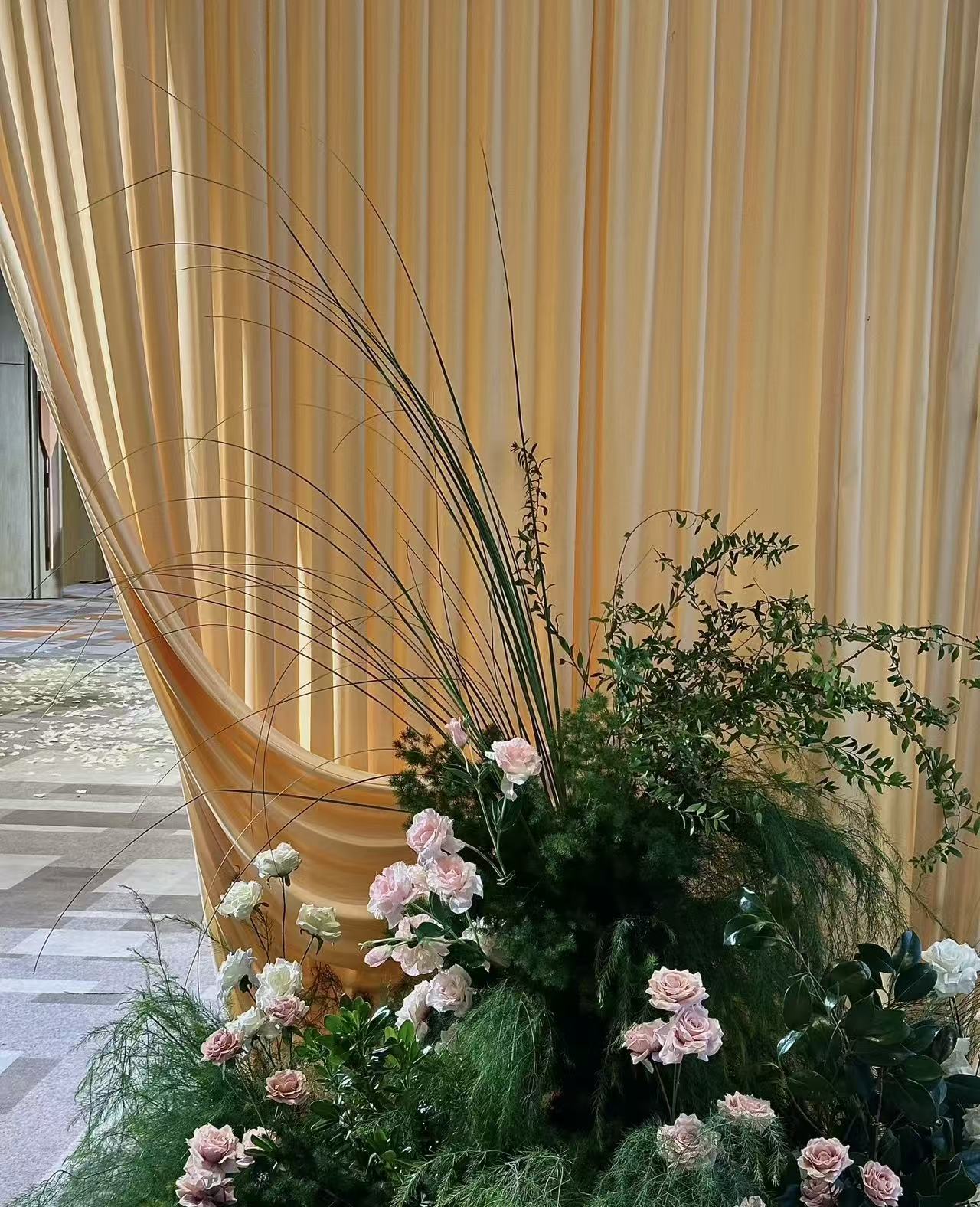 • 香槟布幔搭上绿色花艺,韩式风格瞬间提升