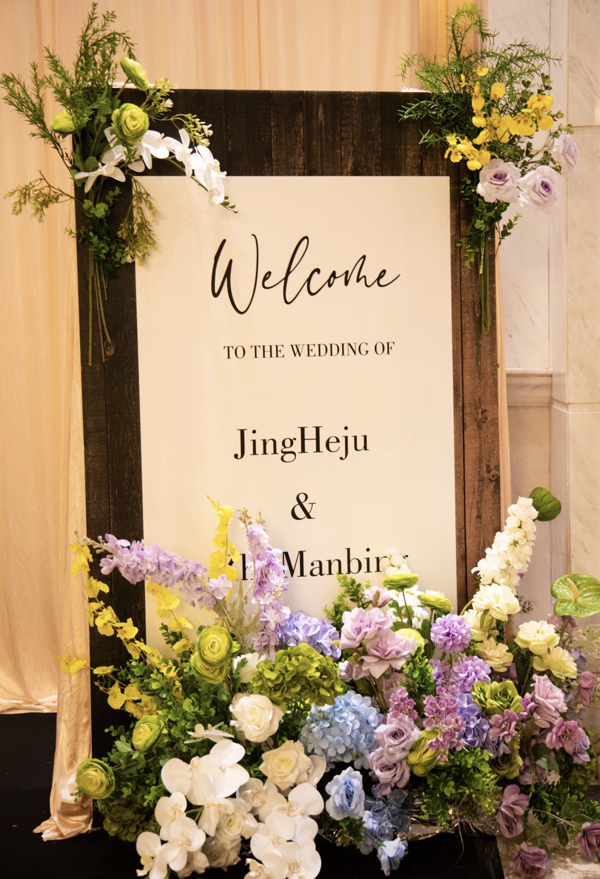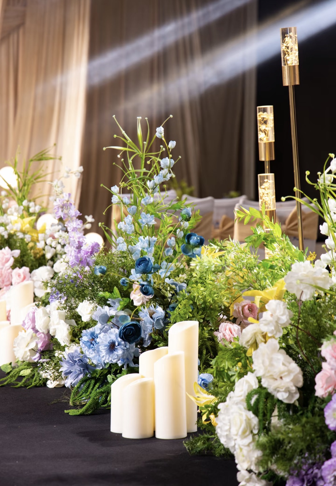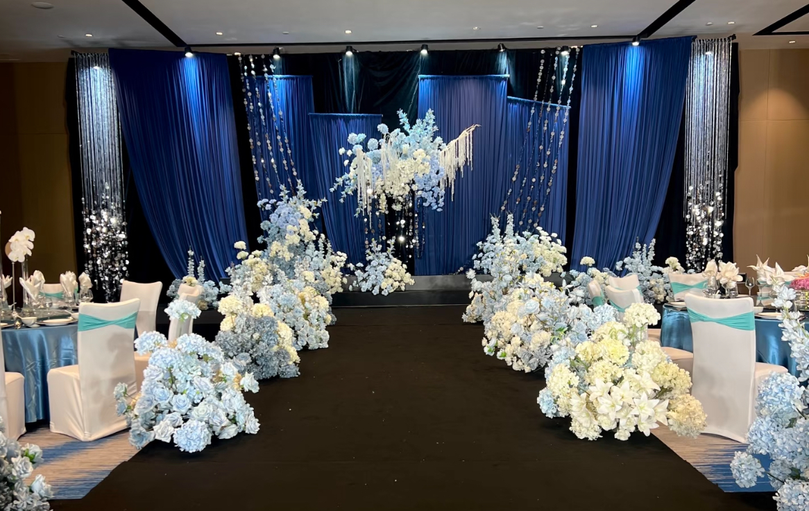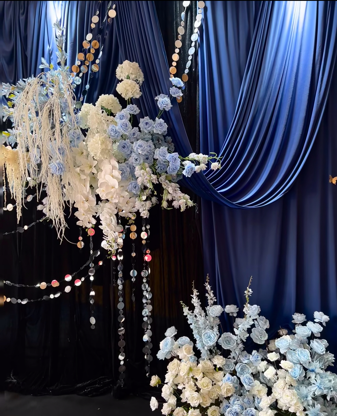 • 香槟布幔搭上绿色花艺,韩式风格瞬间提升