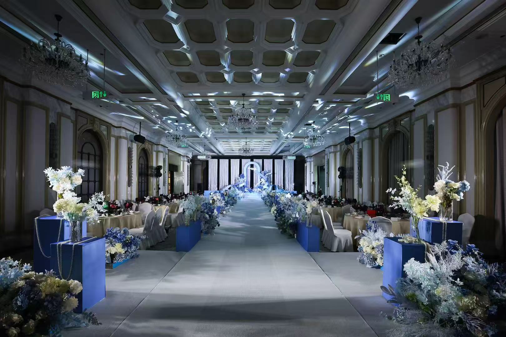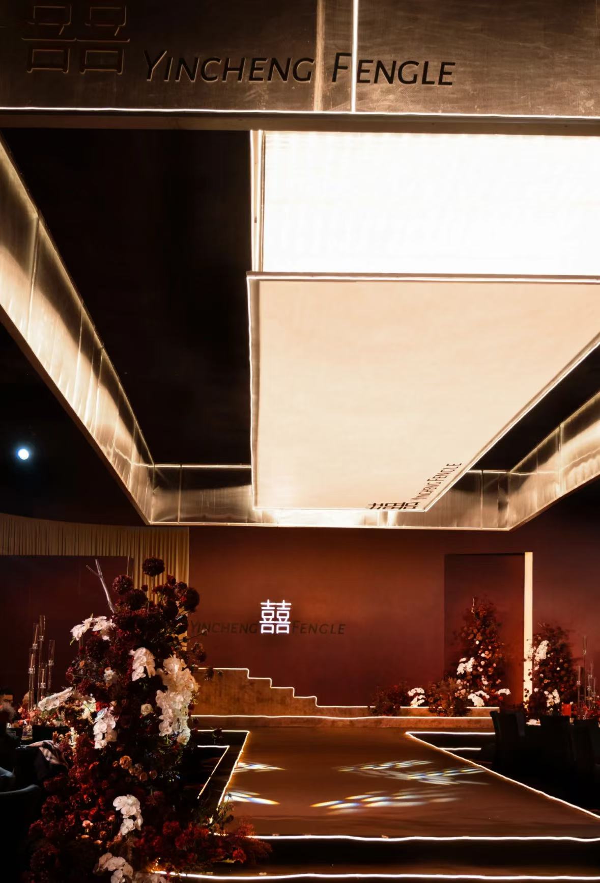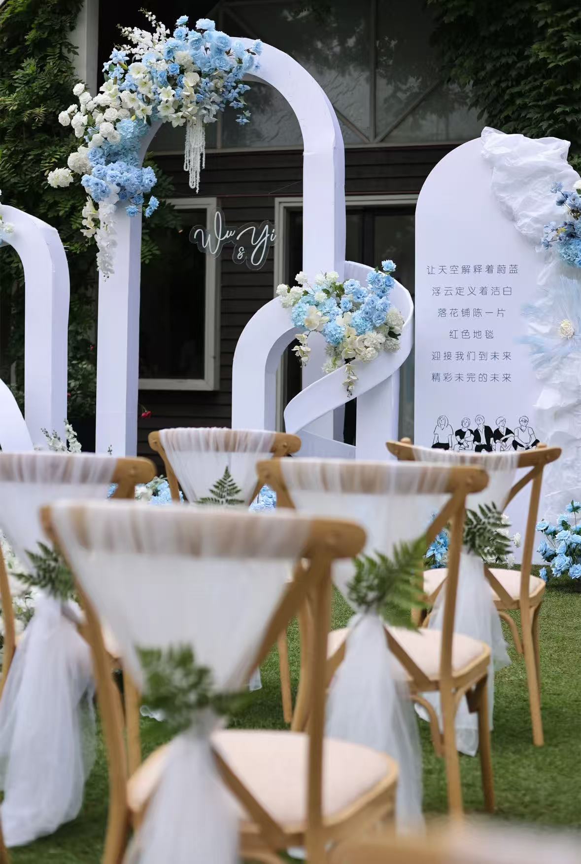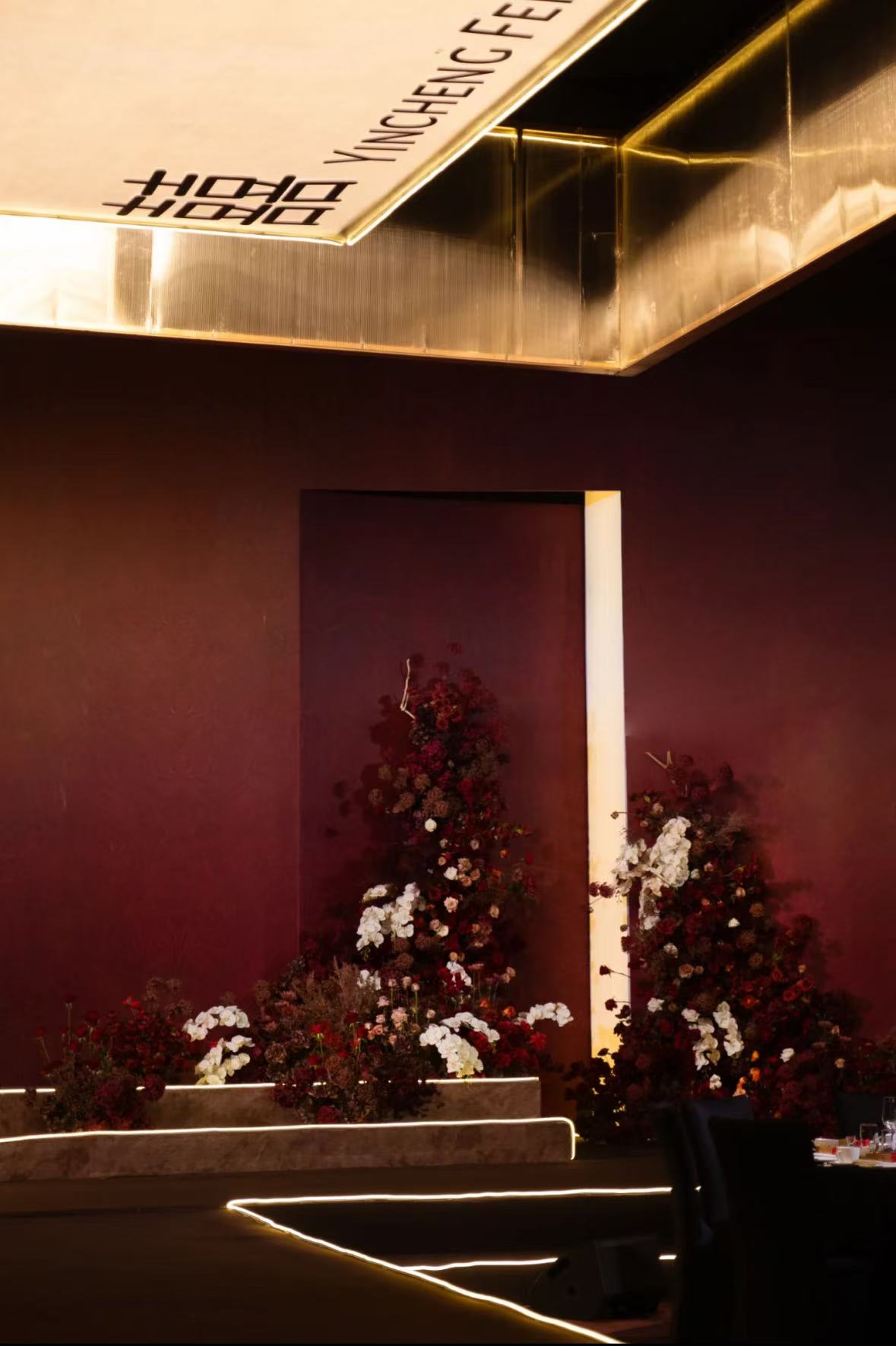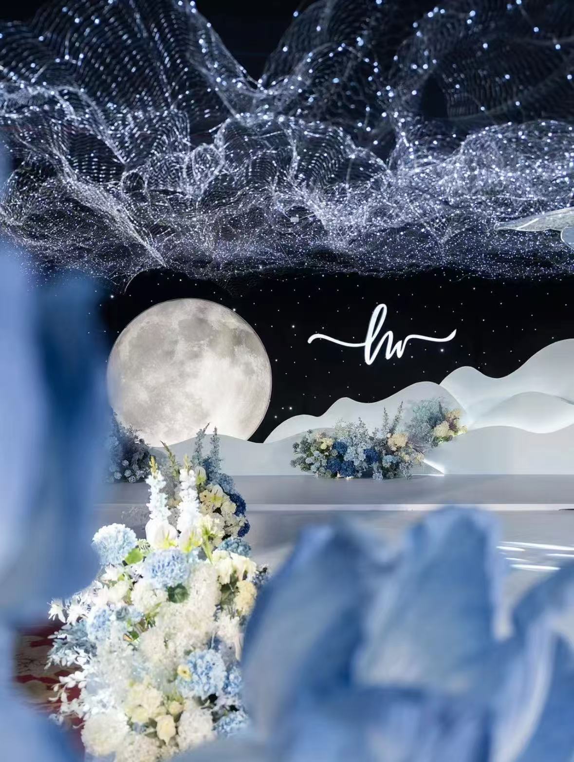 • 蓝黄渐变纱幔变“国风画卷” 正中央柿蒂纹 装置寓意事事如意! 靛蓝祥云背景+唐代瓷器点缀 没有繁杂没有堆砌⛩️