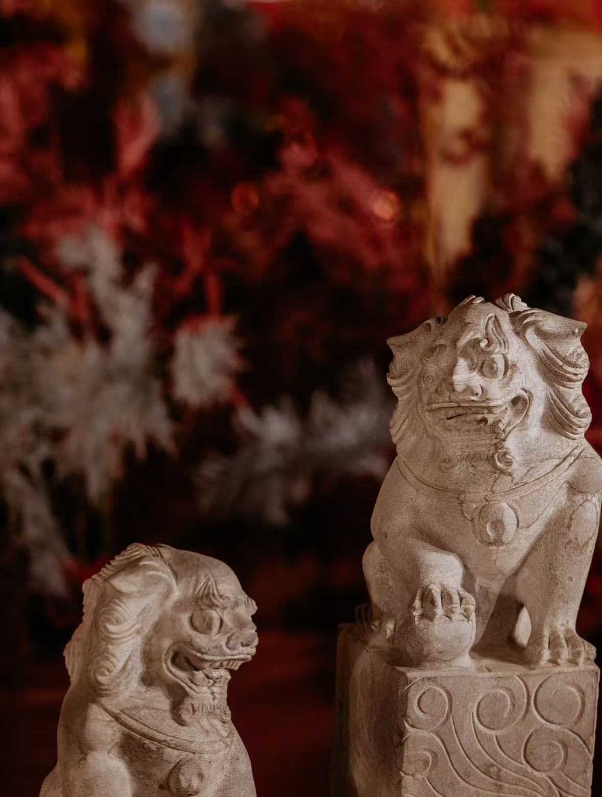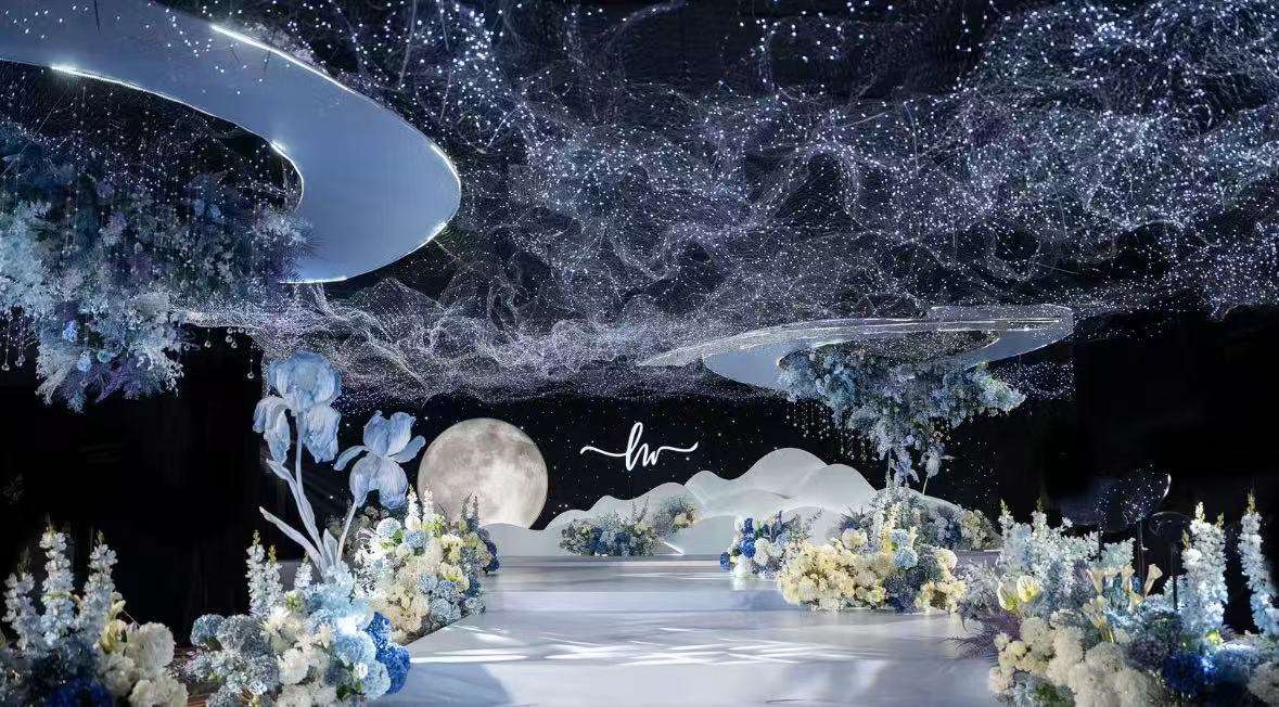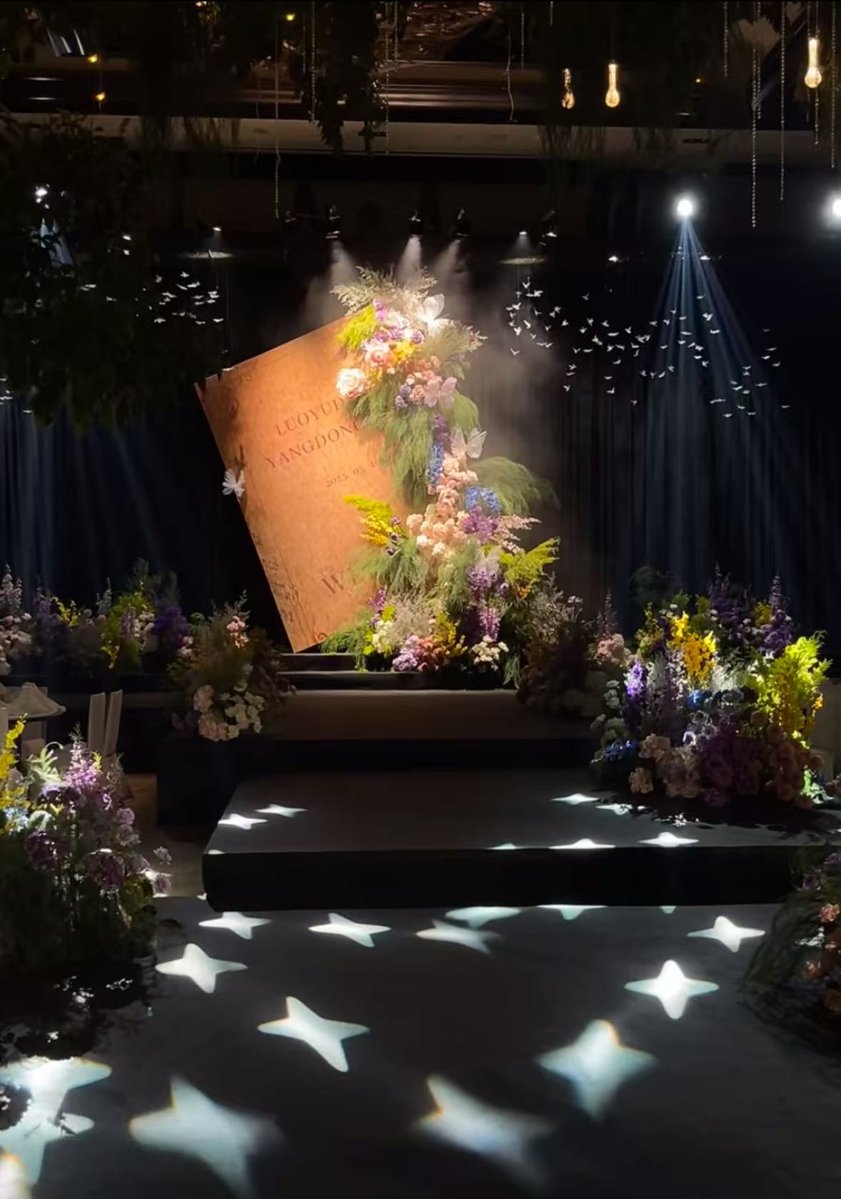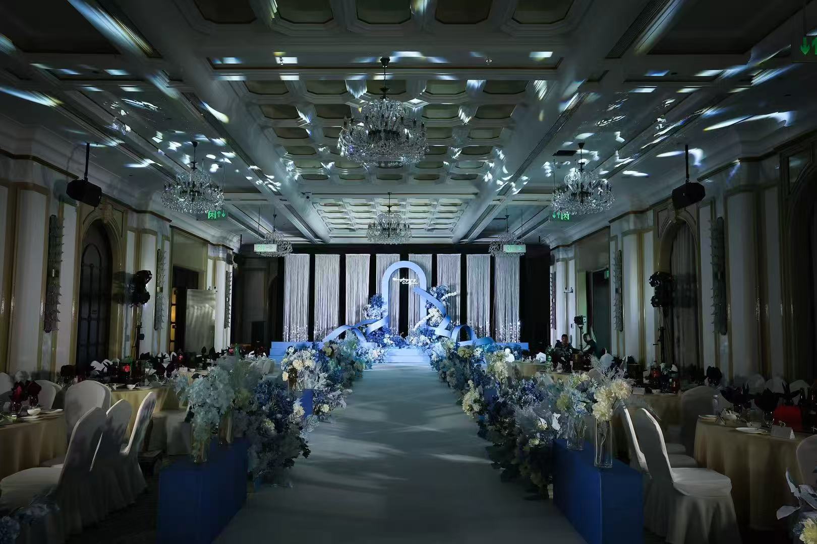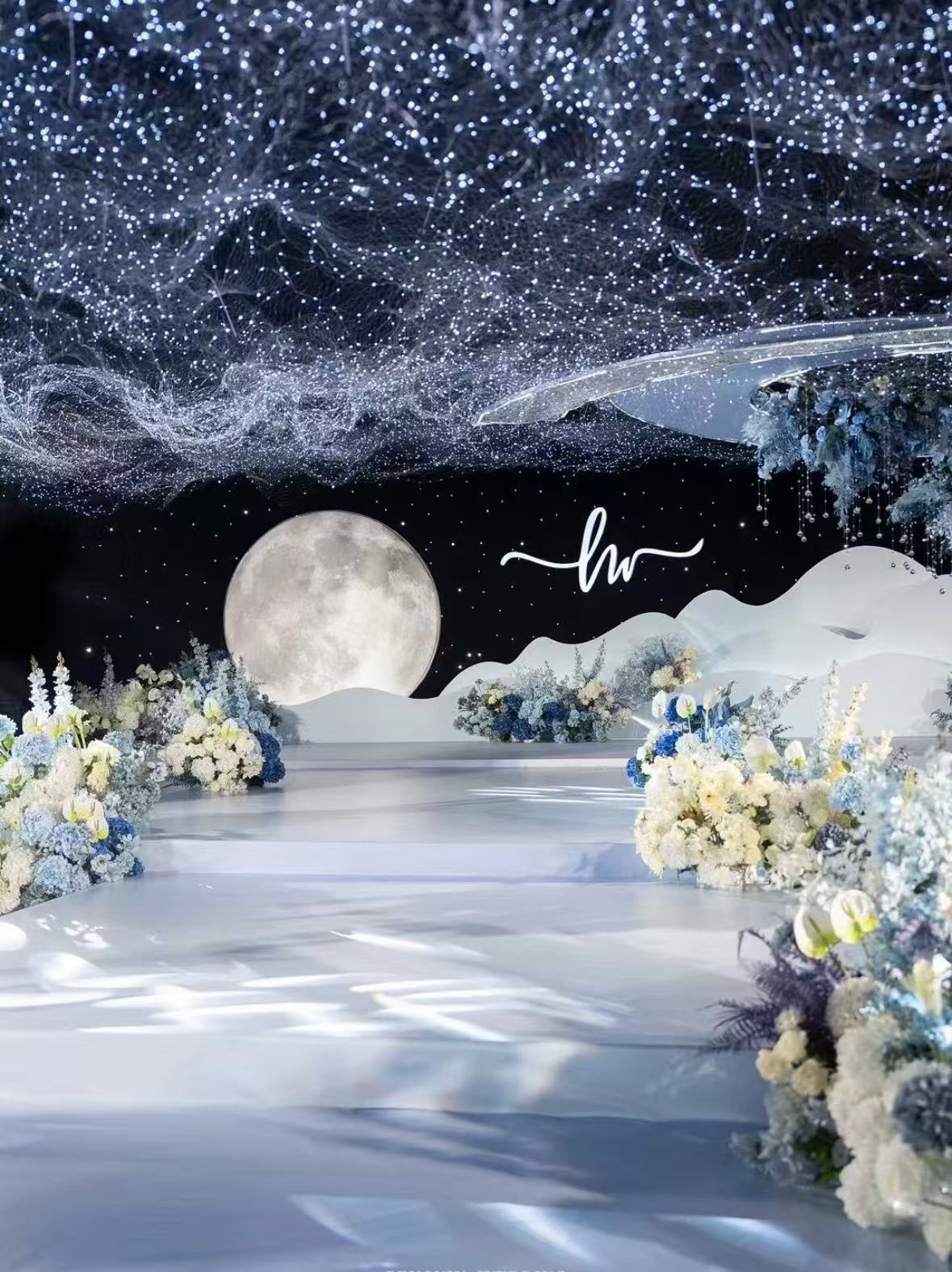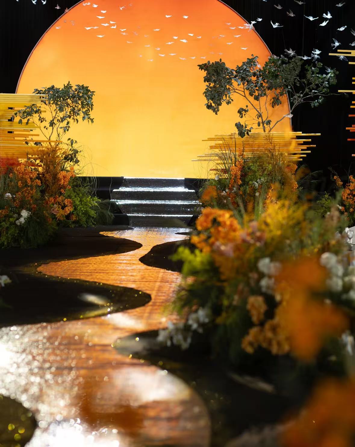 • 蓝黄渐变纱幔变“国风画卷” 正中央柿蒂纹 装置寓意事事如意! 靛蓝祥云背景+唐代瓷器点缀 没有繁杂没有堆砌⛩️