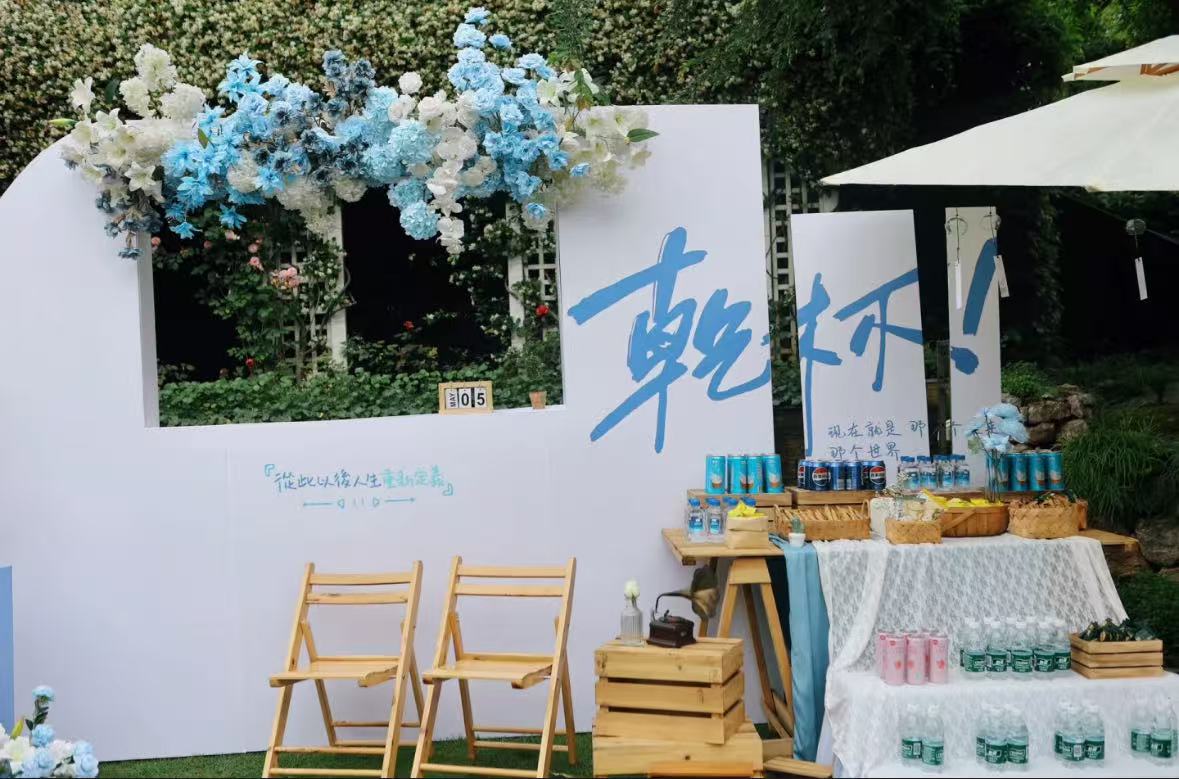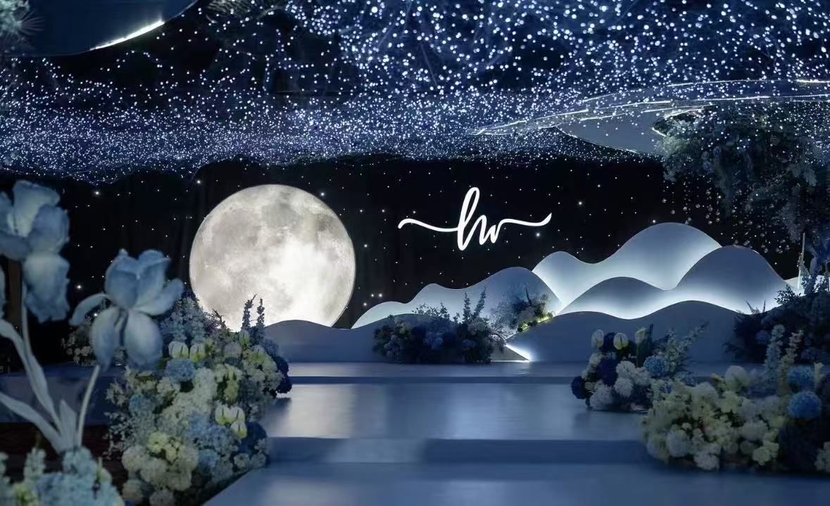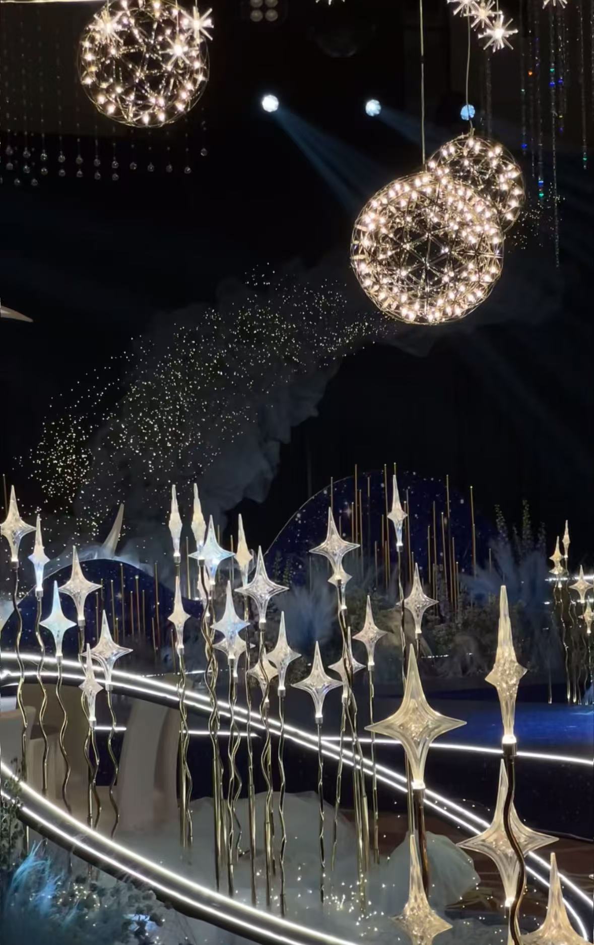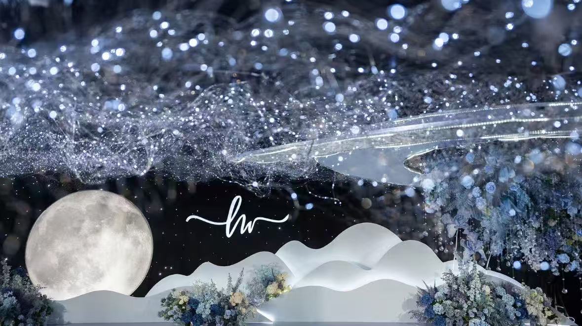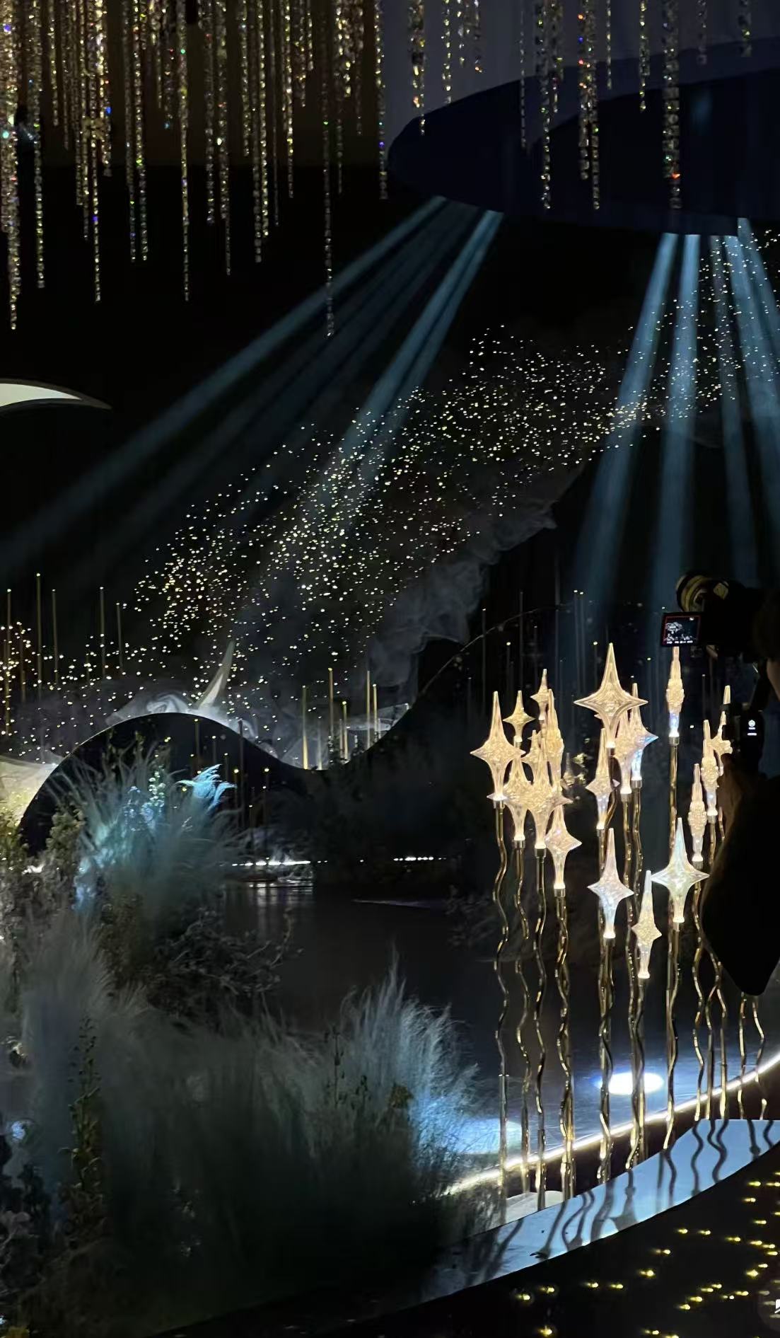• 蓝黄渐变纱幔变“国风画卷” 正中央柿蒂纹 装置寓意事事如意! 靛蓝祥云背景+唐代瓷器点缀 没有繁杂没有堆砌⛩️