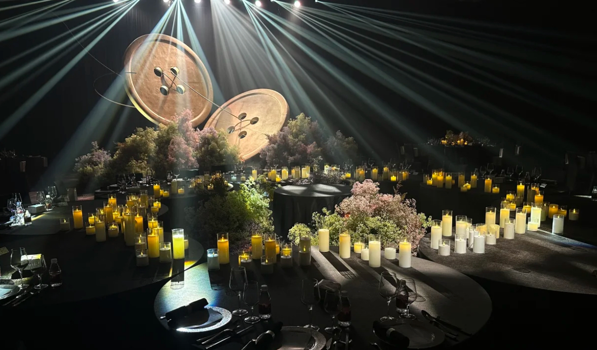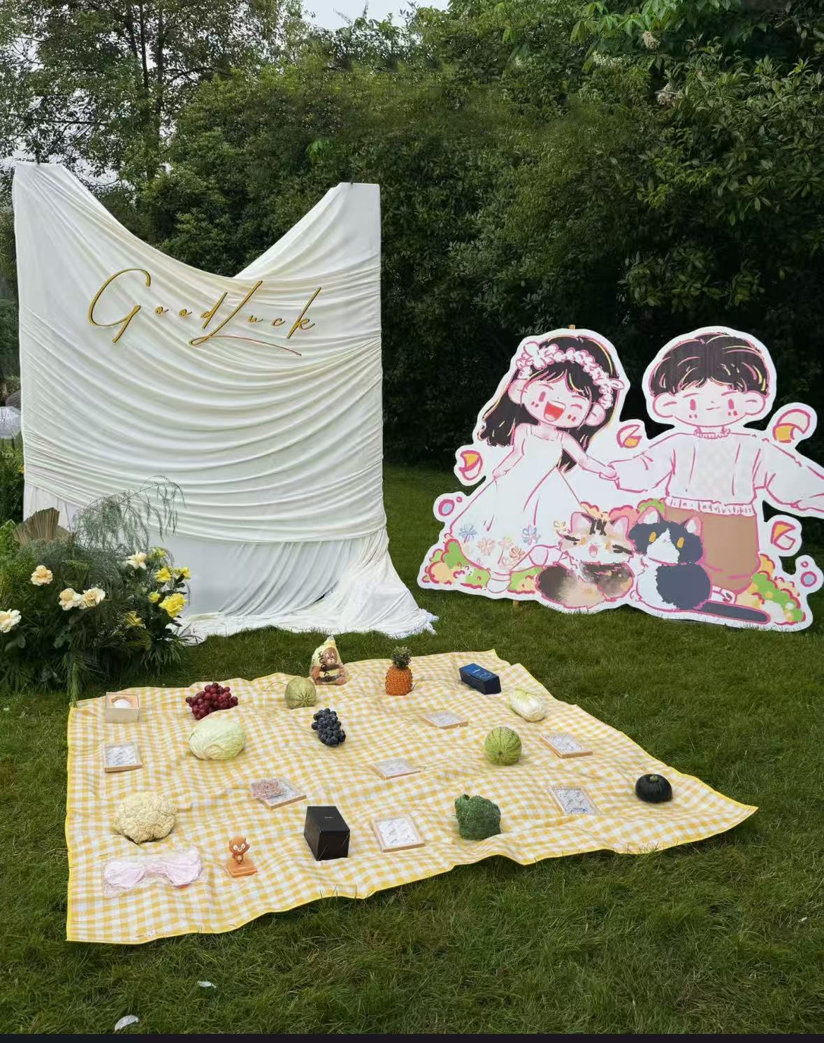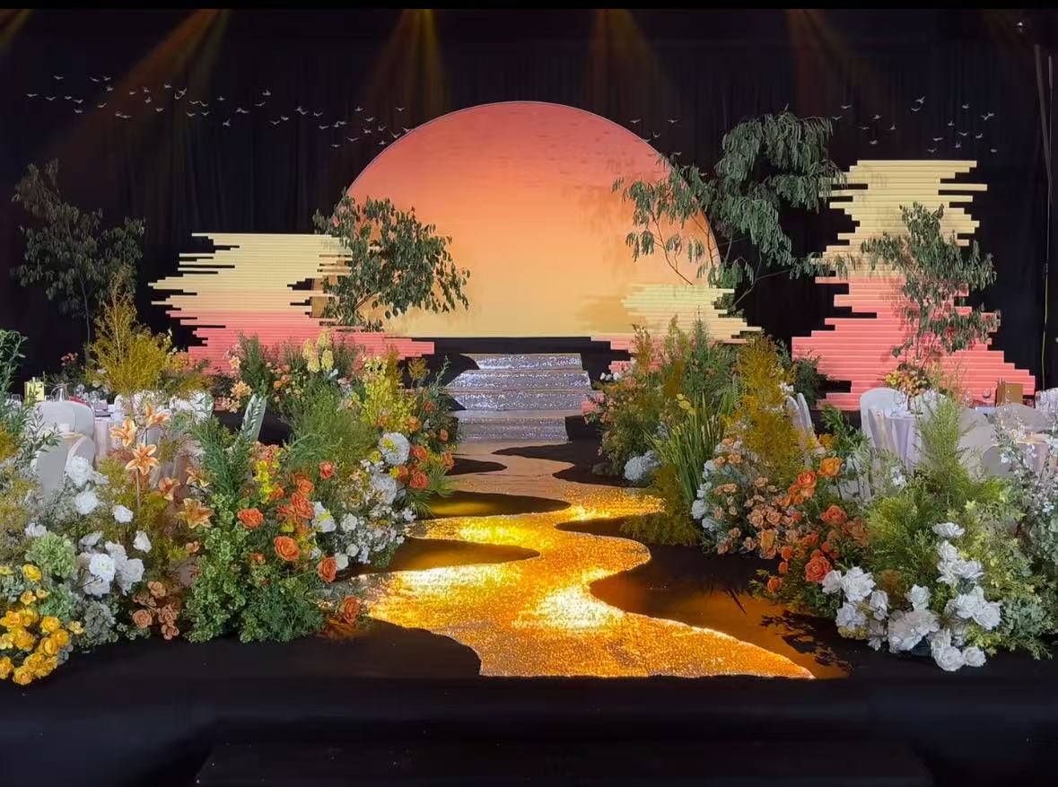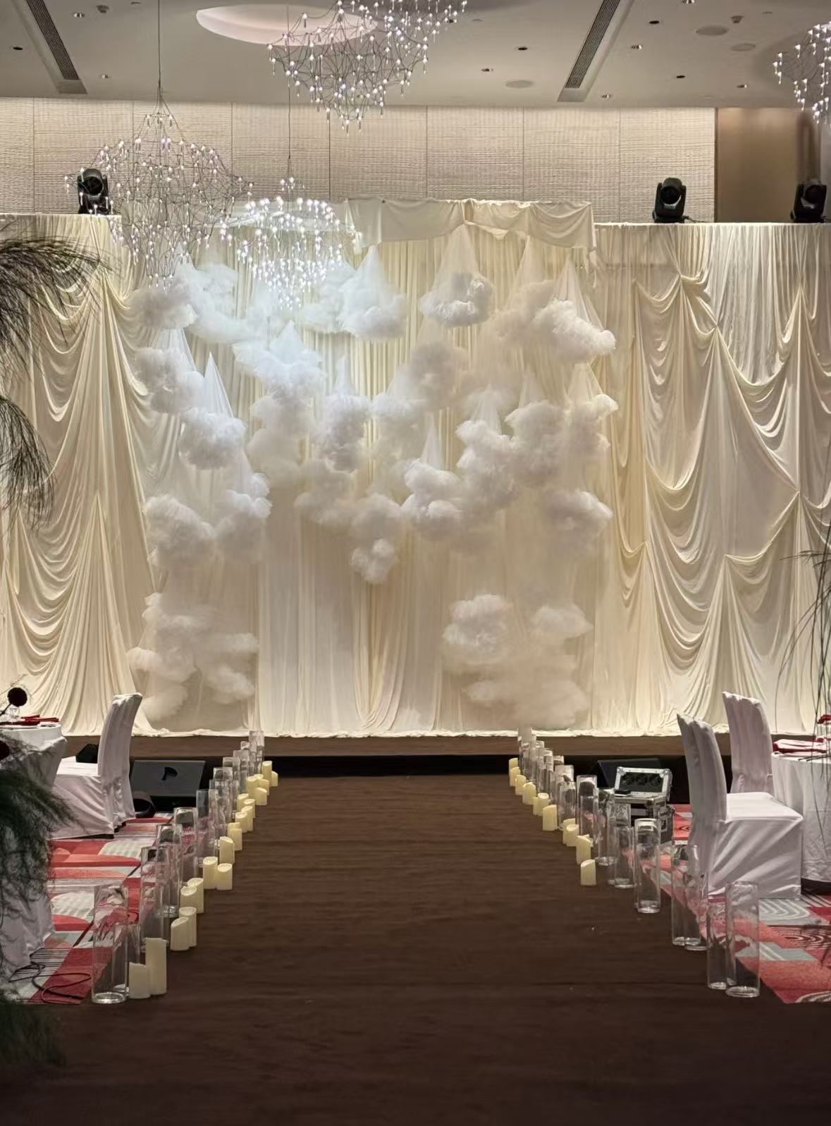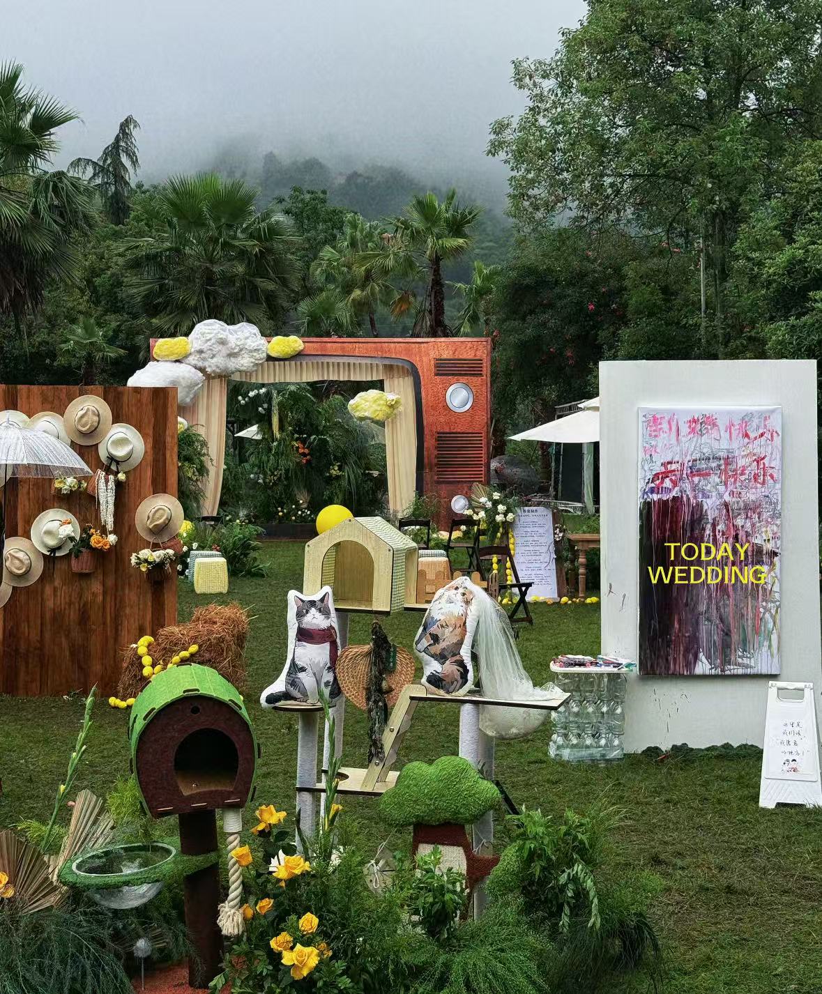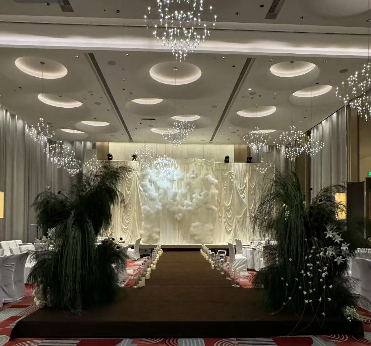 • 蓝黄渐变纱幔变“国风画卷” 正中央柿蒂纹 装置寓意事事如意! 靛蓝祥云背景+唐代瓷器点缀 没有繁杂没有堆砌⛩️