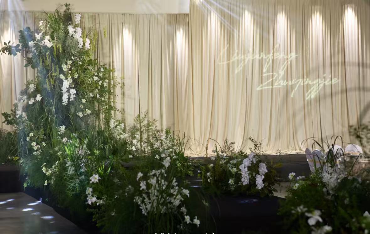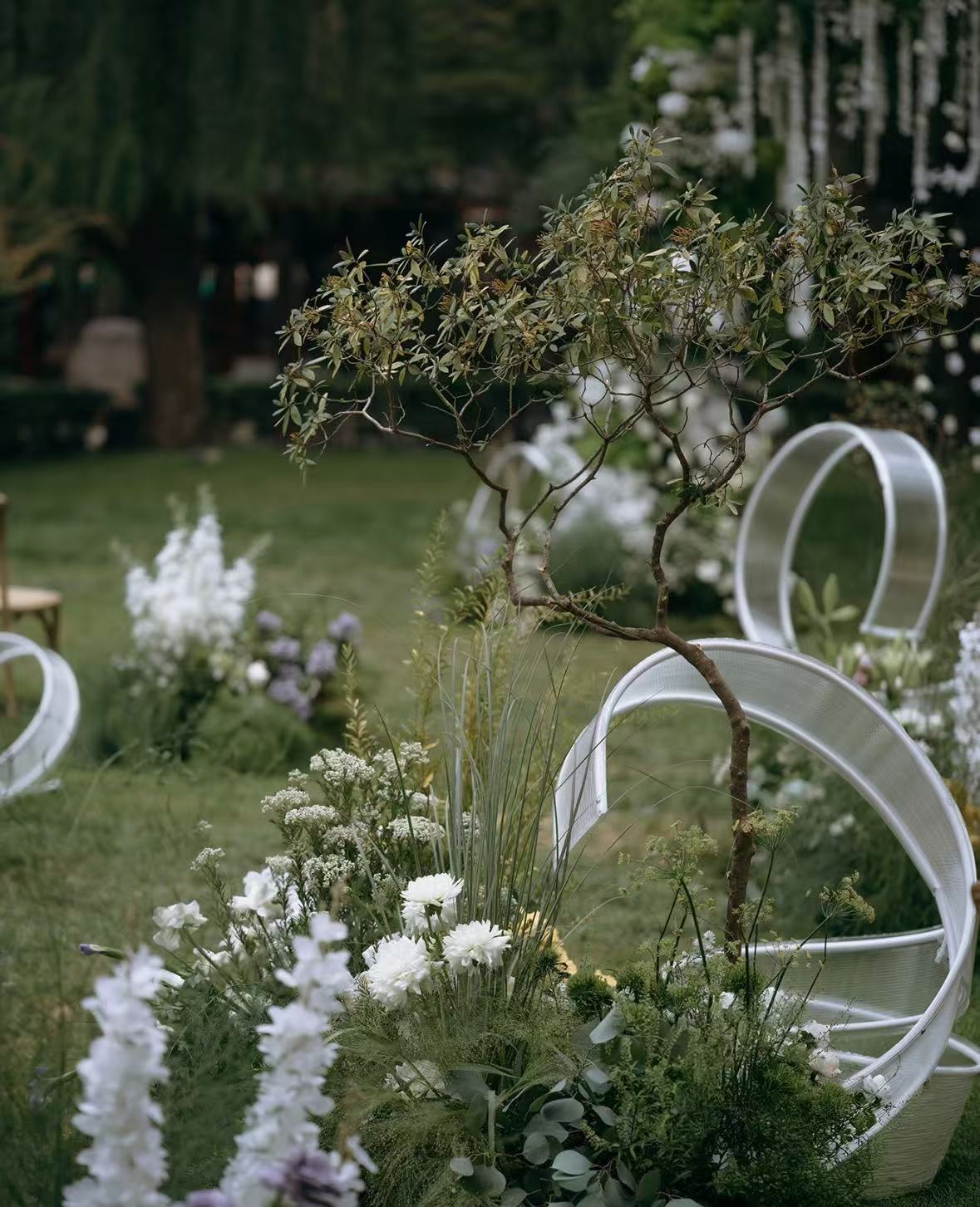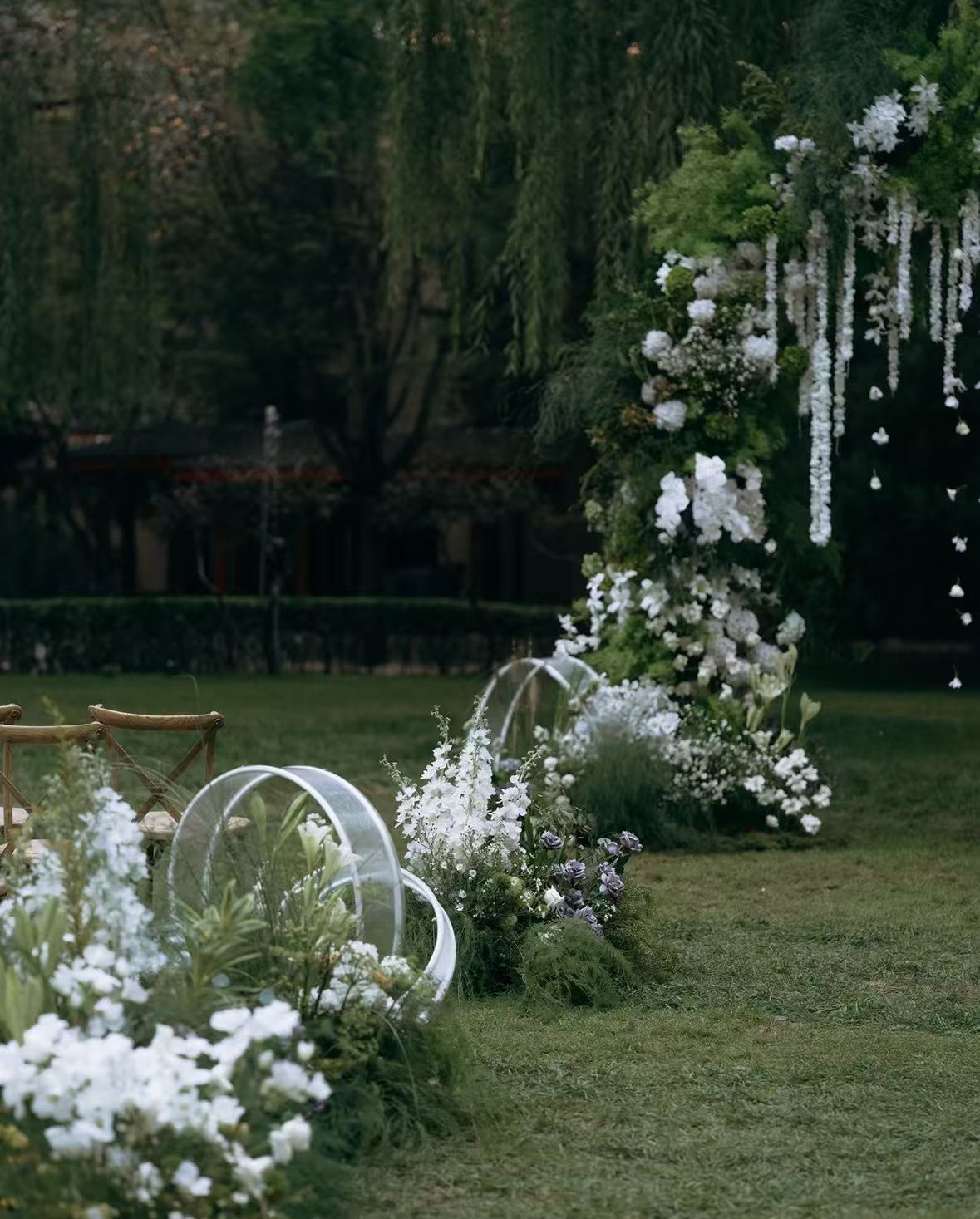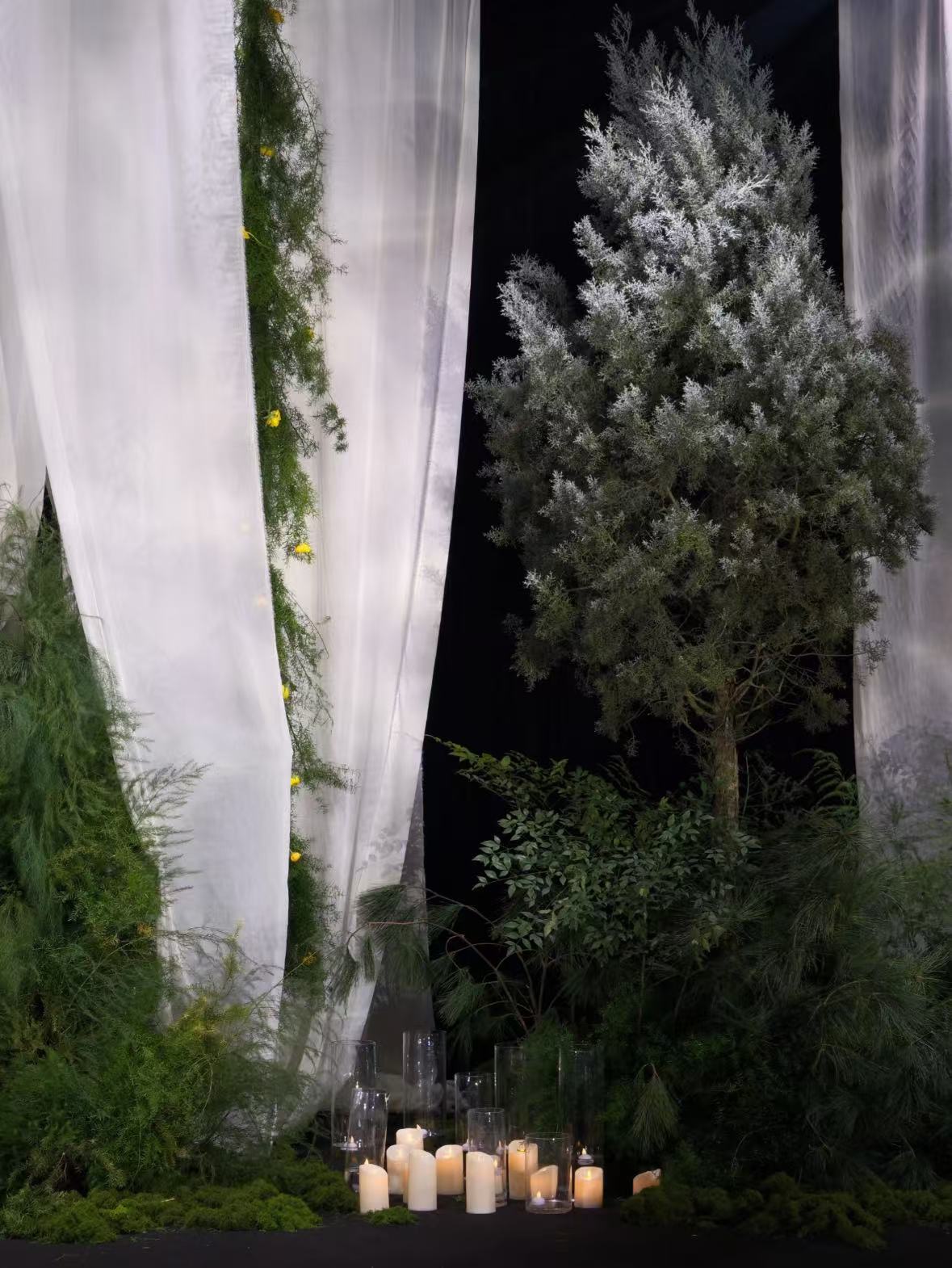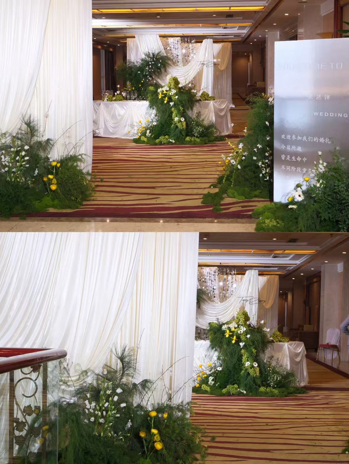 • 白色布幔搭配绿色自然花艺,简约同时又不失优雅。简直让人无法抗拒!