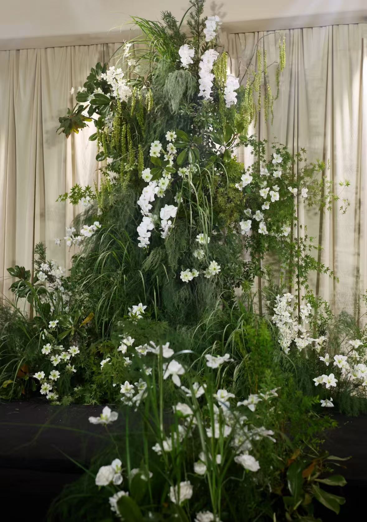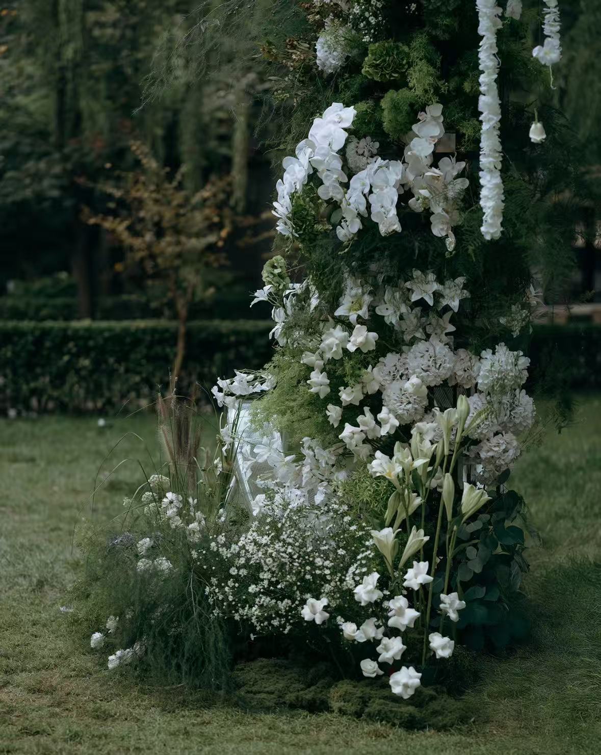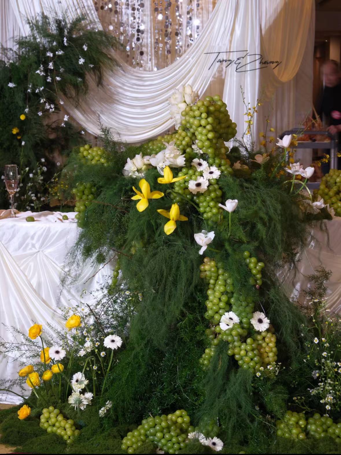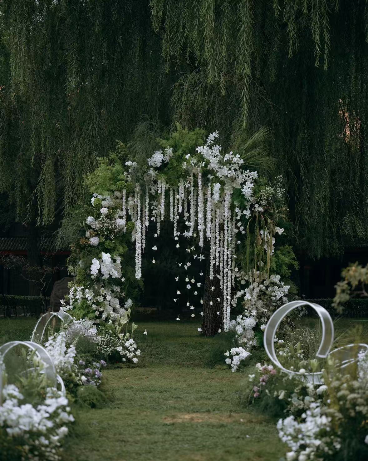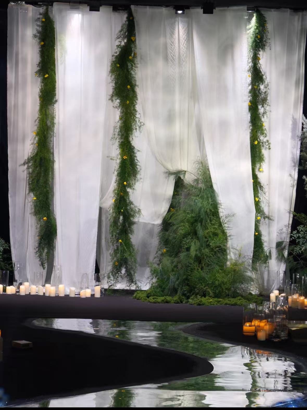 • 白色布幔搭配绿色自然花艺,简约同时又不失优雅。简直让人无法抗拒!