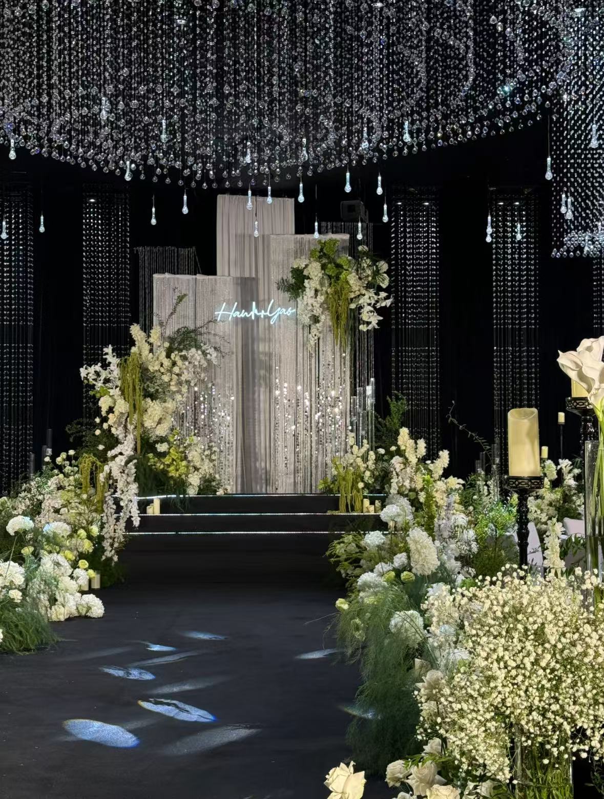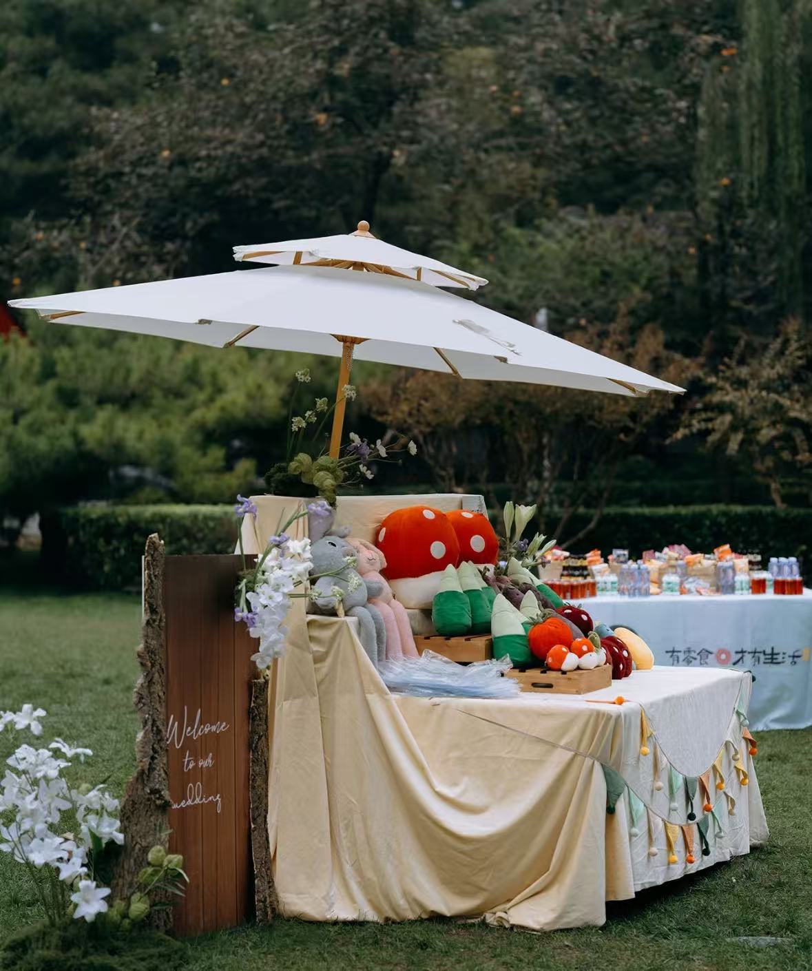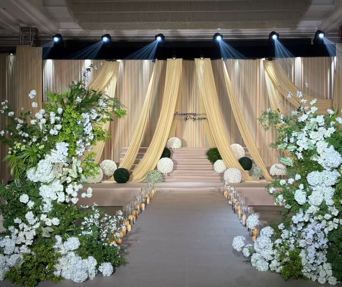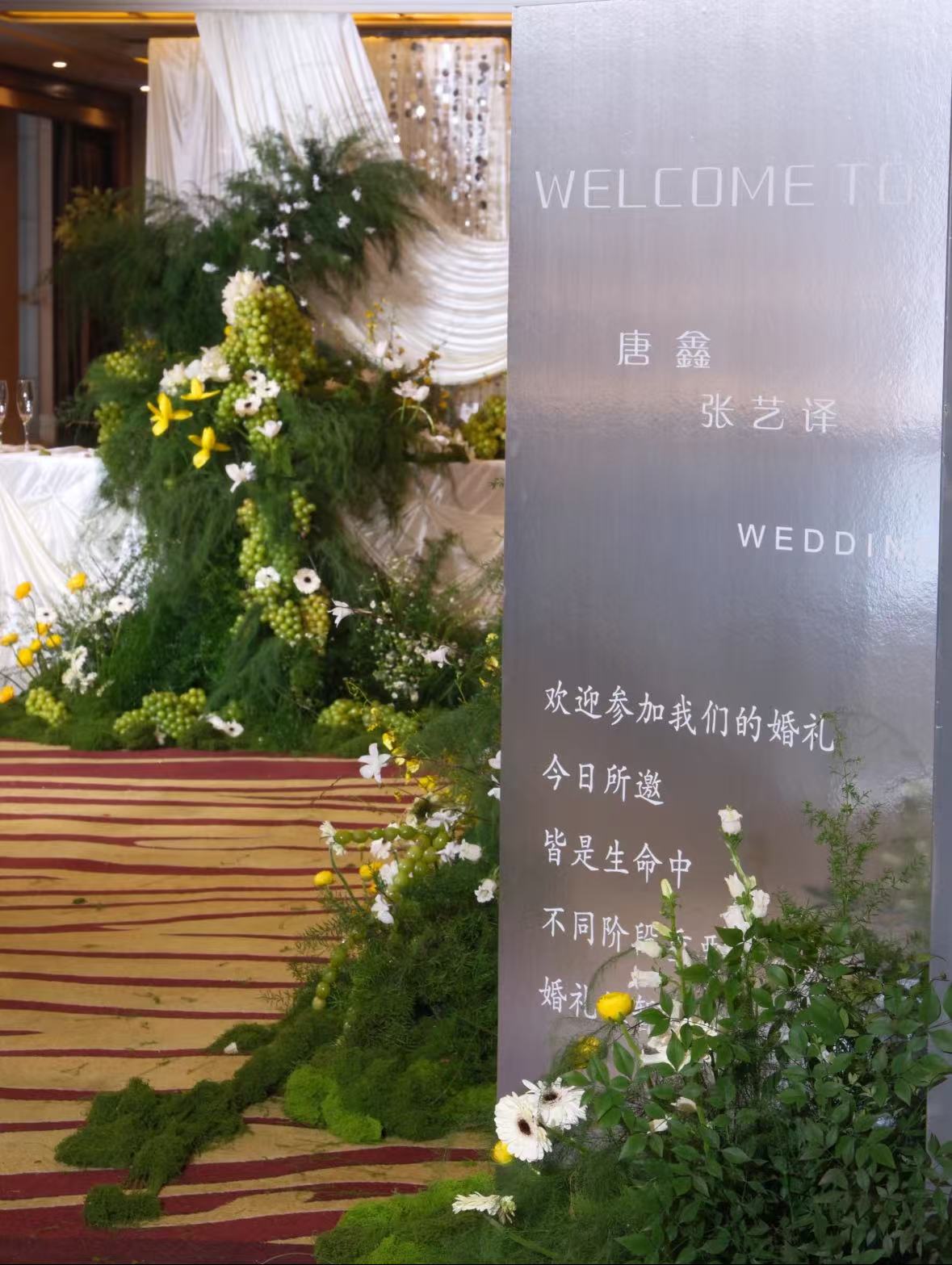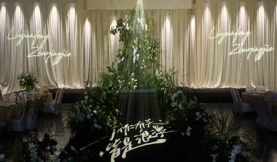 • 白色布幔搭配绿色自然花艺,简约同时又不失优雅。简直让人无法抗拒!