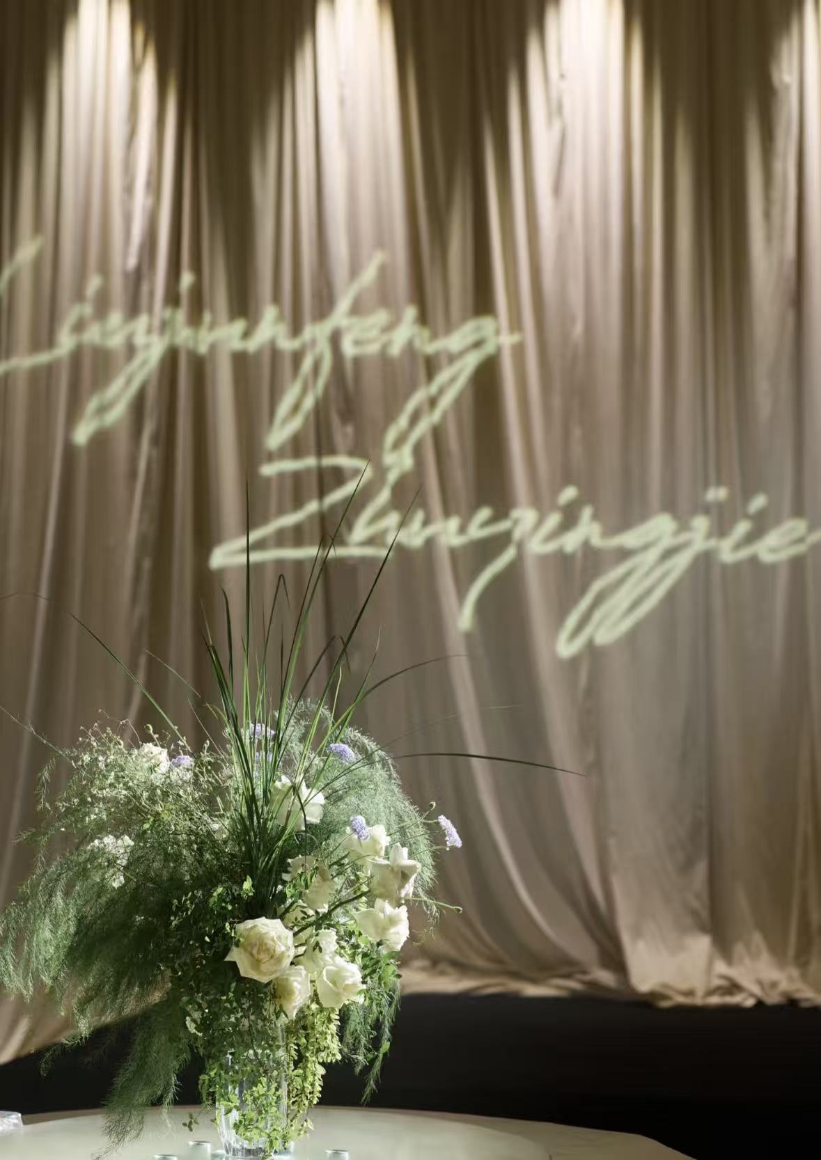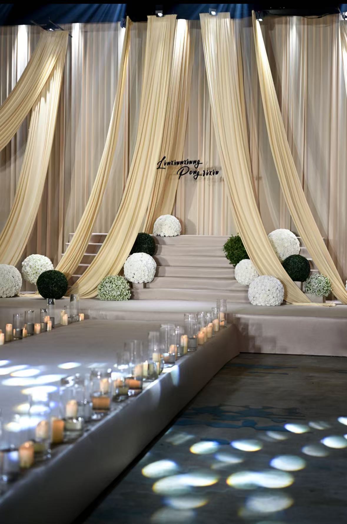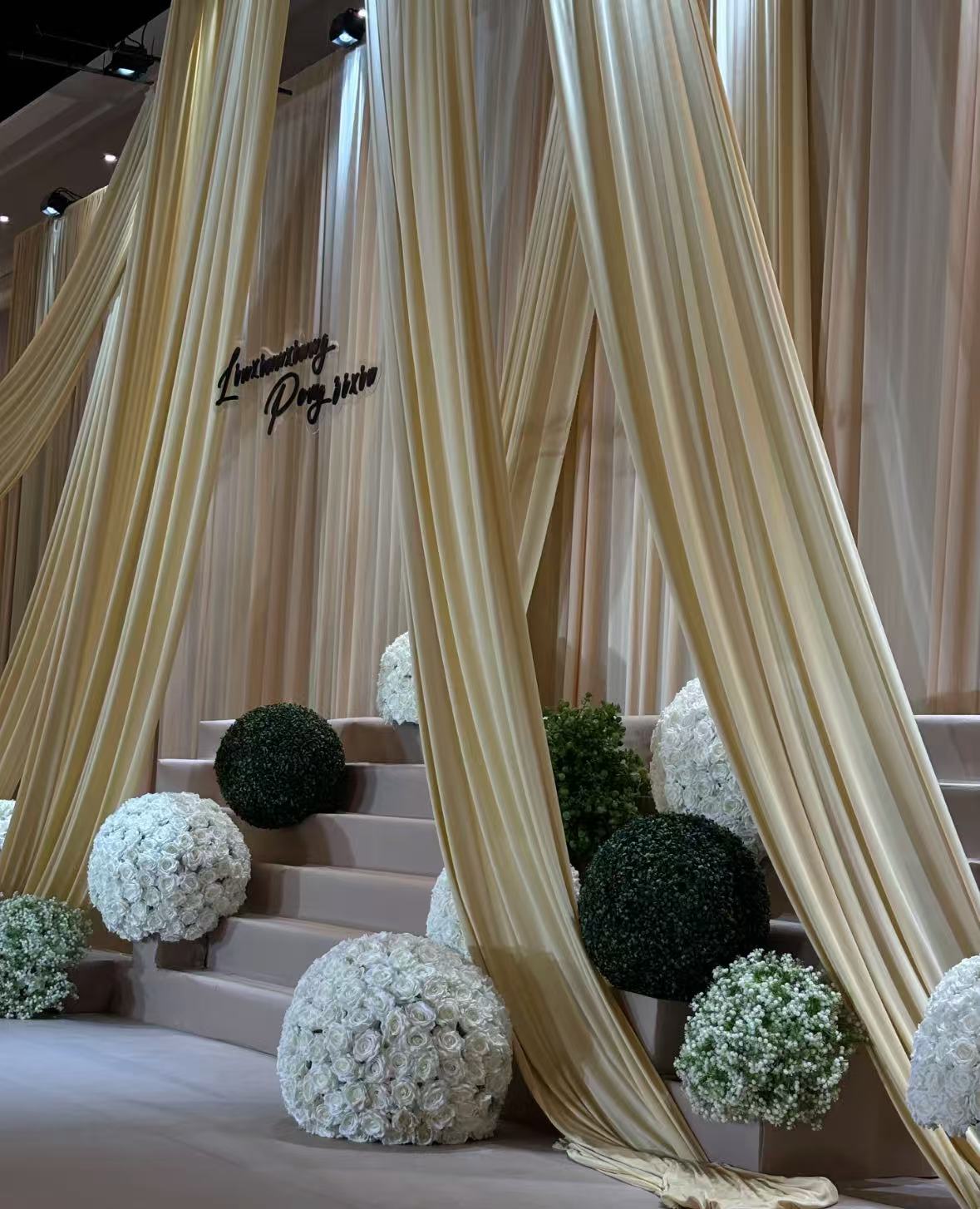 • 香槟色布艺搭配自然风的花艺💐造型设计 追求韩式婚礼高雅气质的同时 又有自然风的清新脱俗