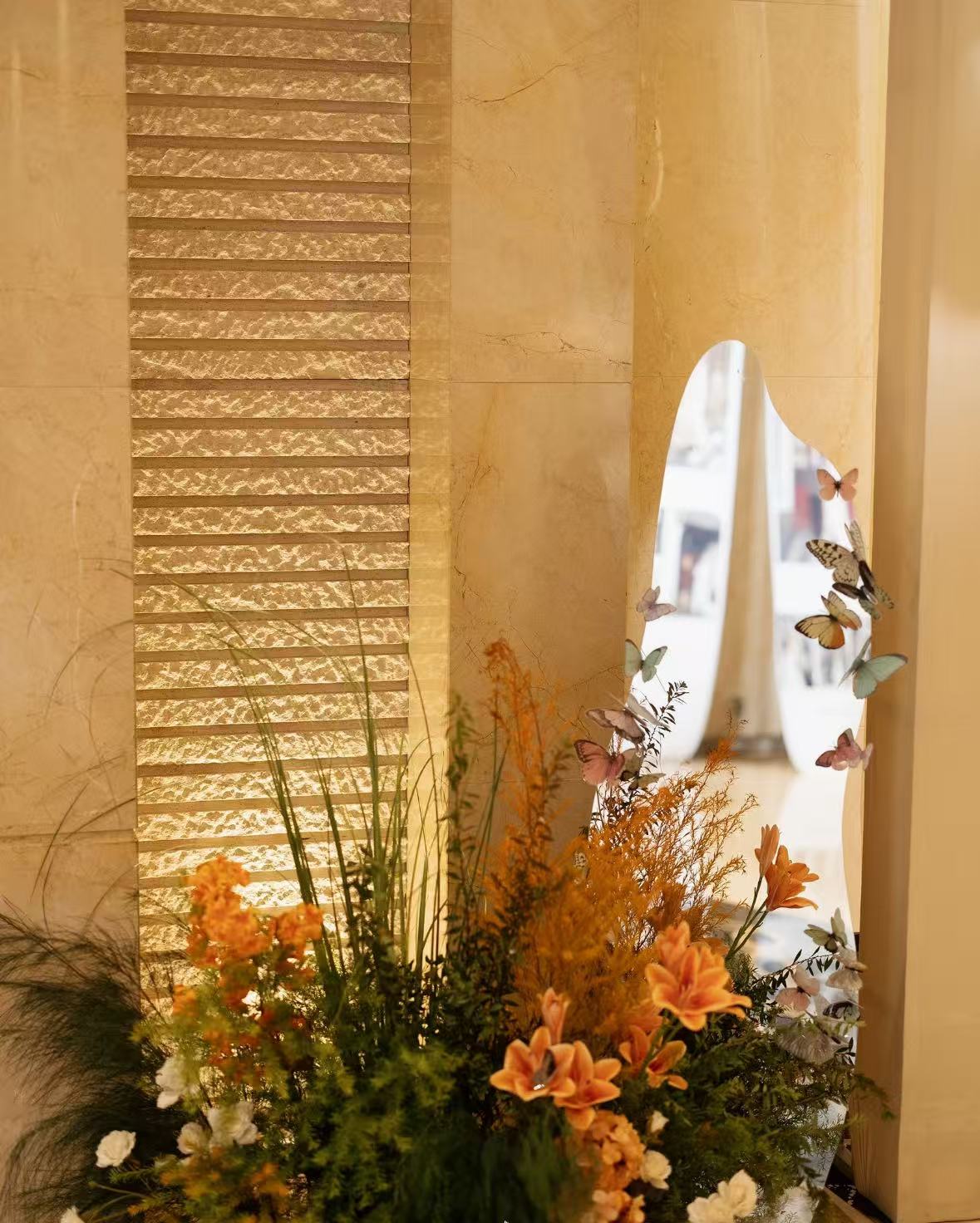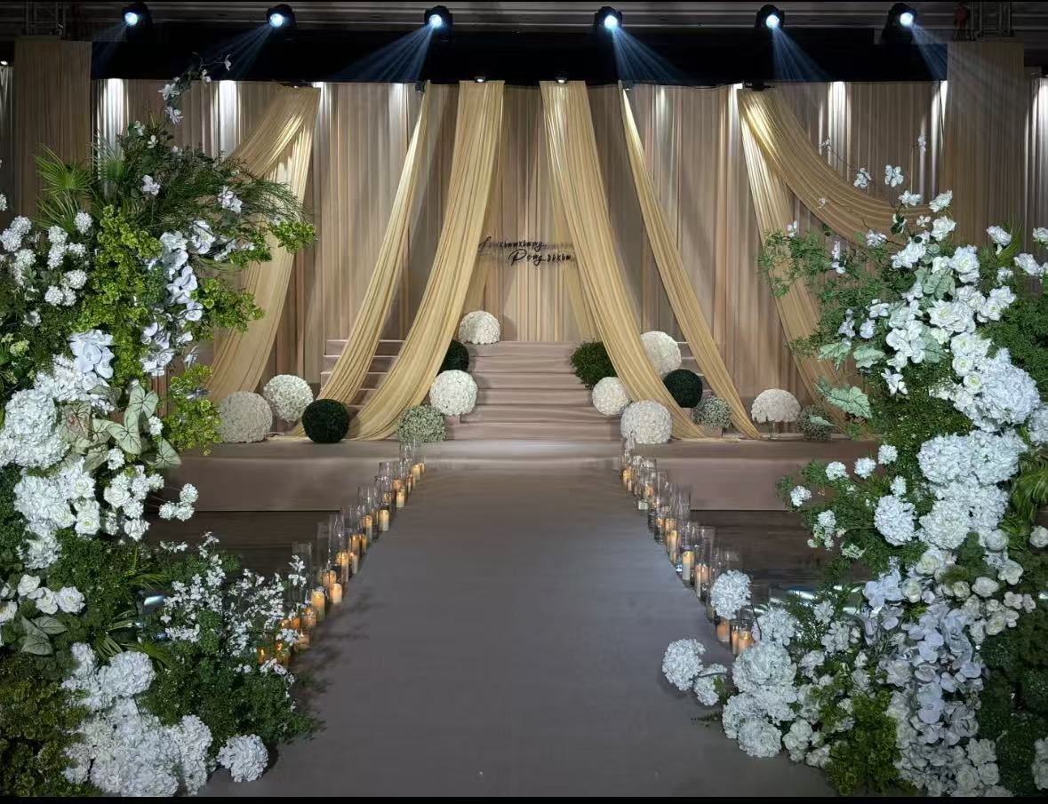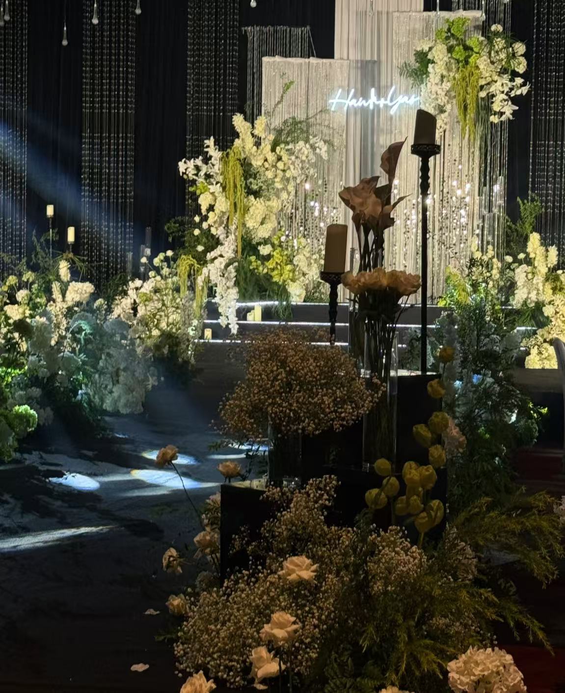 • 香槟色布艺搭配自然风的花艺💐造型设计 追求韩式婚礼高雅气质的同时 又有自然风的清新脱俗