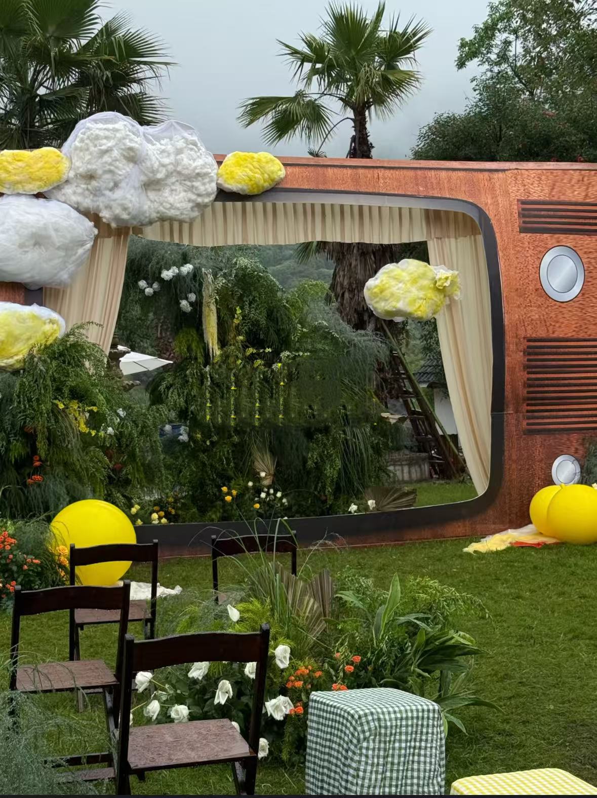 • 复古电视机 由两位妈妈拉开剧幕 新人双人舞出场 电视机外面的☁️ 是营造放松 自在 快乐 幸福溢出屏幕来~ #春和景明的幸福感婚礼