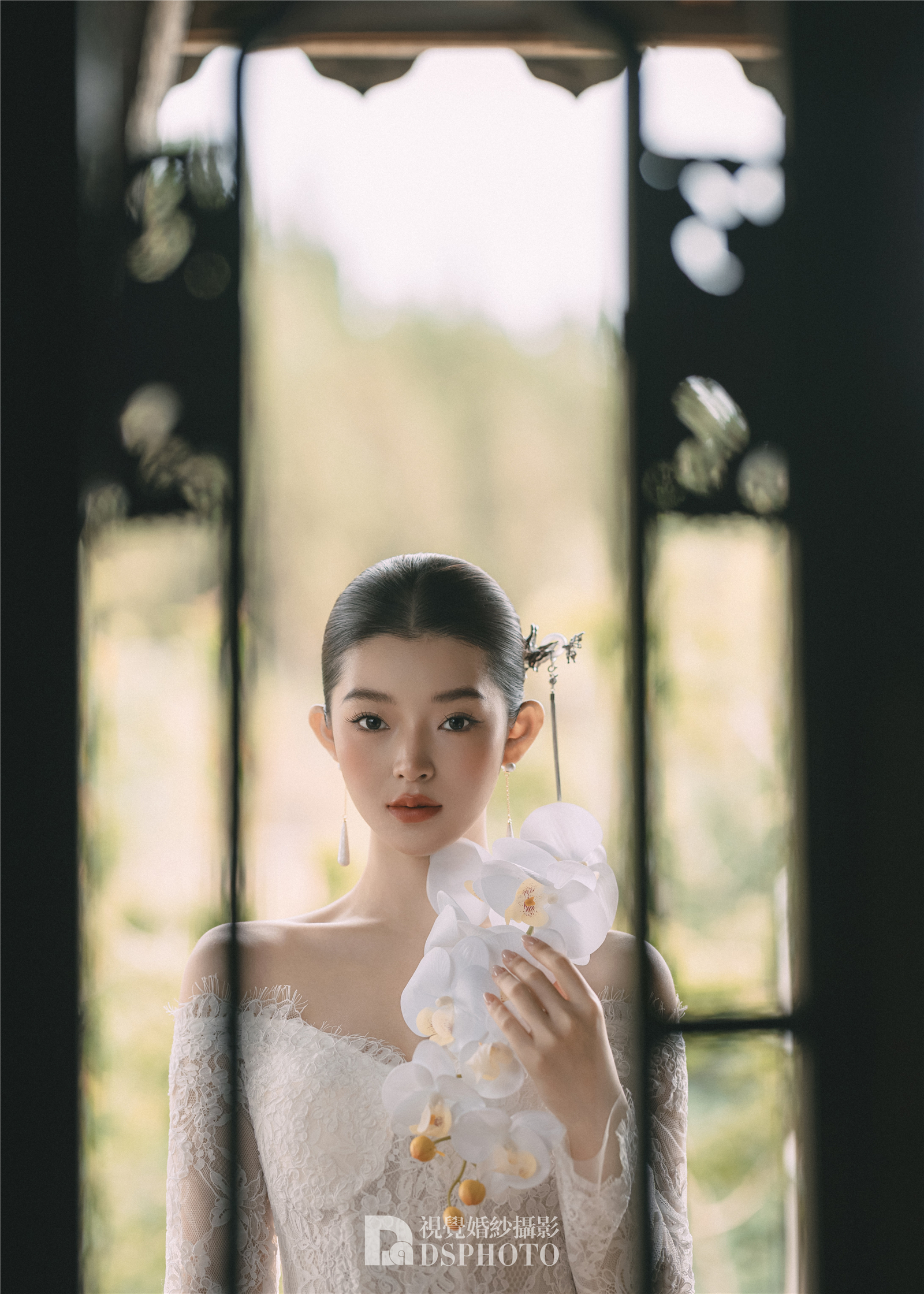 • 今日份的浪漫是花房给的💐 氤氲光影 斑驳陆离✨ 仿佛走进法式童话里 - 花枝轻摇 暗香浮动🌿 少女的侧影温柔了时光 手工花环+蕾丝白纱🦋 每一帧都值得珍藏💌 - 婚纱照界的清流 这组“白月光”太治愈啦❗️
