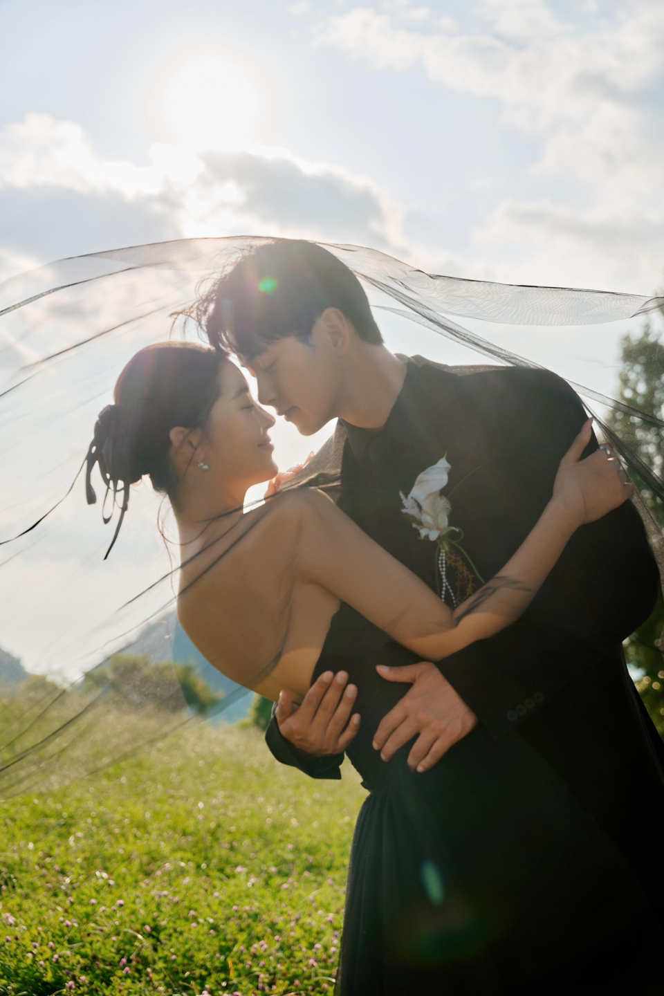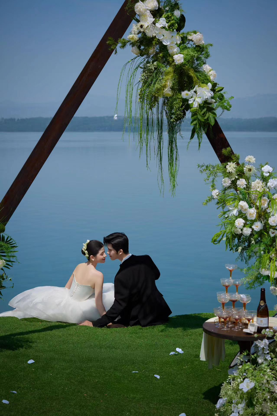 • 赠予你夏日的温柔,揽清风入怀,空中漾着自然的乐曲。 挽手走向镜头的瞬间 恍若是韩剧照进现实举 行了一场户外婚礼。 、 树丛为幕,时光为诗。草坪绿意与白纱的邂逅,用目的地婚礼的形式打开婚纱照,完成属于我们的专属仪式。 #超有氛围感的森系婚纱照