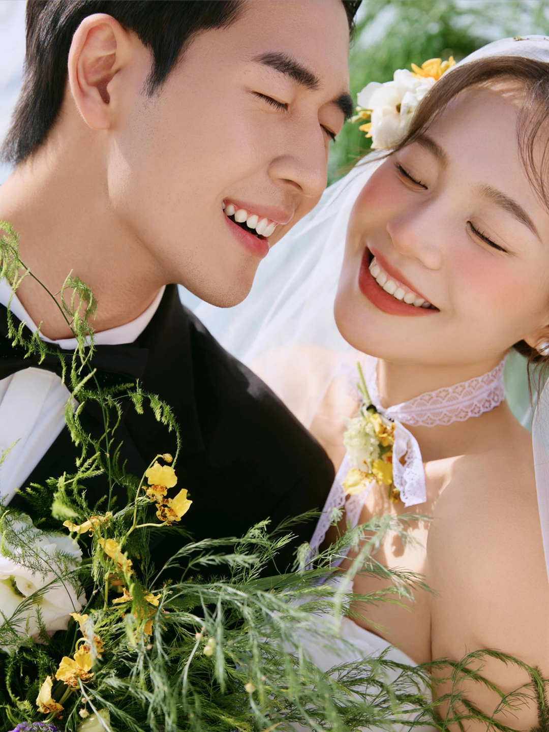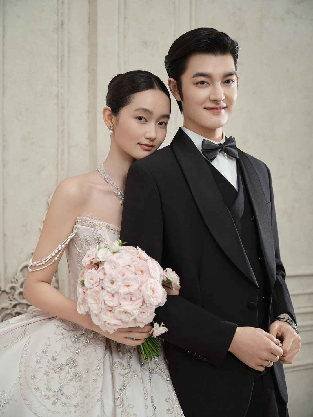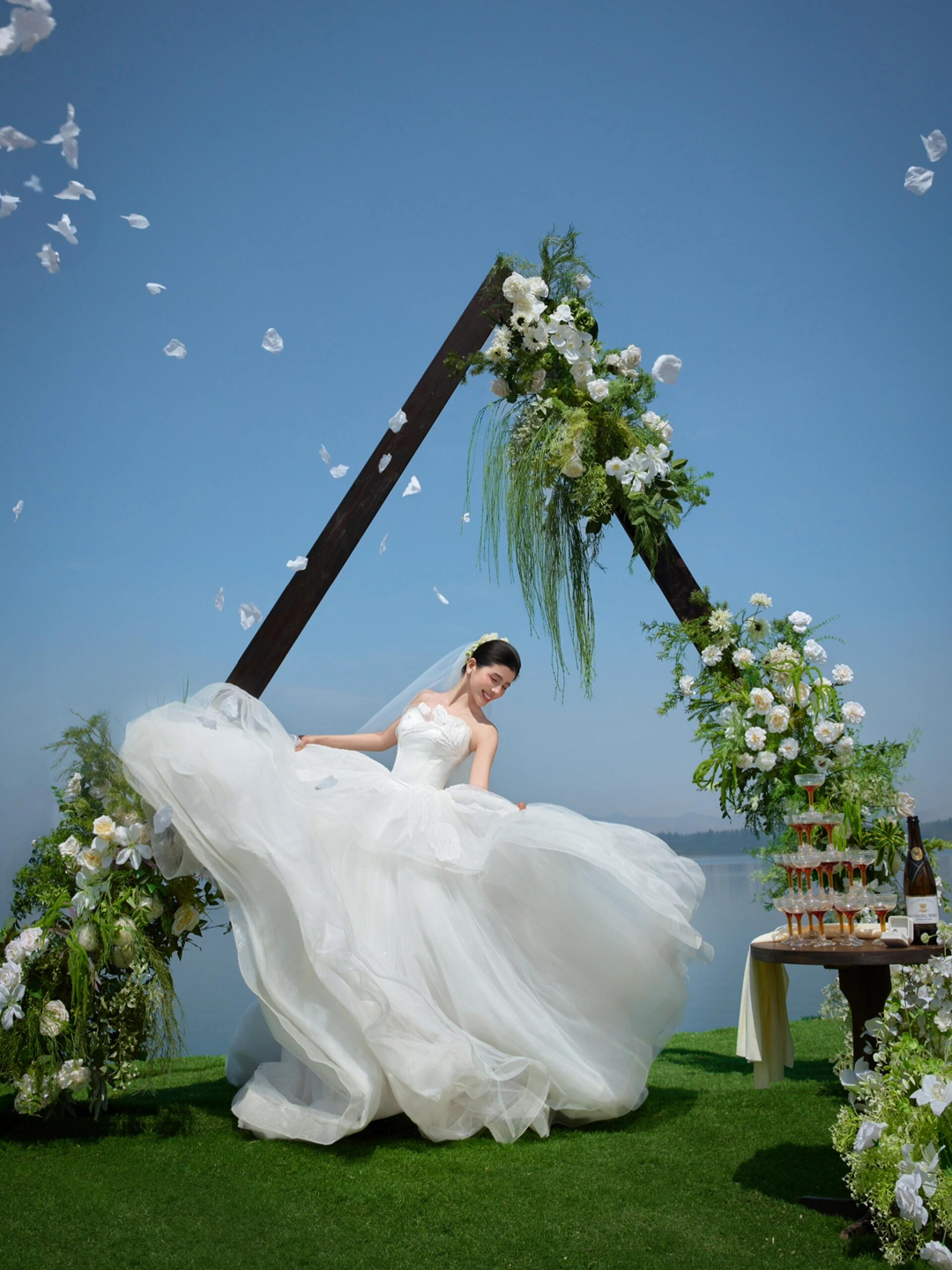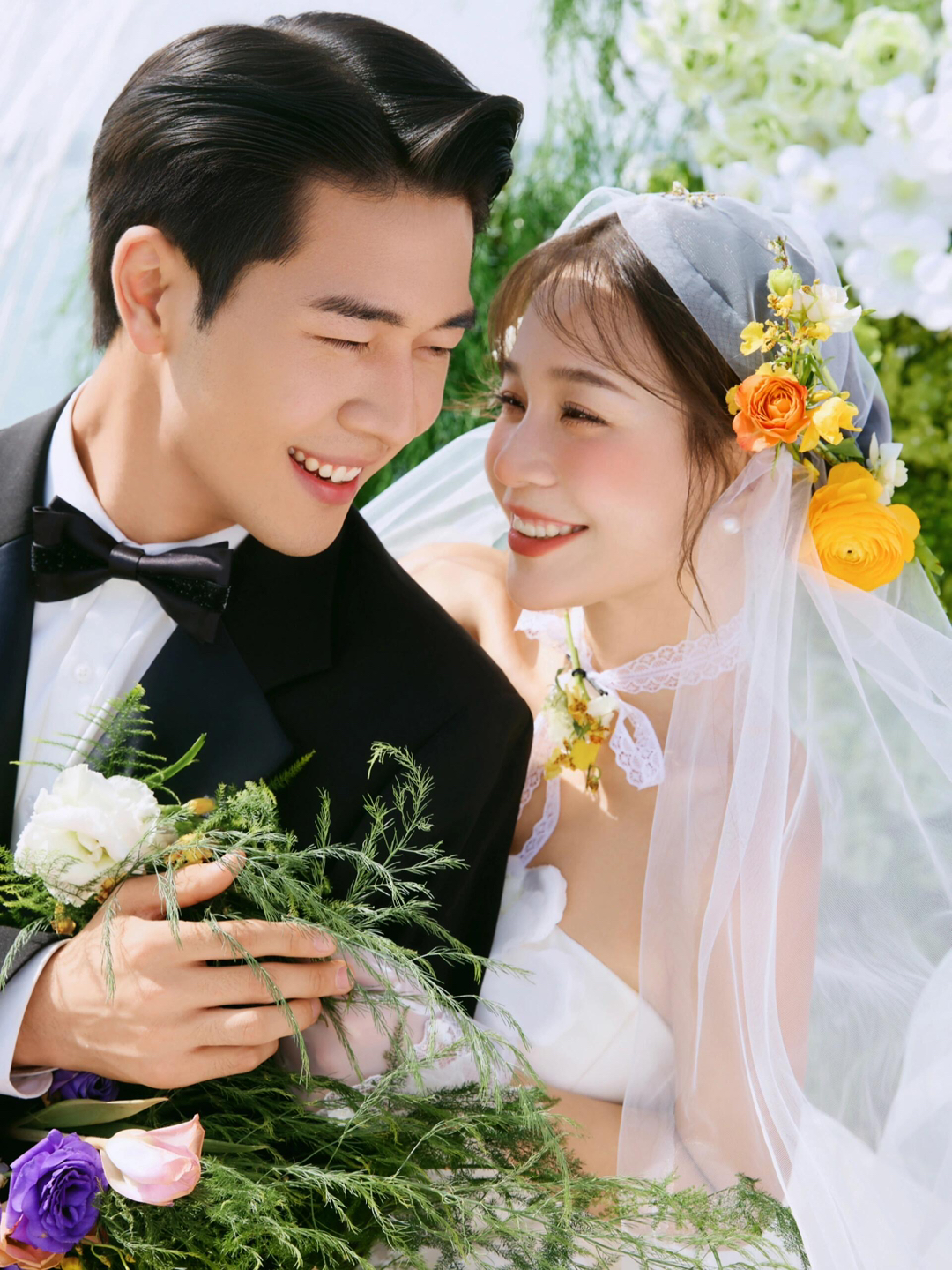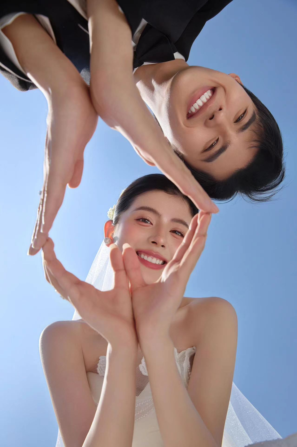 • 巨型缎面蝴蝶结+花簇装饰直接把“童话感”拉满 新娘的抹胸白纱和新郎的奶油白西装像从棉花糖里走出来的情侣~ 伸手互动的瞬间,连空气都在冒甜泡泡!~ 朋友说这组像“迪士尼公主的婚礼现场”长辈看了直夸“干净又高级”! 极简背景+巨型装饰的反差感,出片率直接达 #韩式花房婚纱照