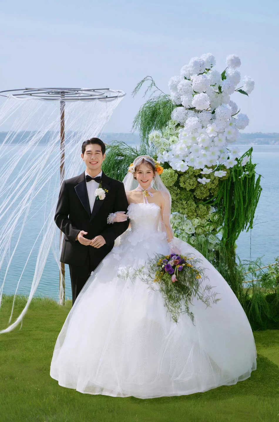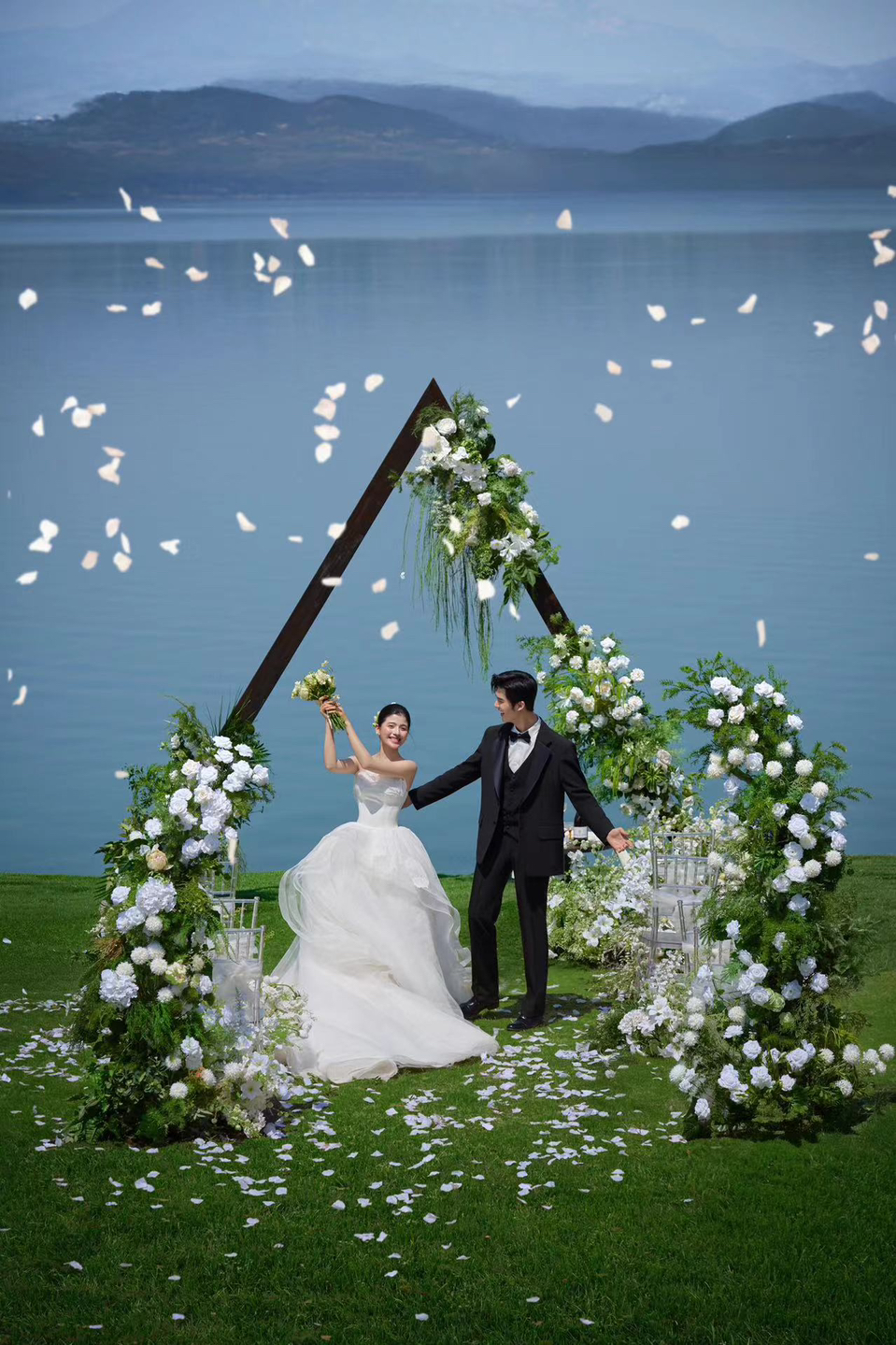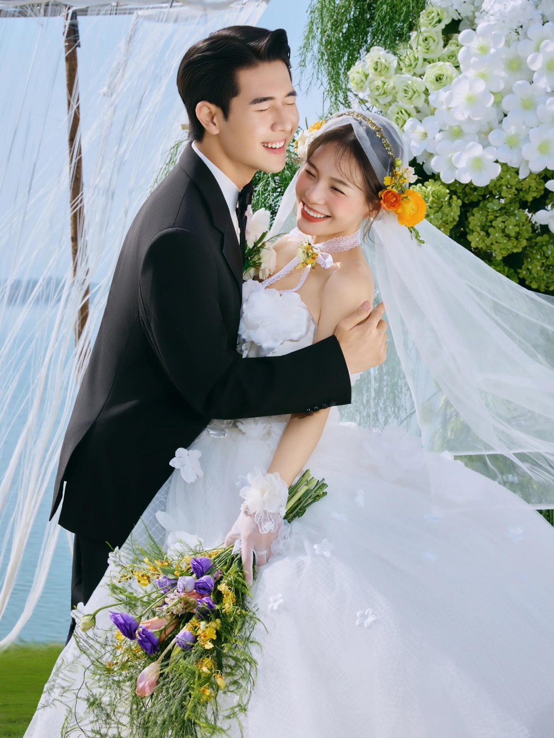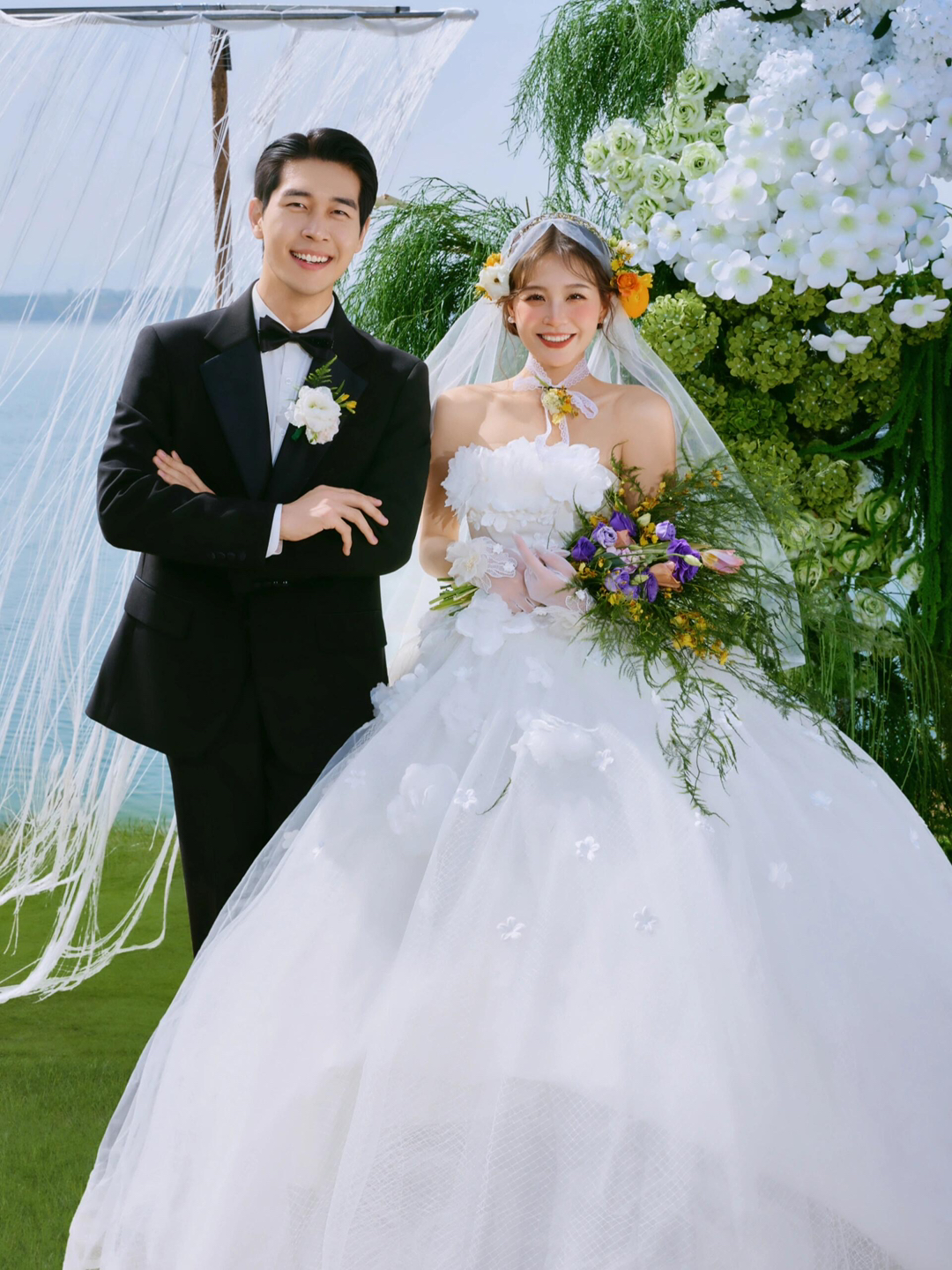 • 巨型缎面蝴蝶结+花簇装饰直接把“童话感”拉满 新娘的抹胸白纱和新郎的奶油白西装像从棉花糖里走出来的情侣~ 伸手互动的瞬间,连空气都在冒甜泡泡!~ 朋友说这组像“迪士尼公主的婚礼现场”长辈看了直夸“干净又高级”! 极简背景+巨型装饰的反差感,出片率直接达 #韩式花房婚纱照