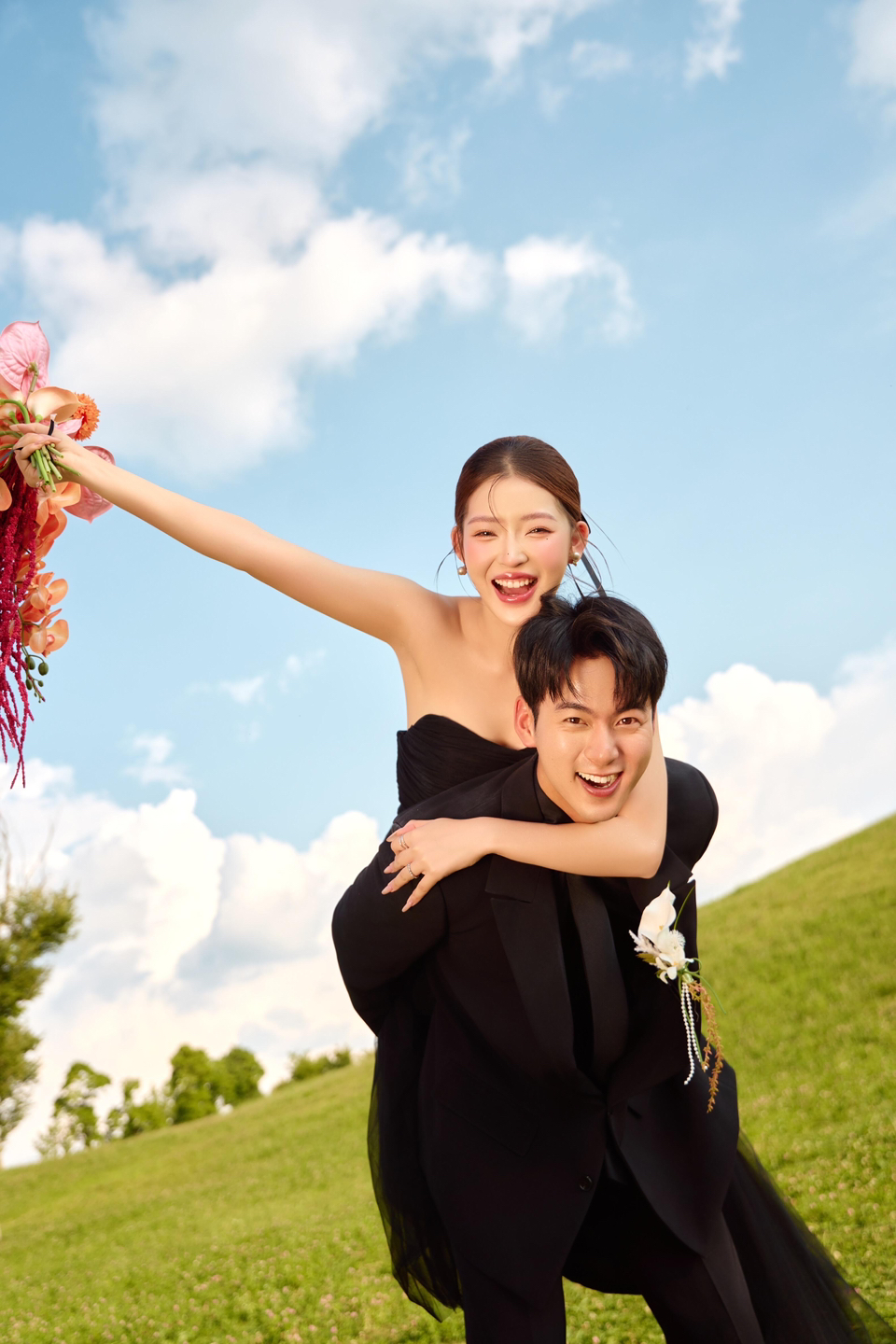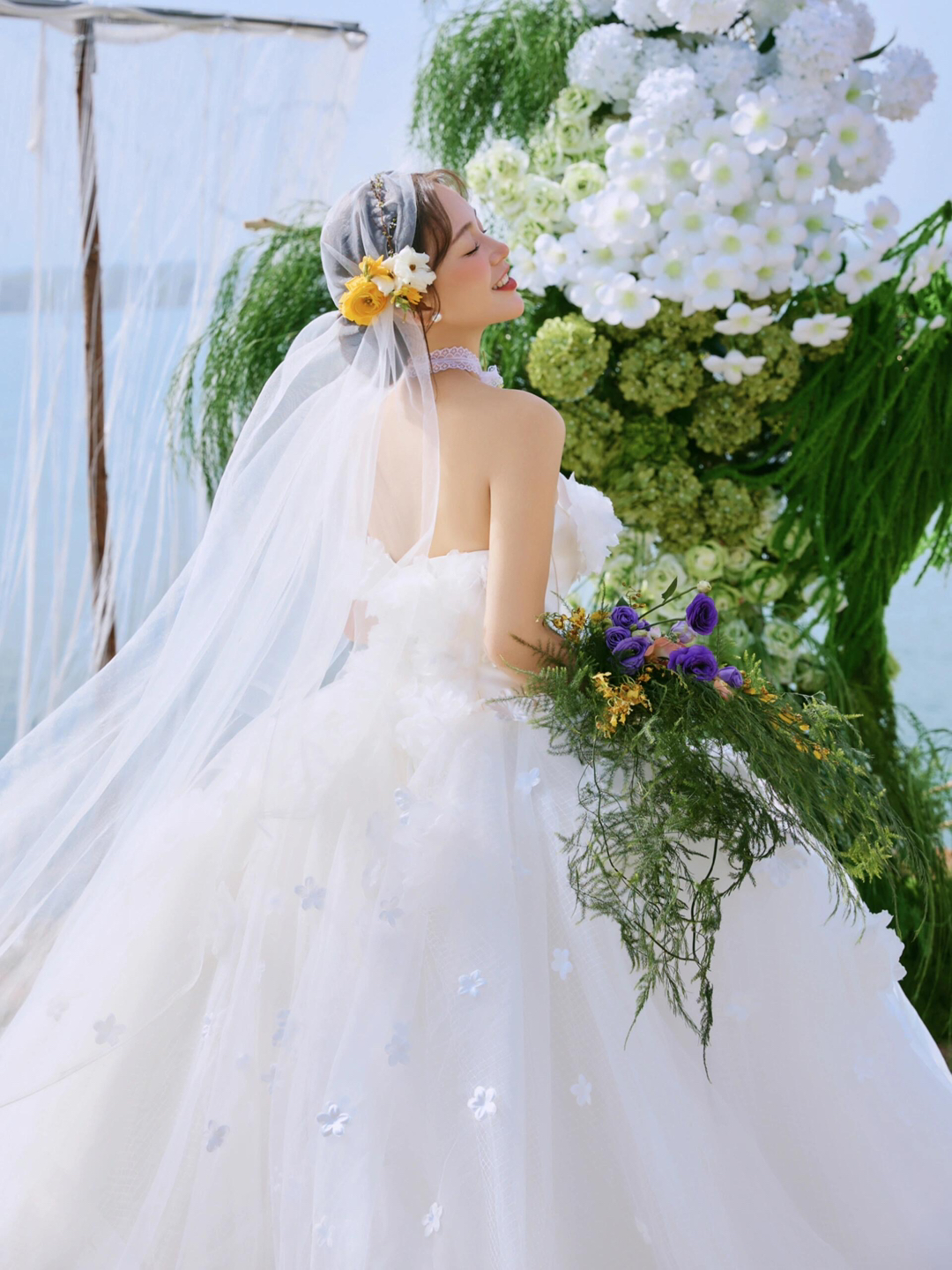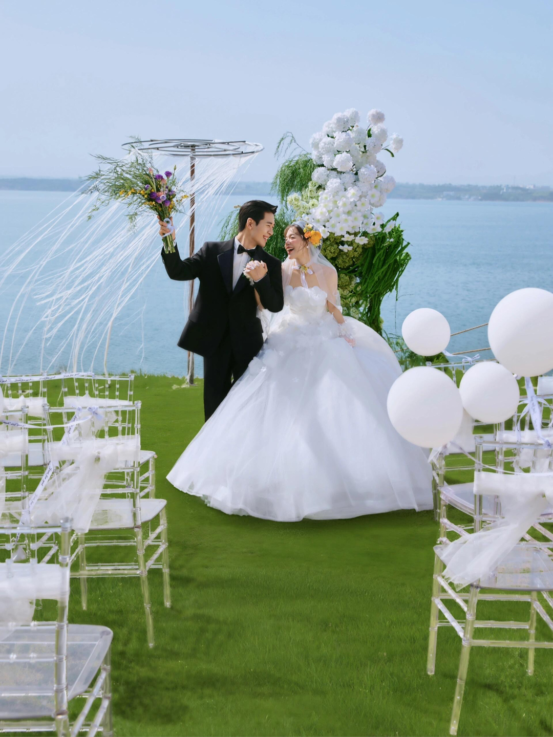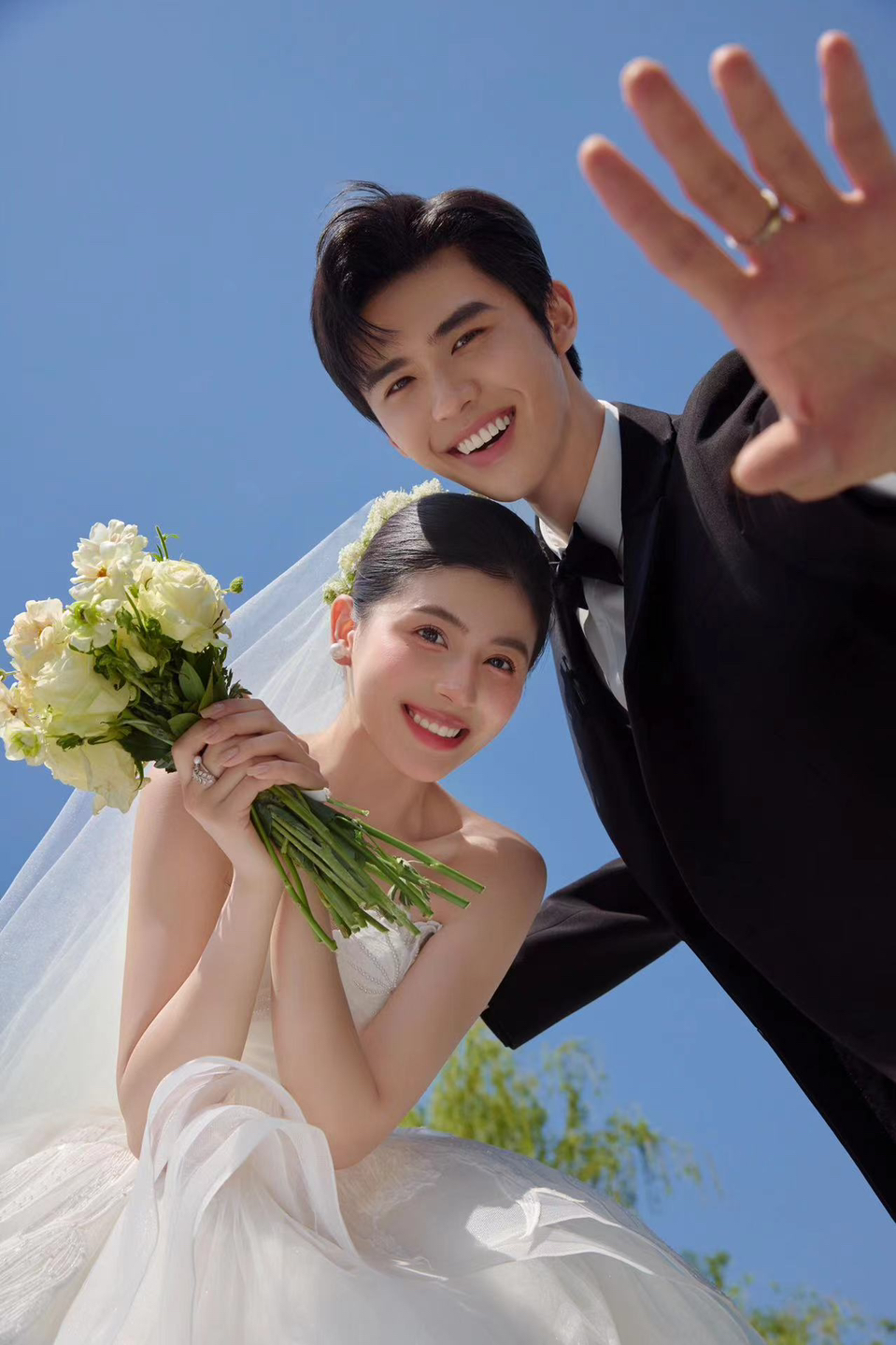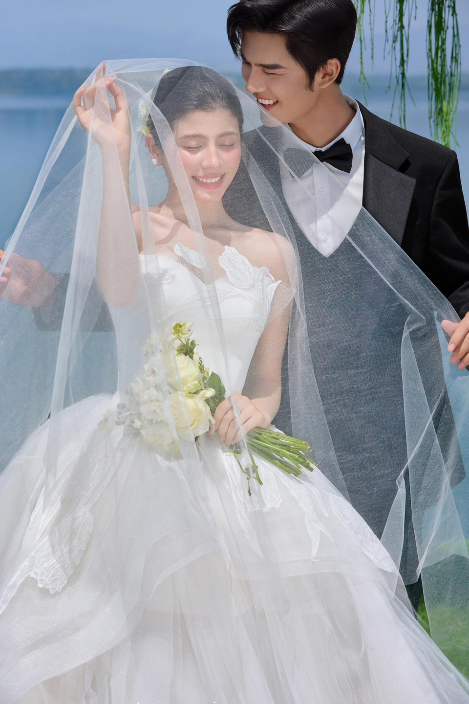 • 巨型缎面蝴蝶结+花簇装饰直接把“童话感”拉满 新娘的抹胸白纱和新郎的奶油白西装像从棉花糖里走出来的情侣~ 伸手互动的瞬间,连空气都在冒甜泡泡!~ 朋友说这组像“迪士尼公主的婚礼现场”长辈看了直夸“干净又高级”! 极简背景+巨型装饰的反差感,出片率直接达 #韩式花房婚纱照