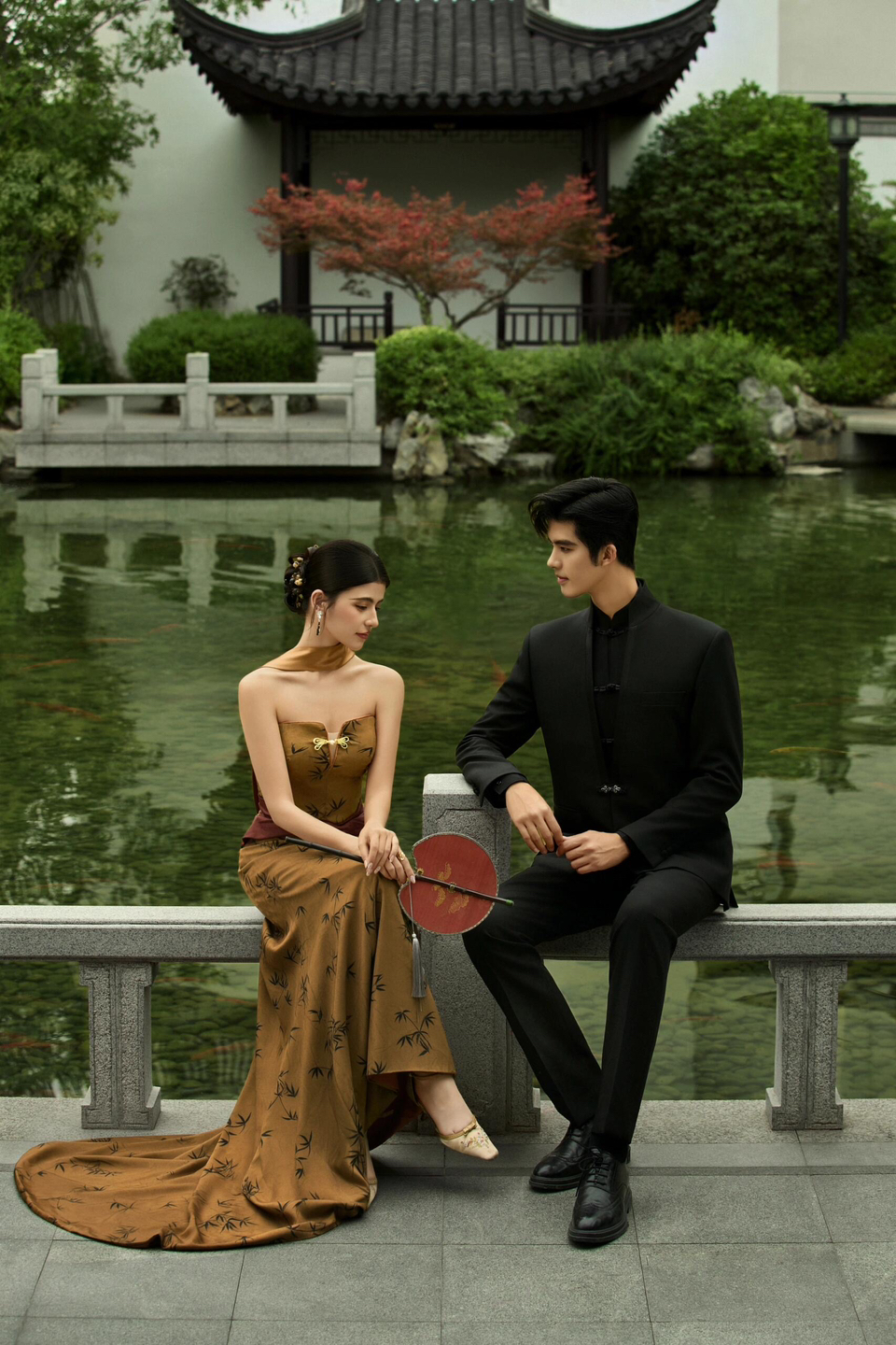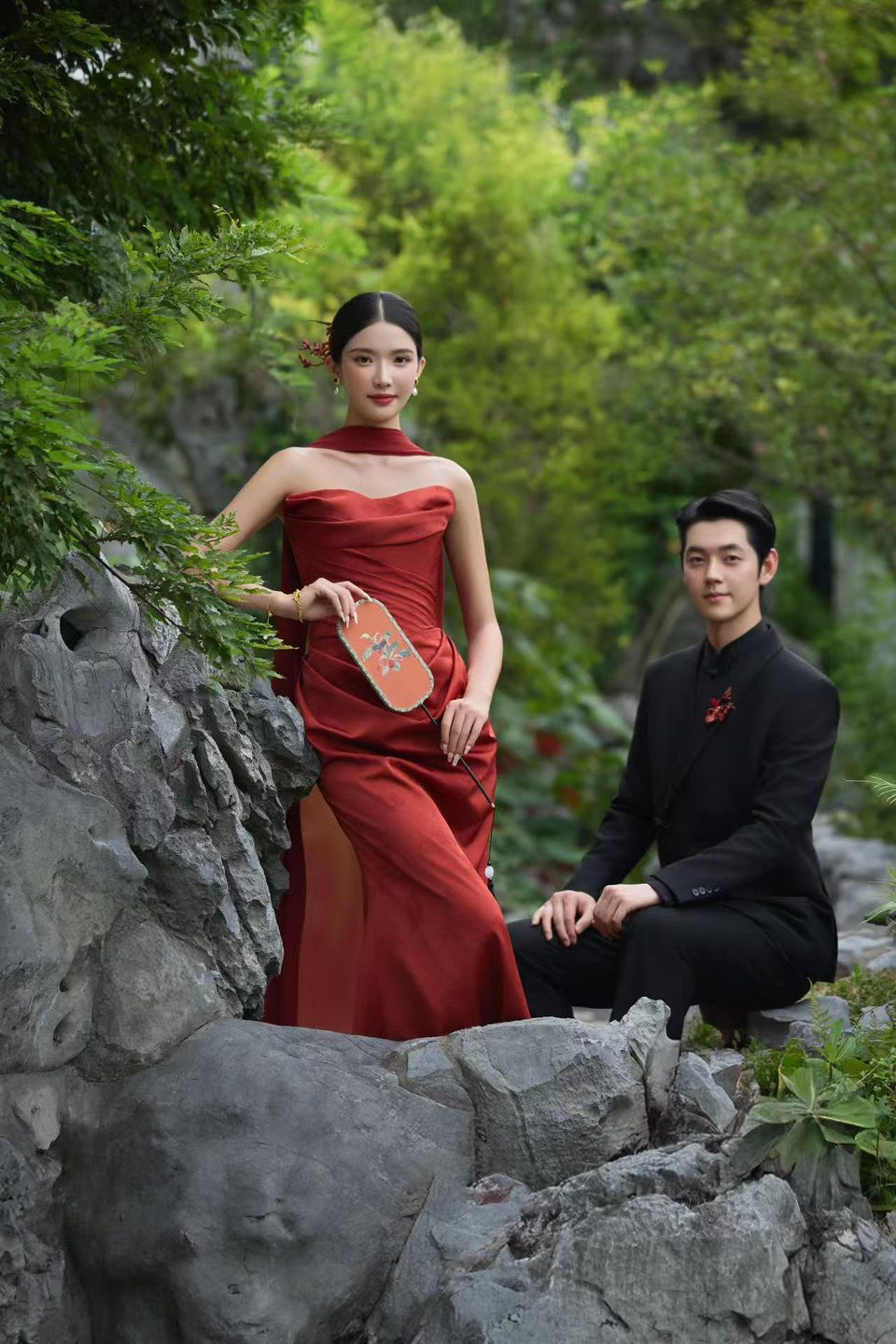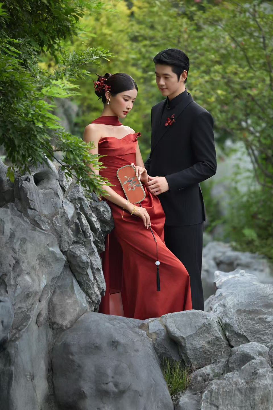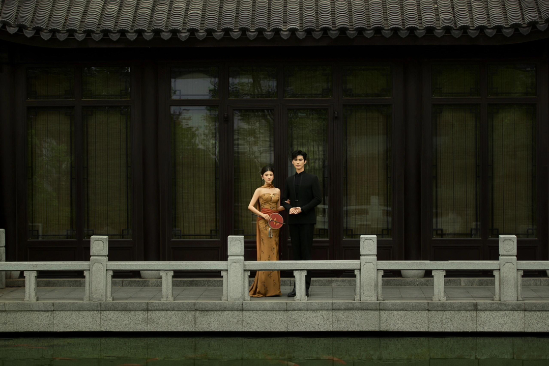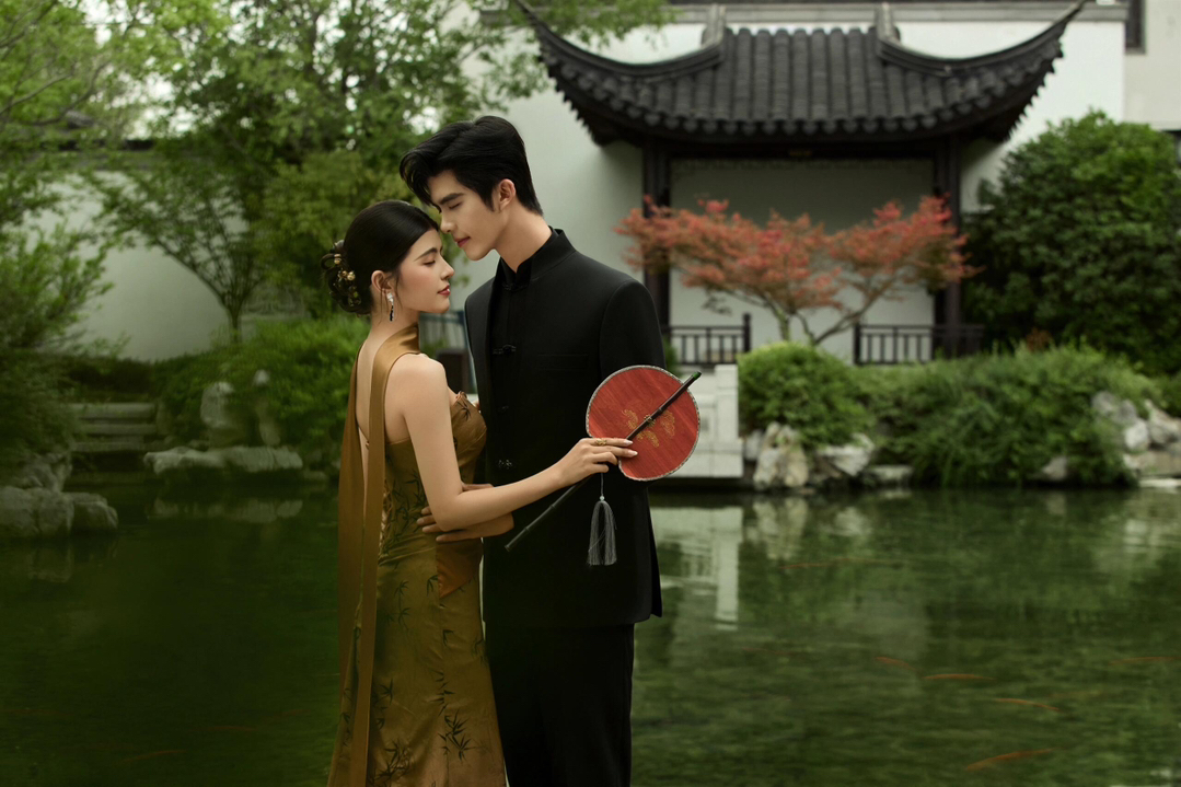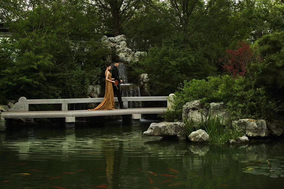 • 1 廊桥私语: 回廊拐角处假装偶遇,指尖轻触的瞬间抓拍,眼神拉丝绝了! 并肩坐在美人靠上,男生侧头低语,女生垂眸浅笑,暧昧氛围直接封神。 2 水畔嬉戏: 蹲在池塘边“假装”喂锦鲤,趁机泼水打闹,动态镜头超有生命力。 借一片荷叶遮阳,偷亲脸颊的“小心机”,糖分超标预警! 3 门框剪影: 月洞门内外对视,一人在明一人在暗,仿若穿越时空的相遇。 花窗后探出半张脸玩捉迷藏,古灵精怪感拿捏! #美出圈的新中式婚纱照