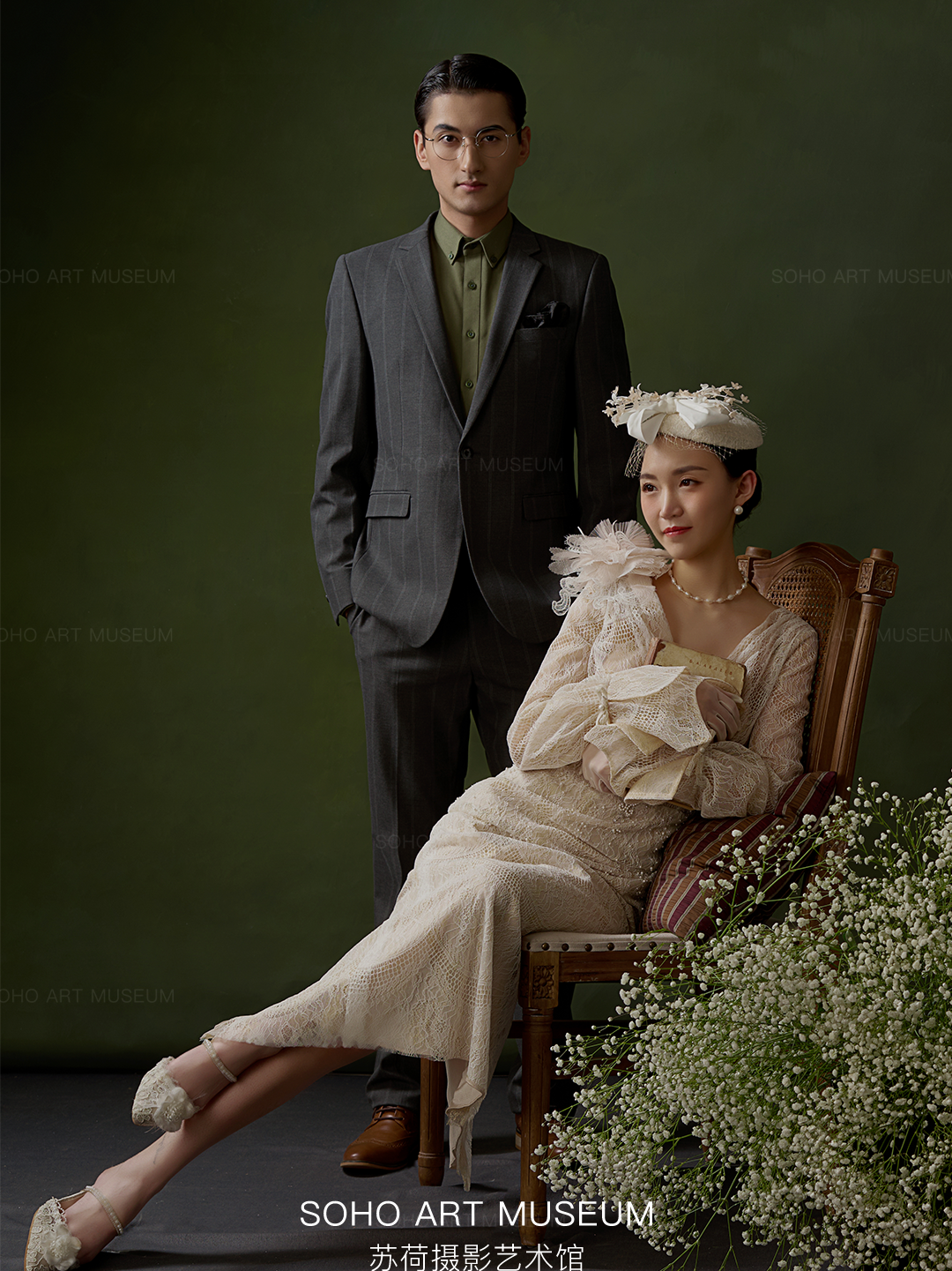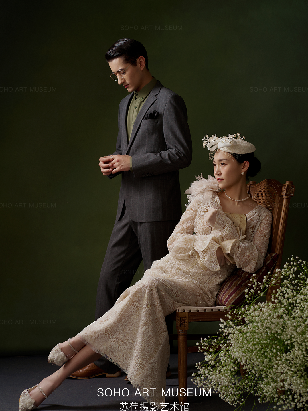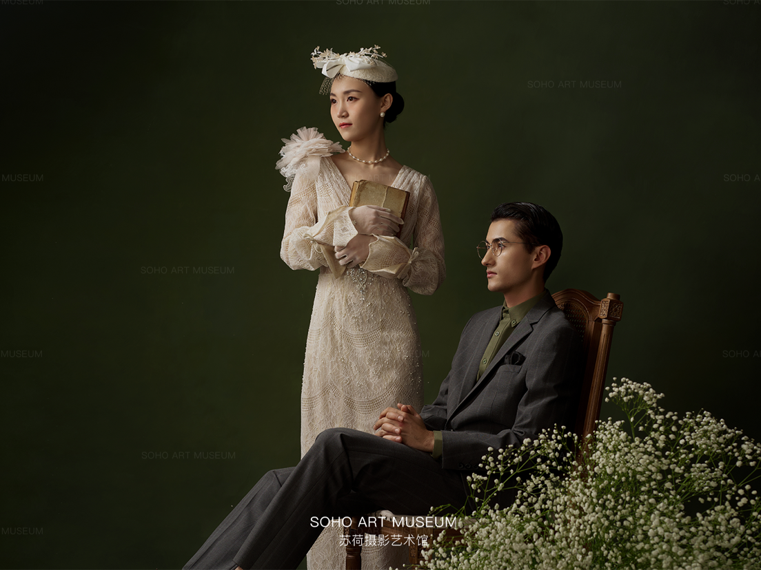• 💯💯💯💯💯💯真实客片分享 - ⭐表现力超强的跨国小夫妻 ▪️一眼就相中了这款高格调内景婚纱照 ▪️复古|典雅|气质 - ▫️油画肖像艺术常用的墨绿背景 ▫️色彩浓郁,质感细腻 ▫️光线轻柔,观感和谐 ▫️展露上世纪的文艺优雅🎶 - ▫️改良版“鸟笼面纱帽” ▫️既保留了皇室的优雅vintage风格 ▫️又能使面部轮廓更加鲜明清晰 ▫️非常适合头发较短 ▫️无法做过多盘发造型的新娘哦✨ ▫️金丝边镜框与暗纹西装 ▫️新郎的雅痞范儿魅力更足