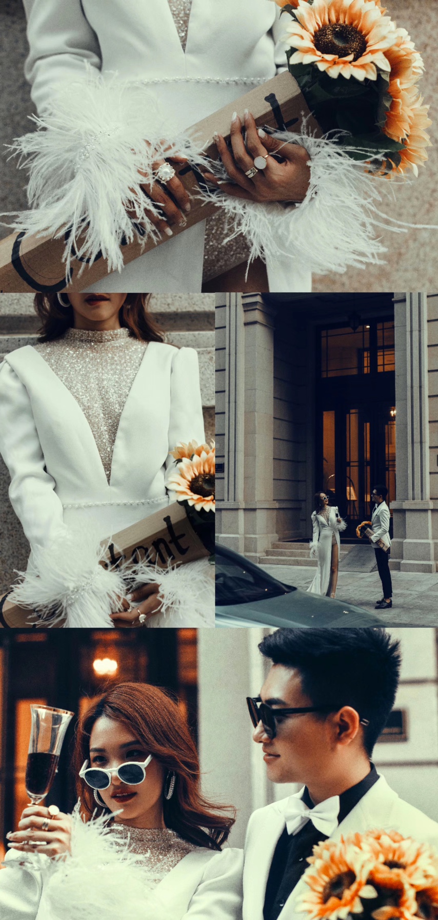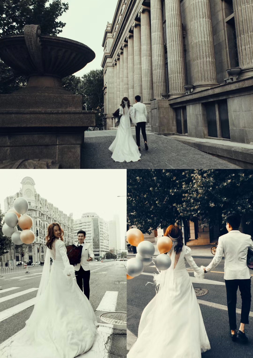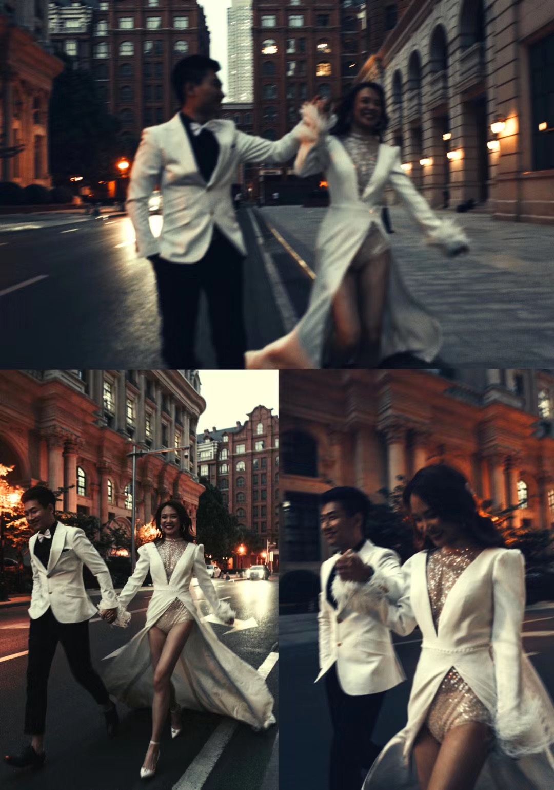 • 夕阳渐落的傍晚🌆和“街拍”完美融合 幻想过无数次电影里浪漫的情节 这次我们把故事情愫都藏在婚照的特写.细节与背影里.将与你一同演绎...