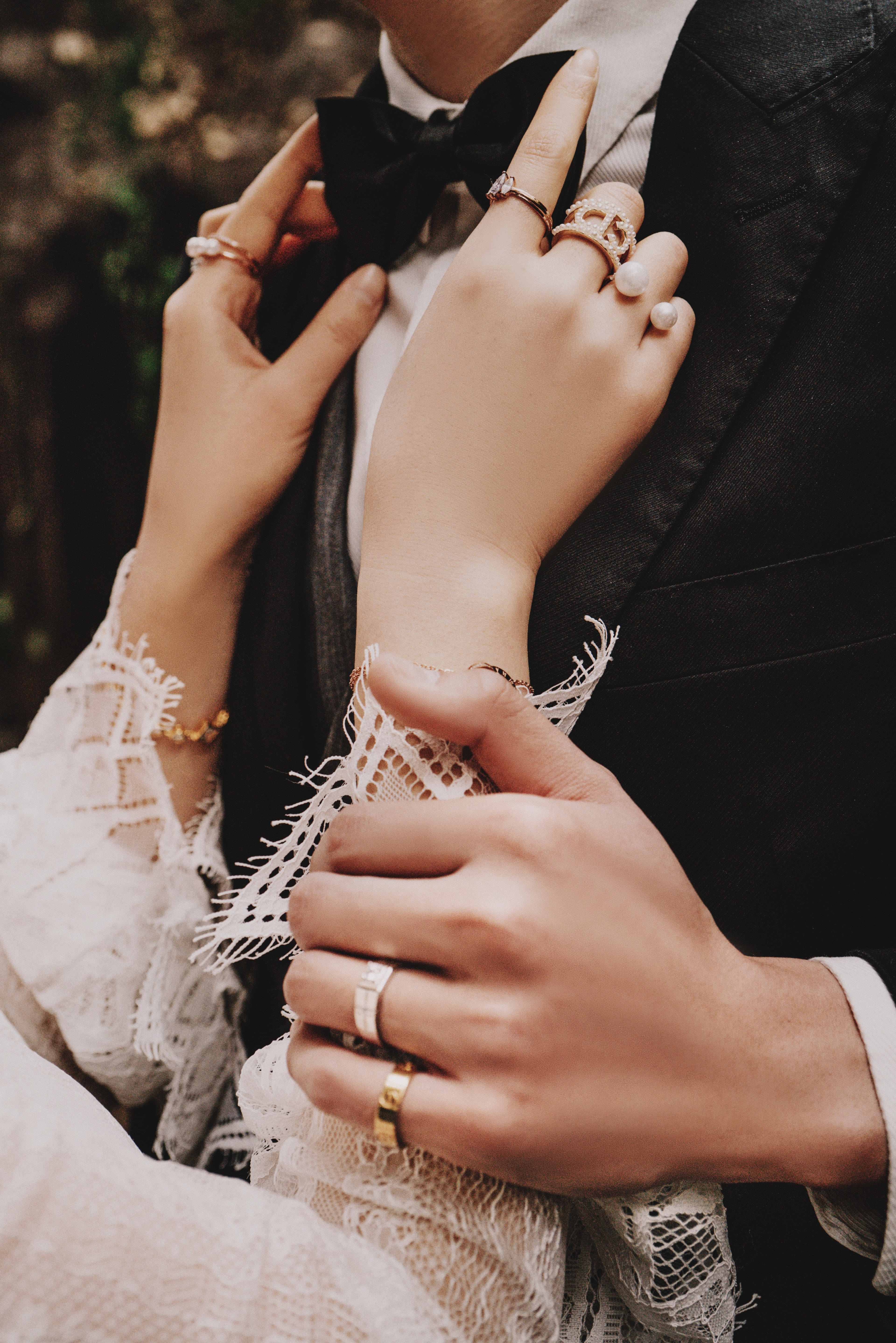• 不少集美吐槽,拍婚纱照的时候,老公就是个道具,最后拍出来的照片都不太尽如人意,反而是自己单人的照片会更好看。 为了避免这个问题,在拍摄之前做足以下功课! 1.让先生全程参与 不少小仙女在婚纱照,甚至是婚礼筹备上选择自己包办。但一个人包办,对方就很难有参与感。没做准备工作,也不知道详细的流程,配合度就不会太高。 建议备婚少女们,从选择摄影机构,确定照片风格,和摄影师、化妆师的沟通,拍摄当天的物品准备,甚至是搭配哪条项链,都去询问一下对方的意见。 参与感高,清楚详细流程,也能感受到你对拍婚纱照这件事的在意程度,拍摄当天就会顺利很多。 2.提前练习拍摄姿势,找镜头感 可以在网上搜索一些婚纱照图片,把喜欢的找出来,对照模特姿势、眼神,和先生一起站在镜子前练习,找到适合自己的姿势和角度。也可以尝试自己拍几张,找找镜头感,避免拍摄出来的照片过于僵硬。 3.少些摆拍,多点抓拍 对于平时不爱拍照的男士来说,想要在拍婚纱照的时候把握好姿势和表情,的确是有些为难的。这种情况,可以和摄影师沟通,尽量以抓拍为主,互动瞬间的动作和表情是最真实、最优感染力的,拍出来的照片也更自然。 4..设计小套路 和摄影师提前沟通,设计一些小套路,让摄影师进行抓拍,比如:故意不系鞋带,让先生来帮忙。 这样可以在不知不觉中把照片拍完,避免了对方在镜头前的尴尬和不自然。