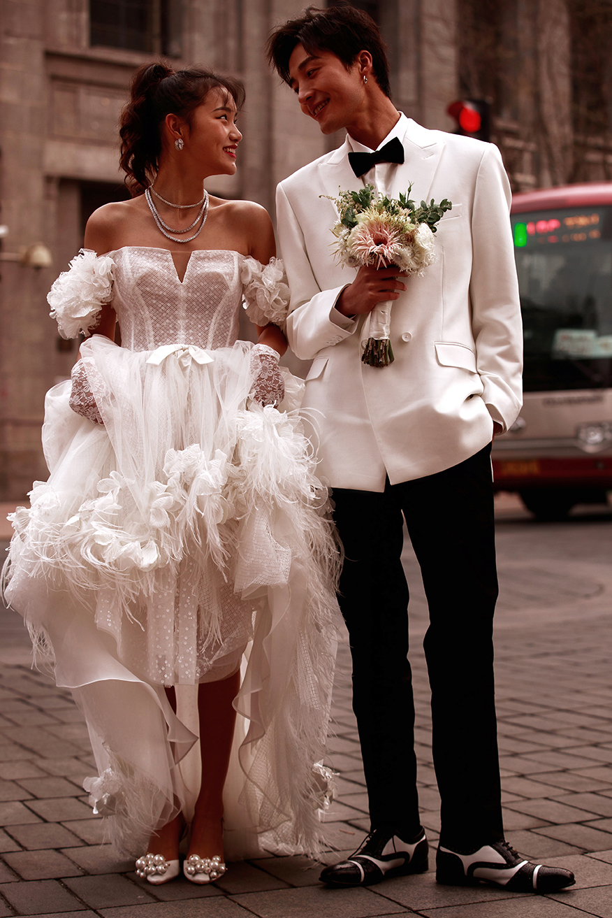 • 充满质感的街拍婚照,新人情绪的释放很重要,就当做这一天只属于自己。 放开拘谨,尽情享受。你会发现你的婚纱照将会变得更有意义。