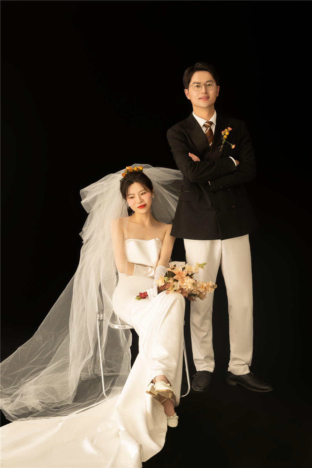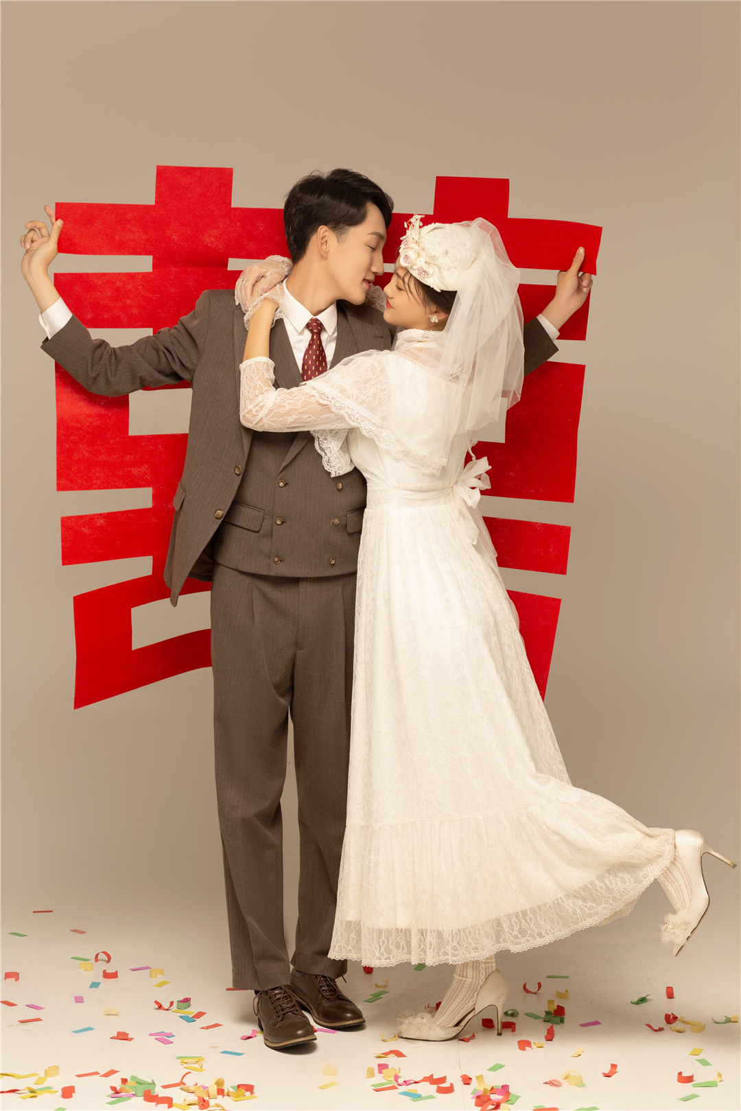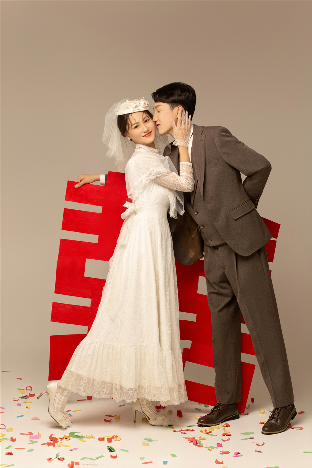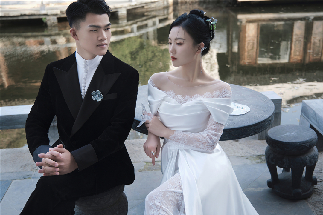 • 新人比较保守喜欢一些复古的风格,摄化老师根据新人的要求进行了一对一的服装造型定制,拍摄出来的成品也很满意,感谢新人的选择!