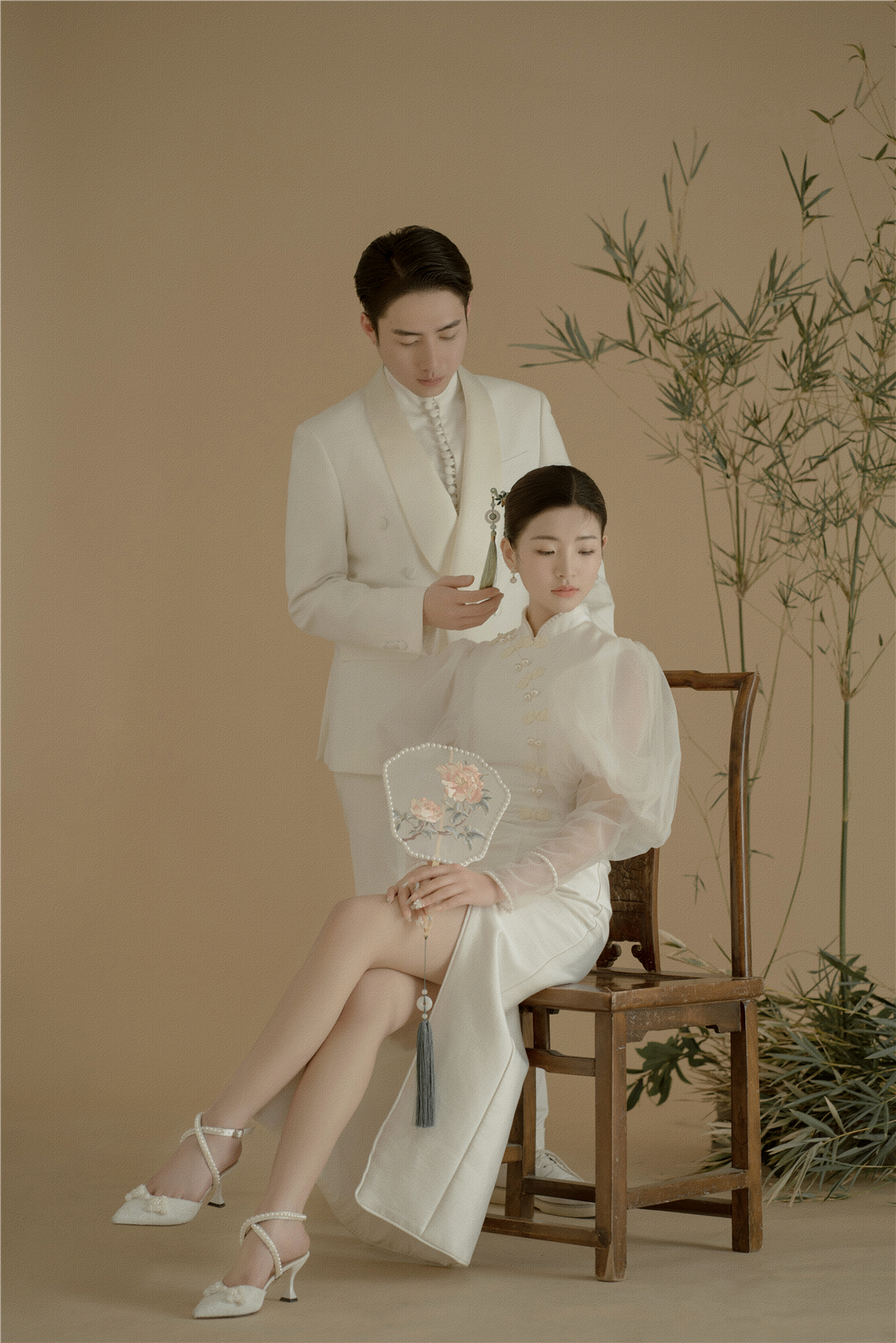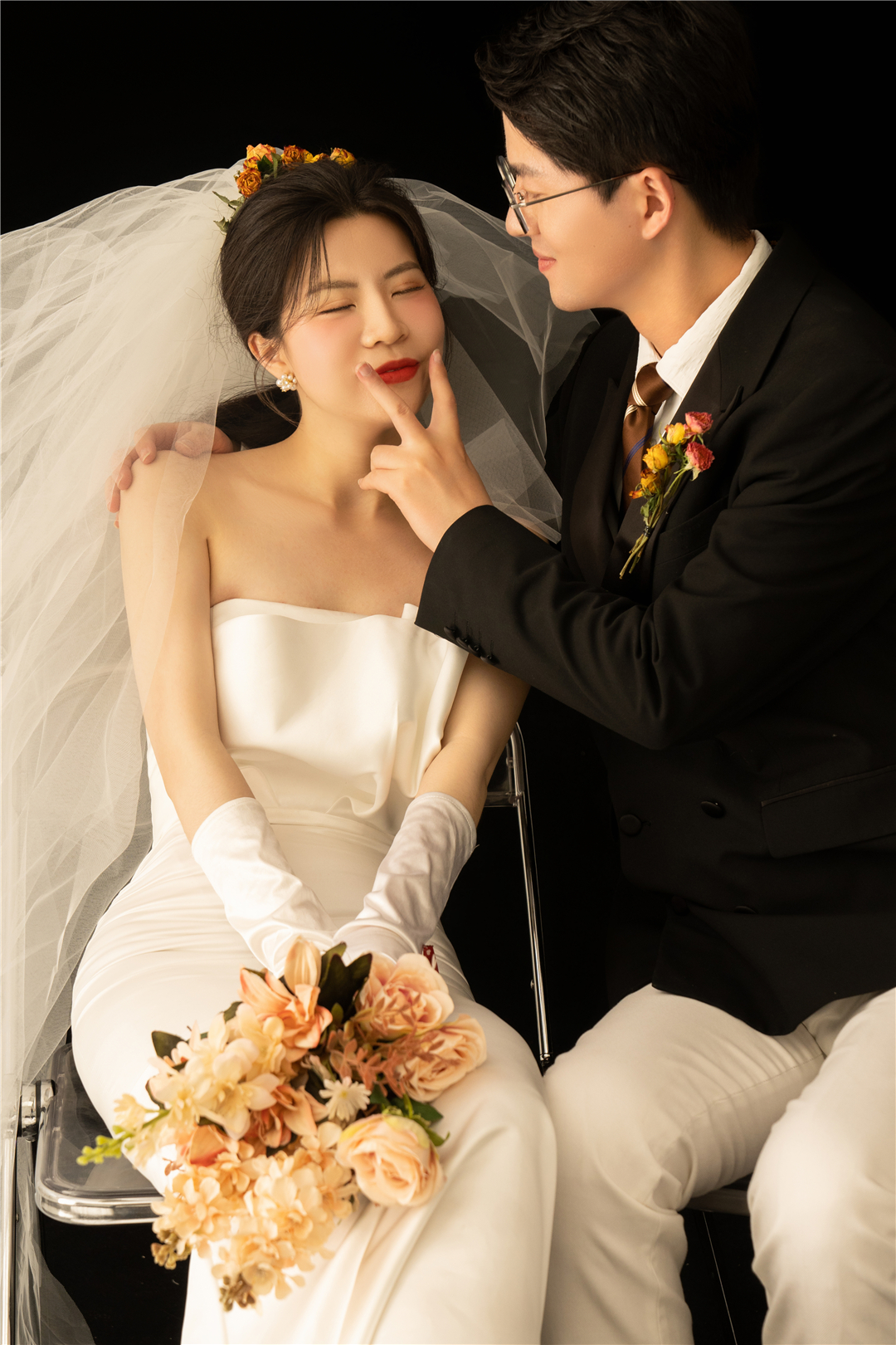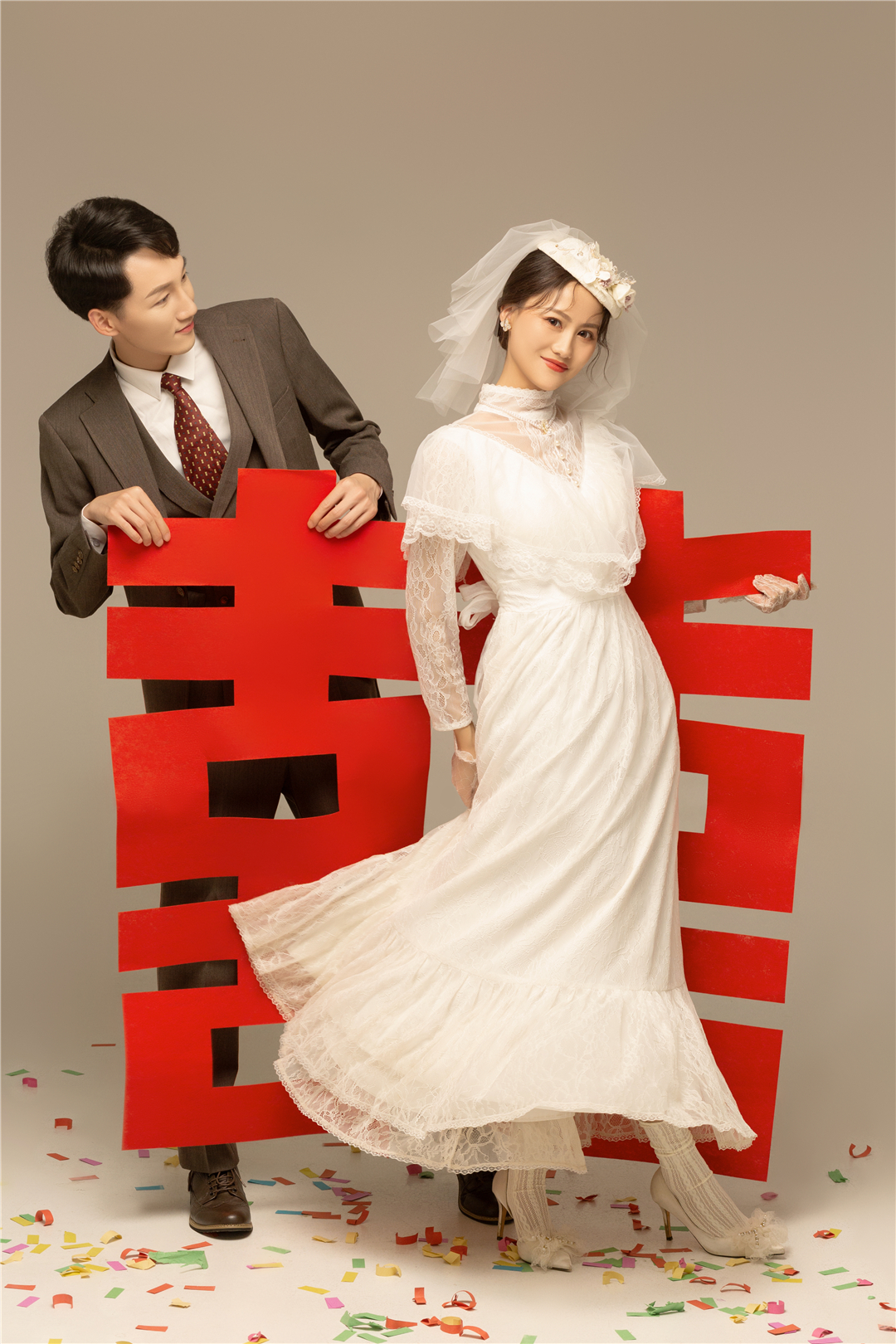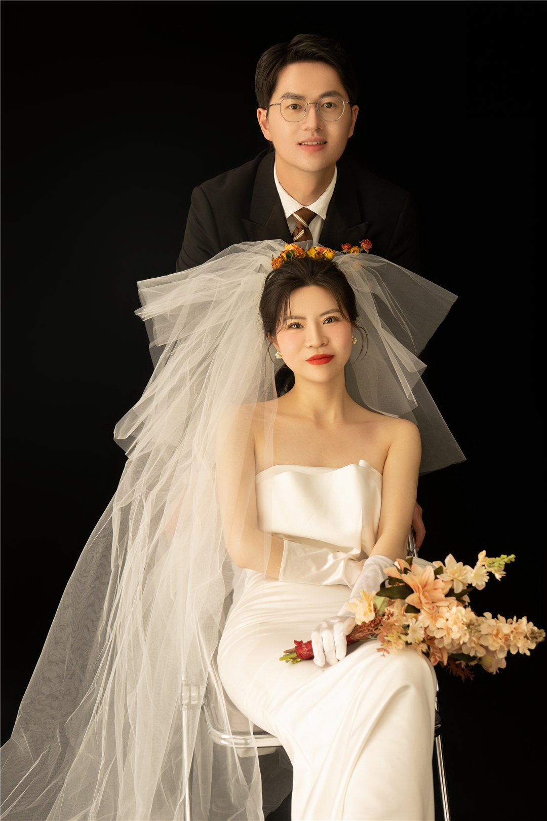 • 新人比较保守喜欢一些复古的风格,摄化老师根据新人的要求进行了一对一的服装造型定制,拍摄出来的成品也很满意,感谢新人的选择!