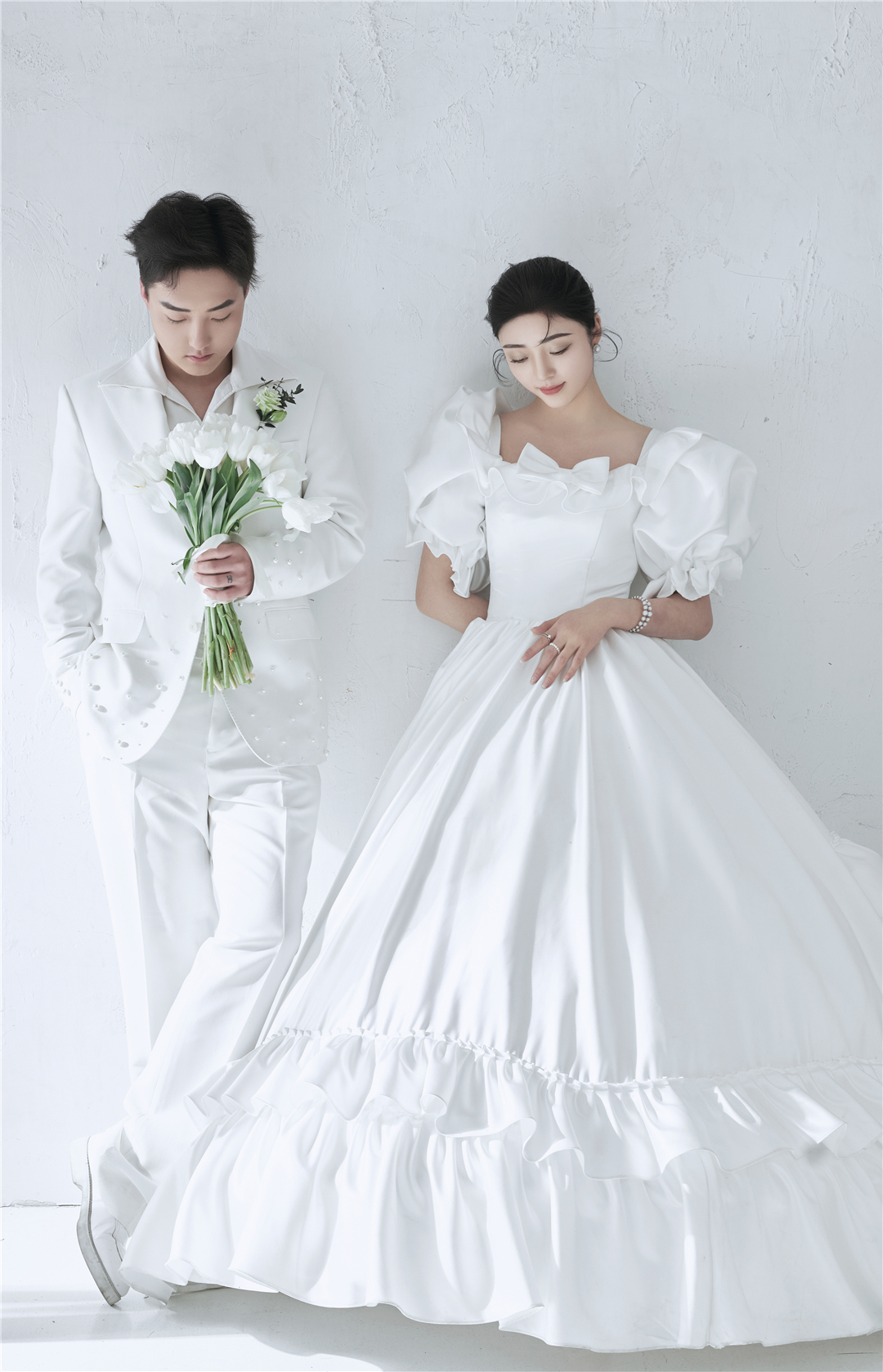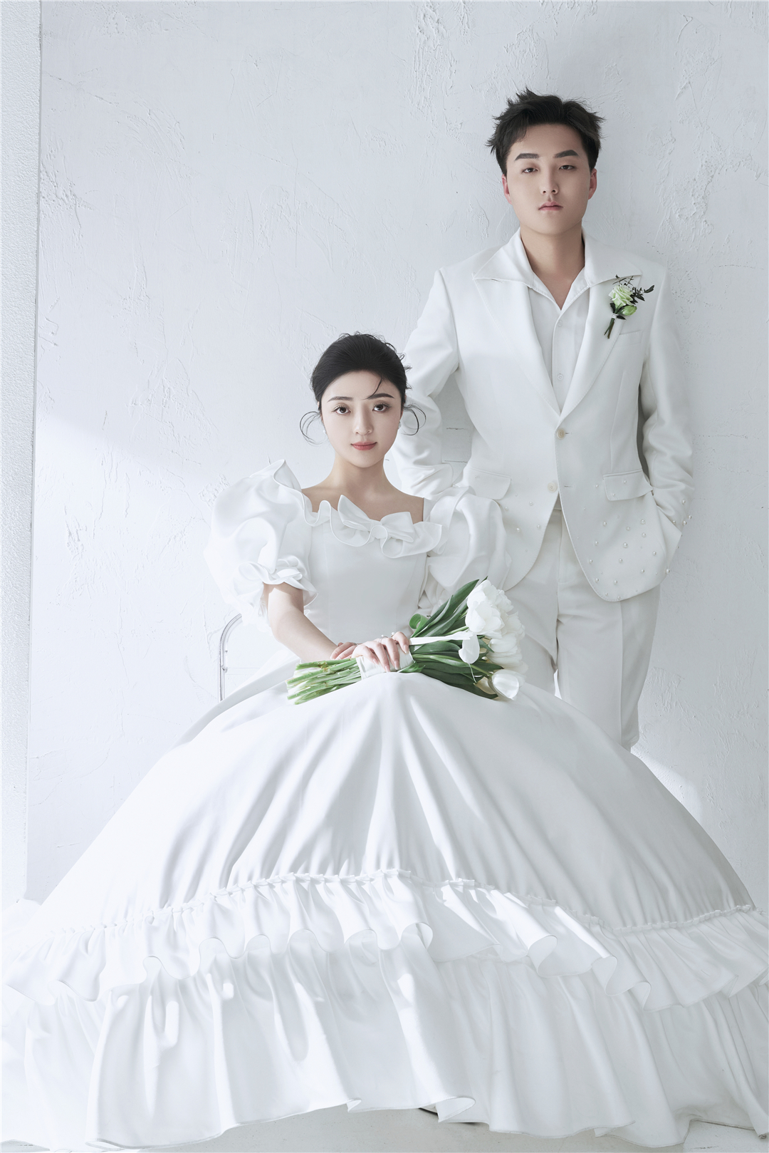 • 新人前期跟我们顾问沟通就想拍点简单的,简约的风格。根据这一需求我们也是及时安排调整了韩式极简婚纱照,简单的婚纱照加西服就把整体的拍摄感拉满了,新人拍摄出来的效果也非常满意。