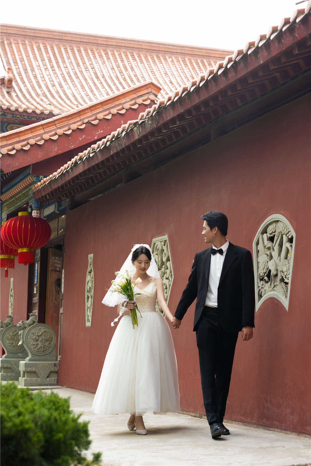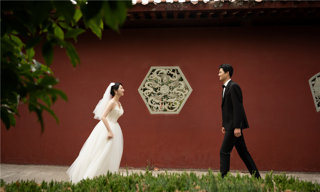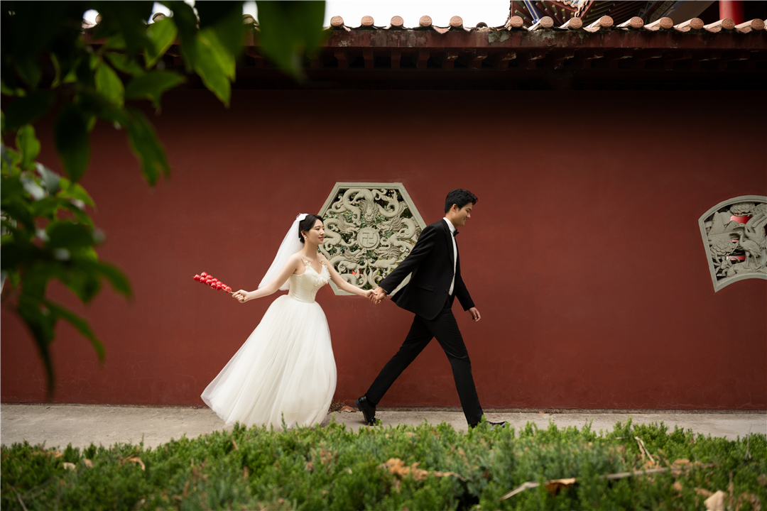 • 新人是从芜湖过来的,她想拍红墙这种风格,可是在芜湖那边就拍不了,找了芜湖当地好几家寺庙都没有拍摄权限,在婚礼纪上看到我们家红墙风格就马上咨询了,了解下来知道合肥可以拍,就马上预约了档期,拍摄出来的效果新人很满意。