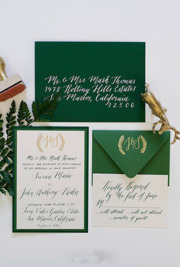 • 【Details Share】婚礼上要选择什么主题颜色一直是新人纠结的问题。墨绿色,今年大热的祖母绿+金色元素,感觉低调中透着奢华,层次感极强。点缀金色,提亮色调的同时又多了几分复古和华贵,让婚礼布置的档次瞬间提升。祖母绿与金色搭配,实现自然宁静到奢华风的转换 。