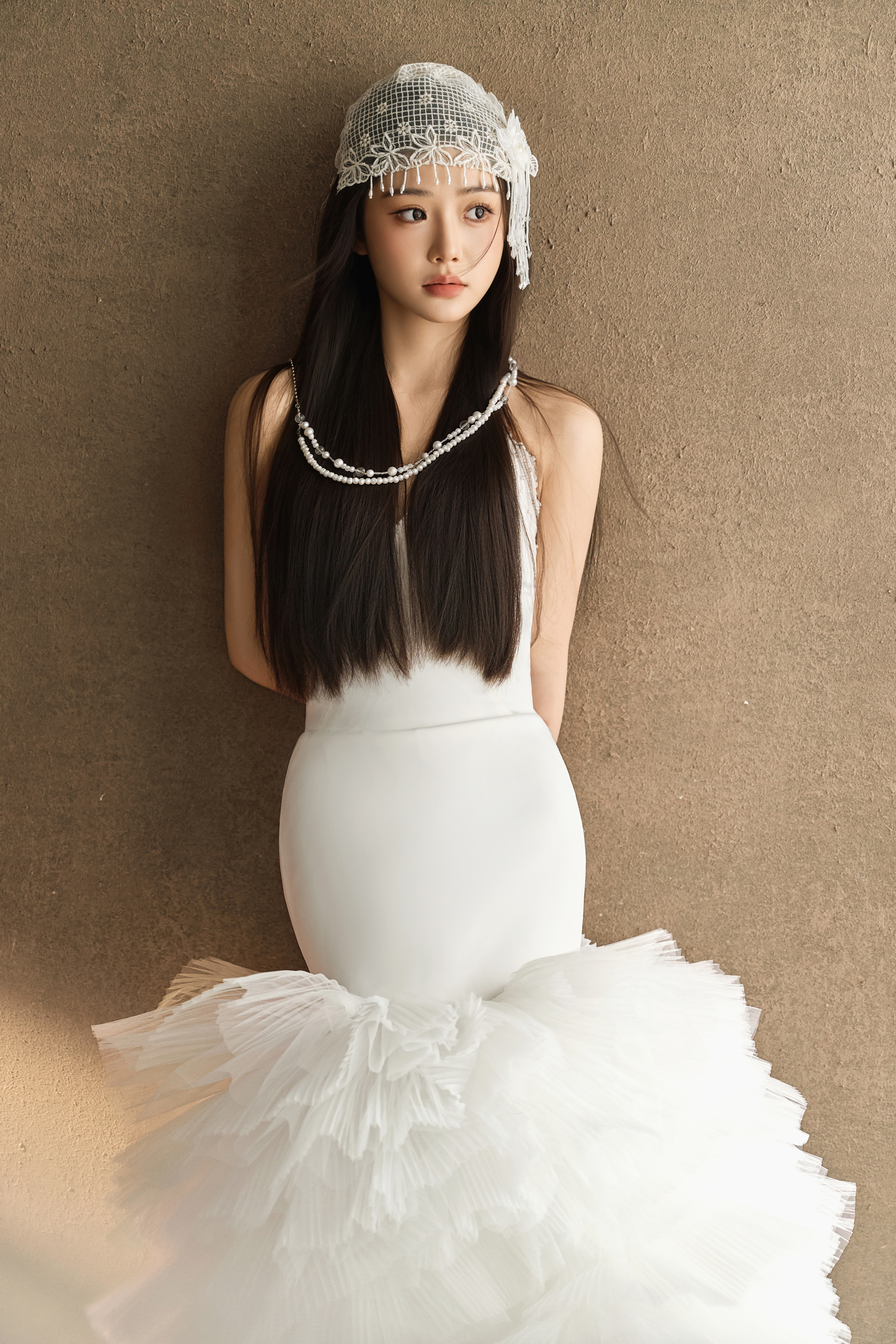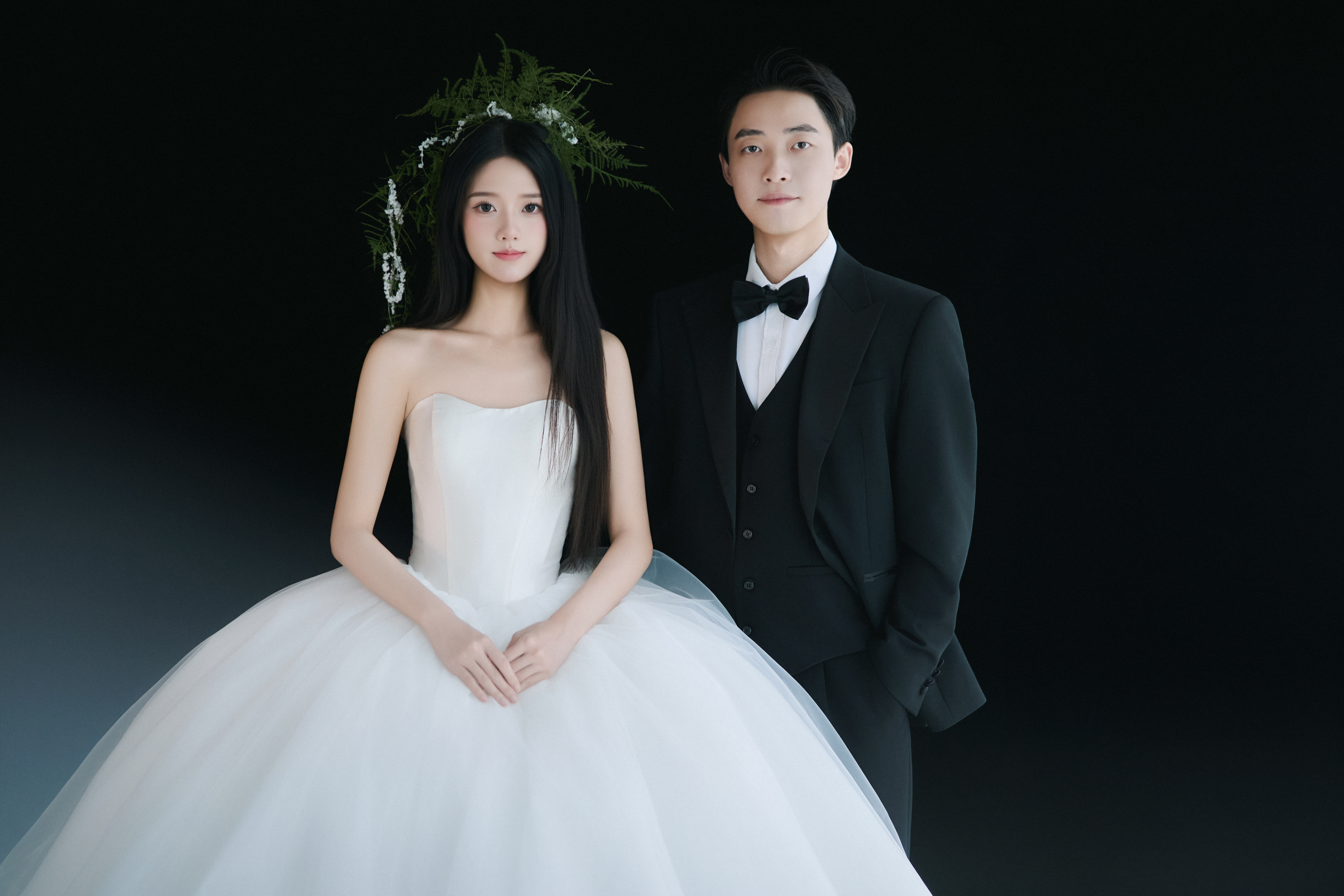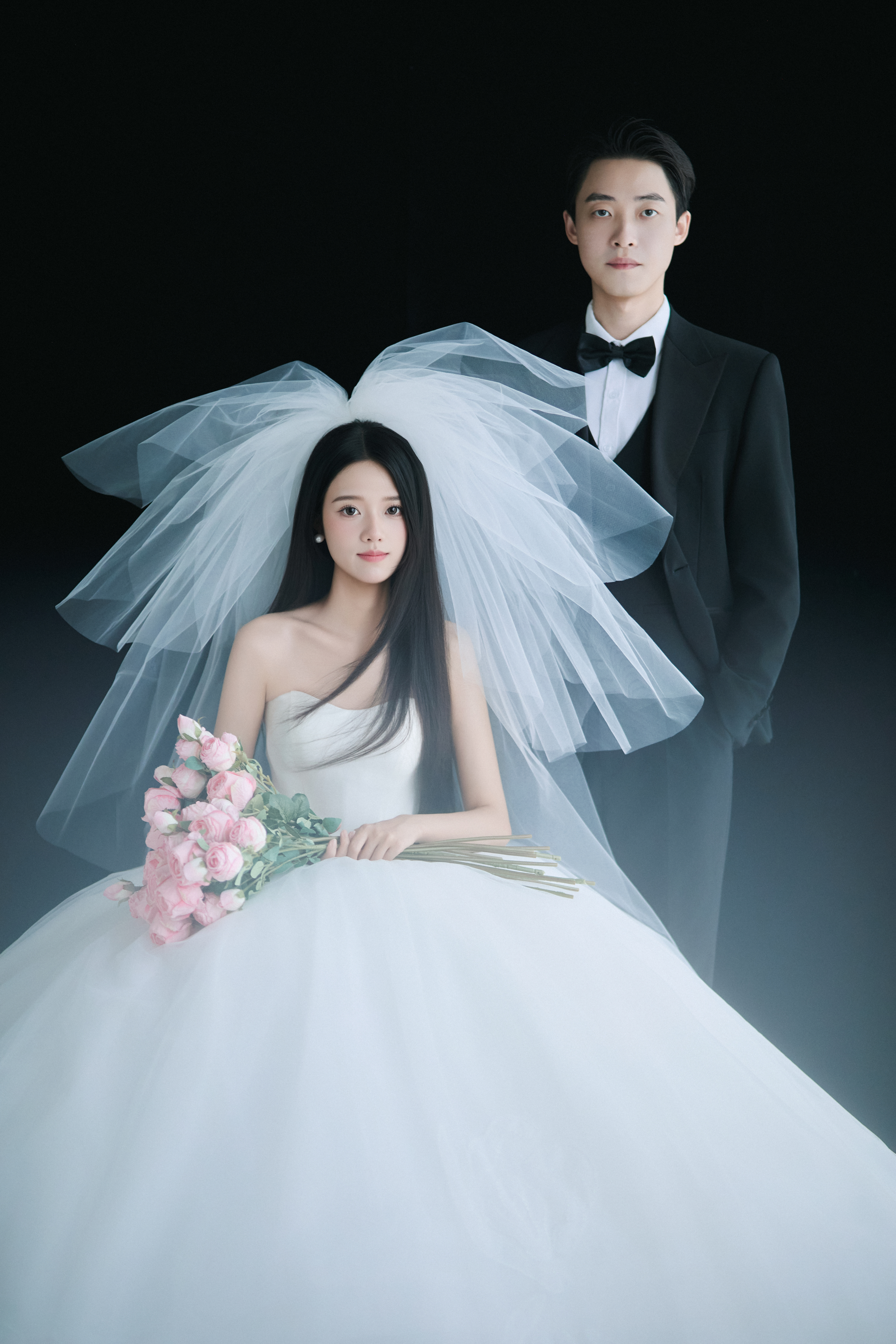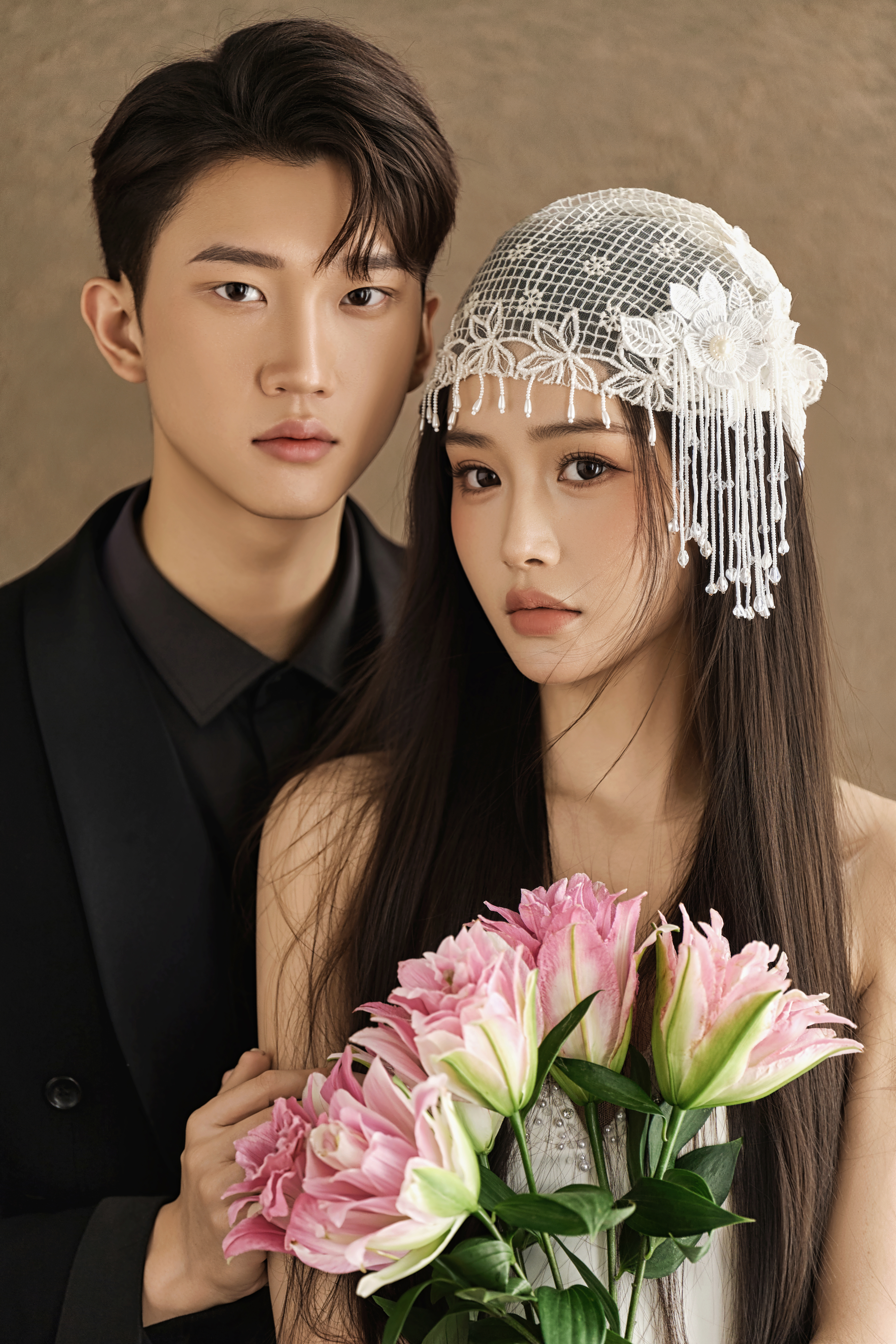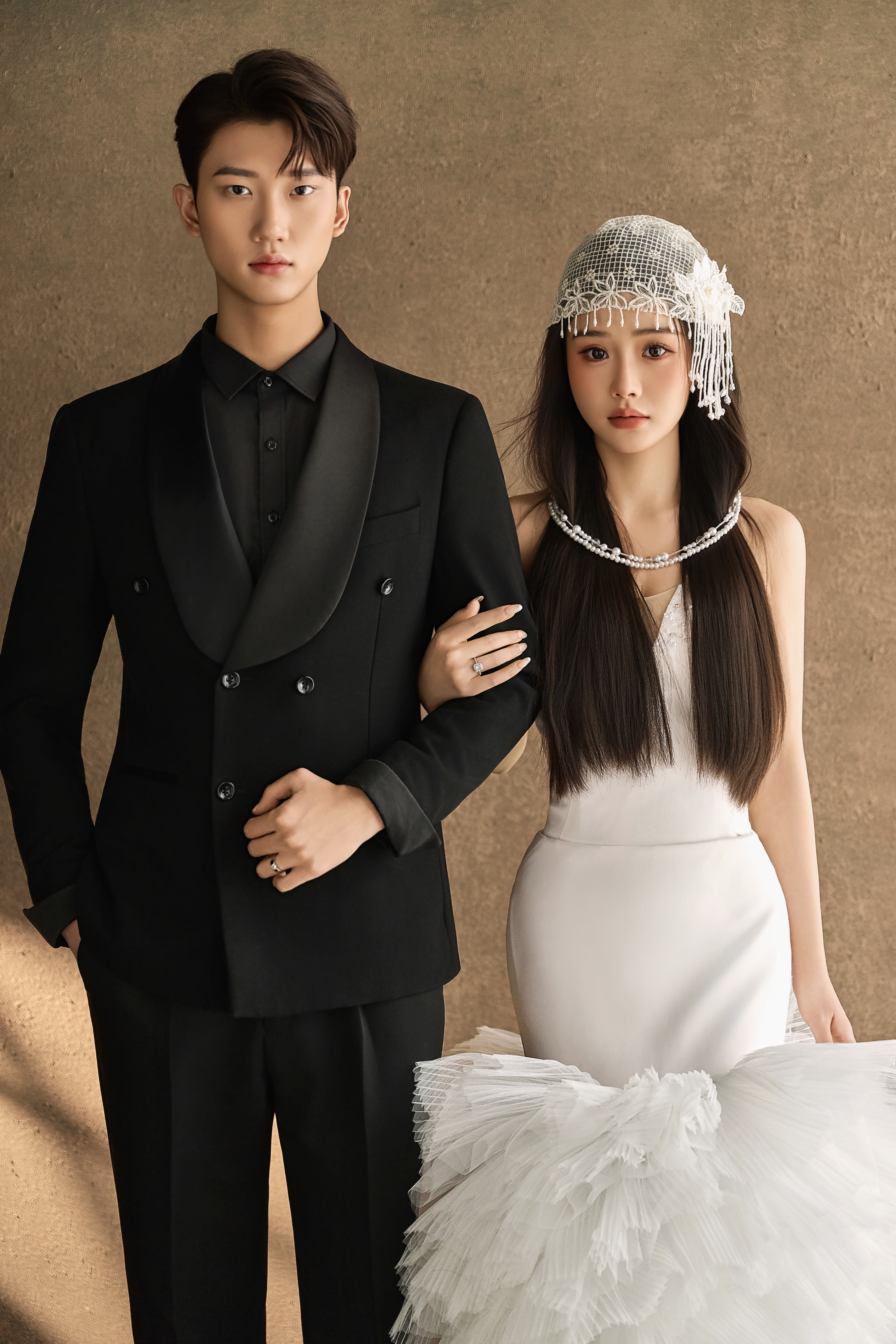• #浪漫光影婚纱照 —— 两套不同的头饰风格~ 简直是韩式婚纱的标配 经典又耐看,气质满分!👰‍♀ 完全不用担心过时💑 - 高定蕾丝婚纱恰到好处的温柔✨ 极简纯色背景丰富空间层次 化繁为简赋予主纱不一样的仪式感 每一帧画面都拥有细腻动人的感染力 -