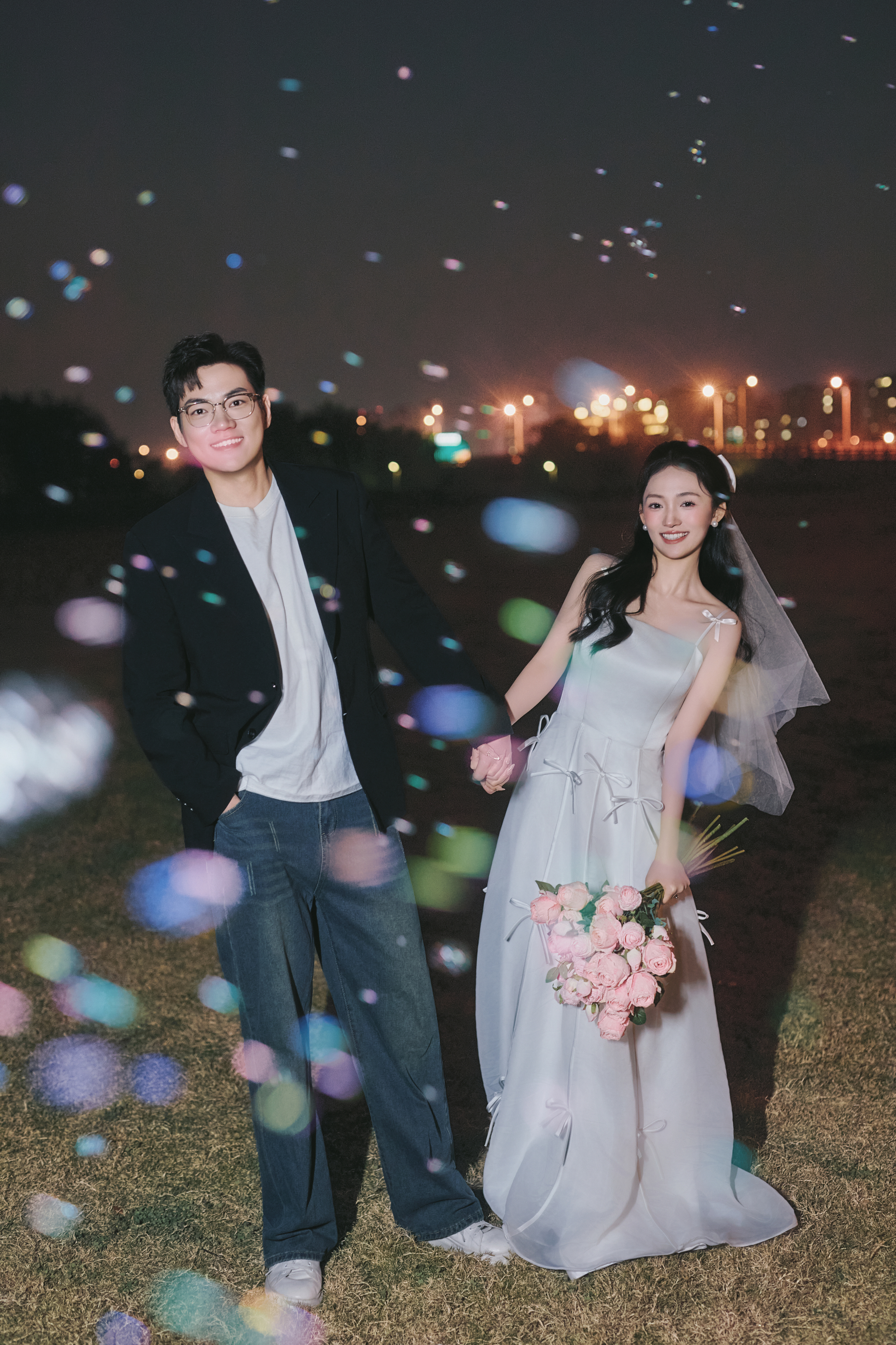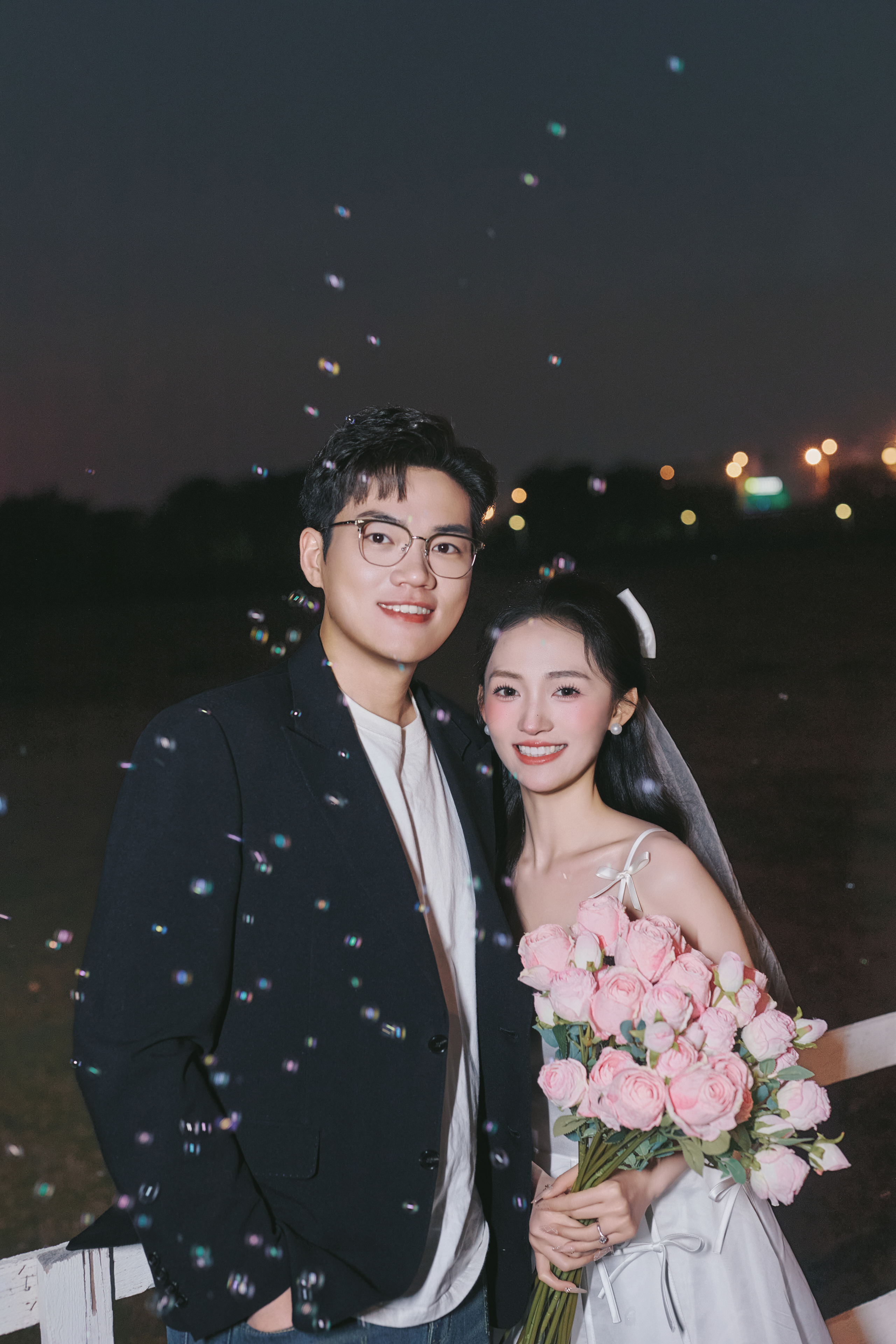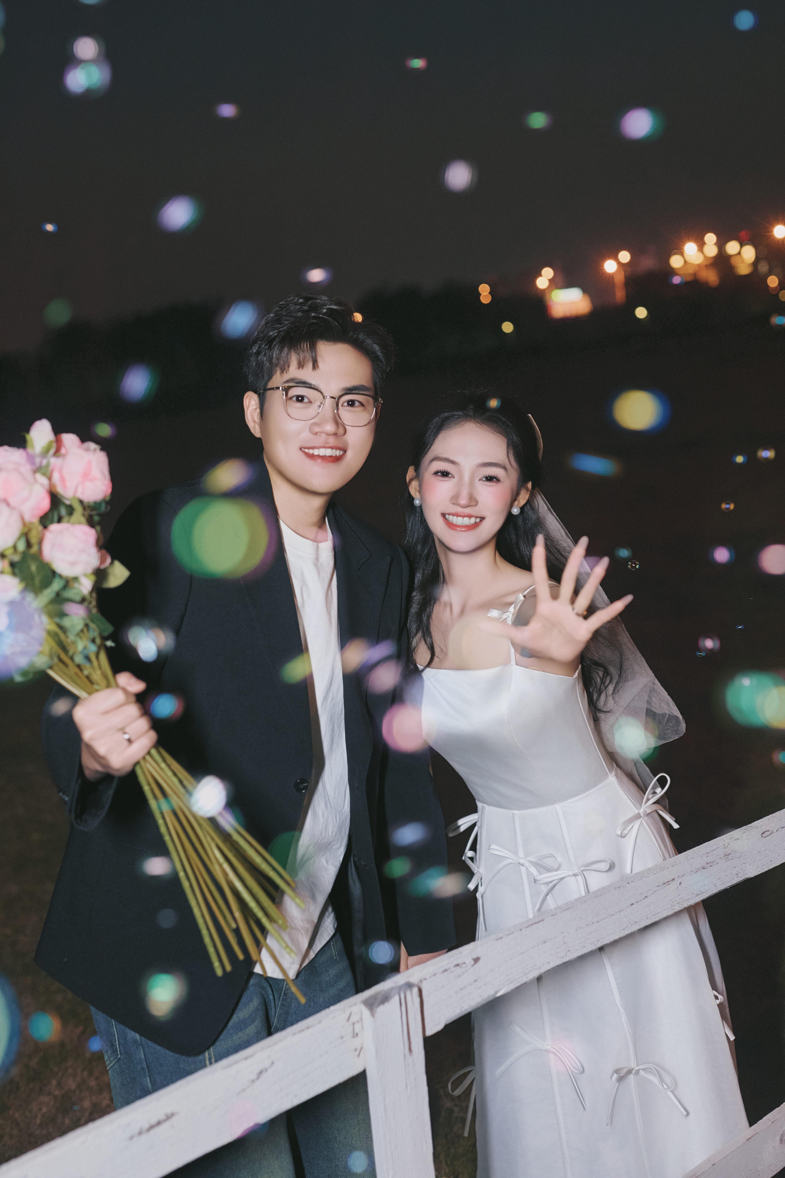 • #夜景烟花婚纱照 —— 就结一次婚‼️当然要尽兴呀 掌管出片精髓的夜景婚纱照 快被溢出屏幕的生命力美哭了 -- 比起漂亮 我更爱这生动的瞬间! 鲜花 泡泡🫧夜幕 晚风 爱意生长 我心中00后拍婚纱照的活人感 被这组夜景婚纱照具象化了 -