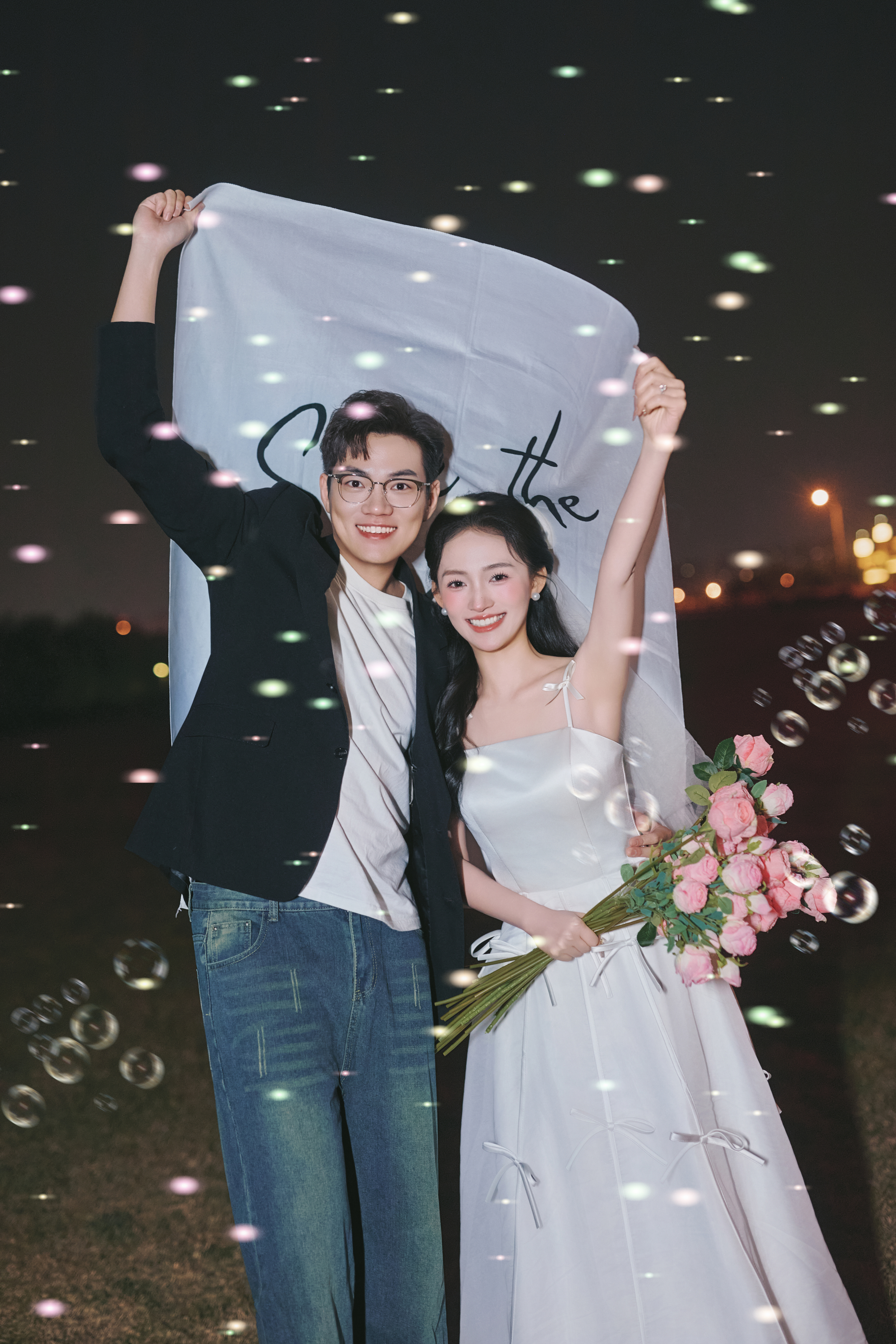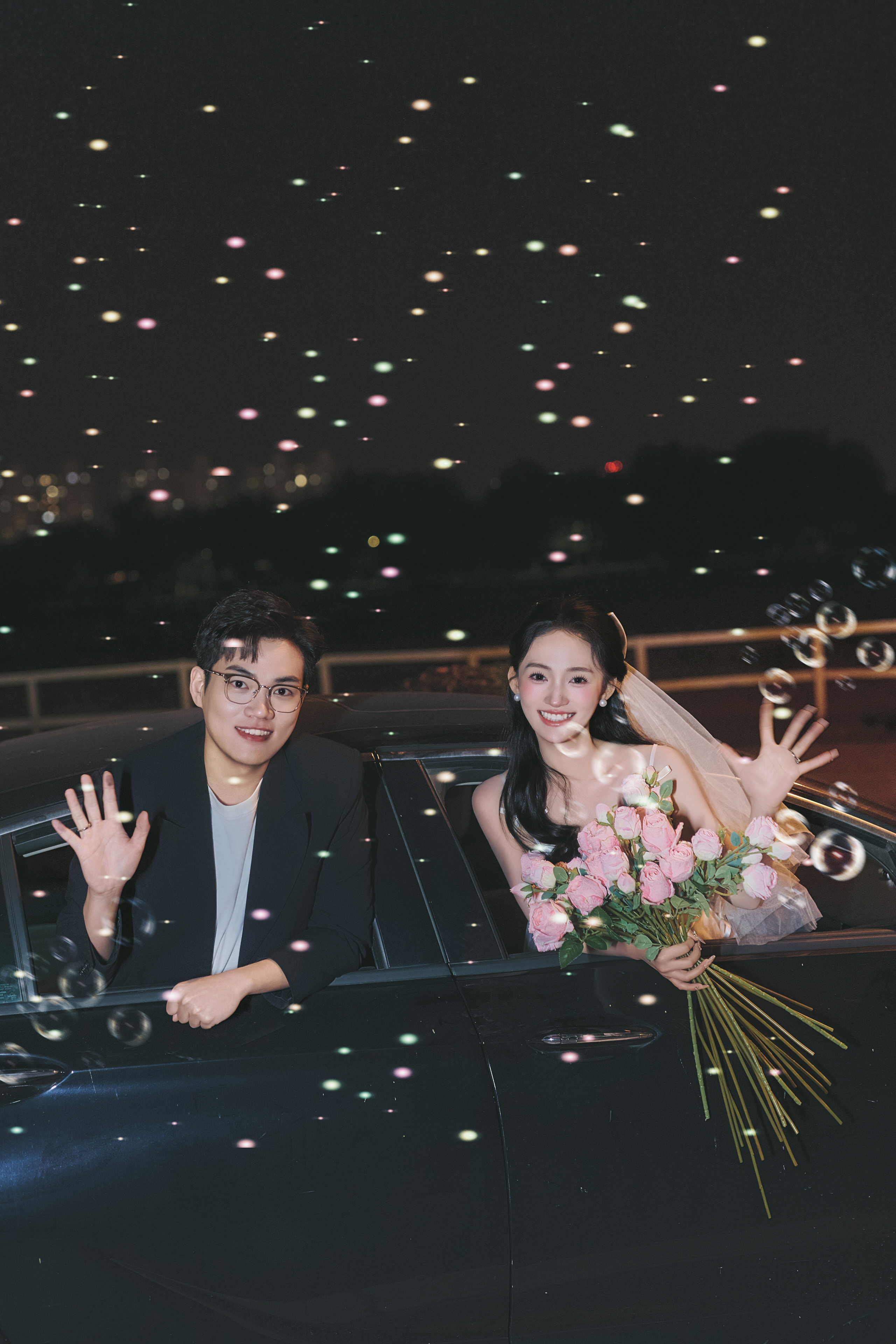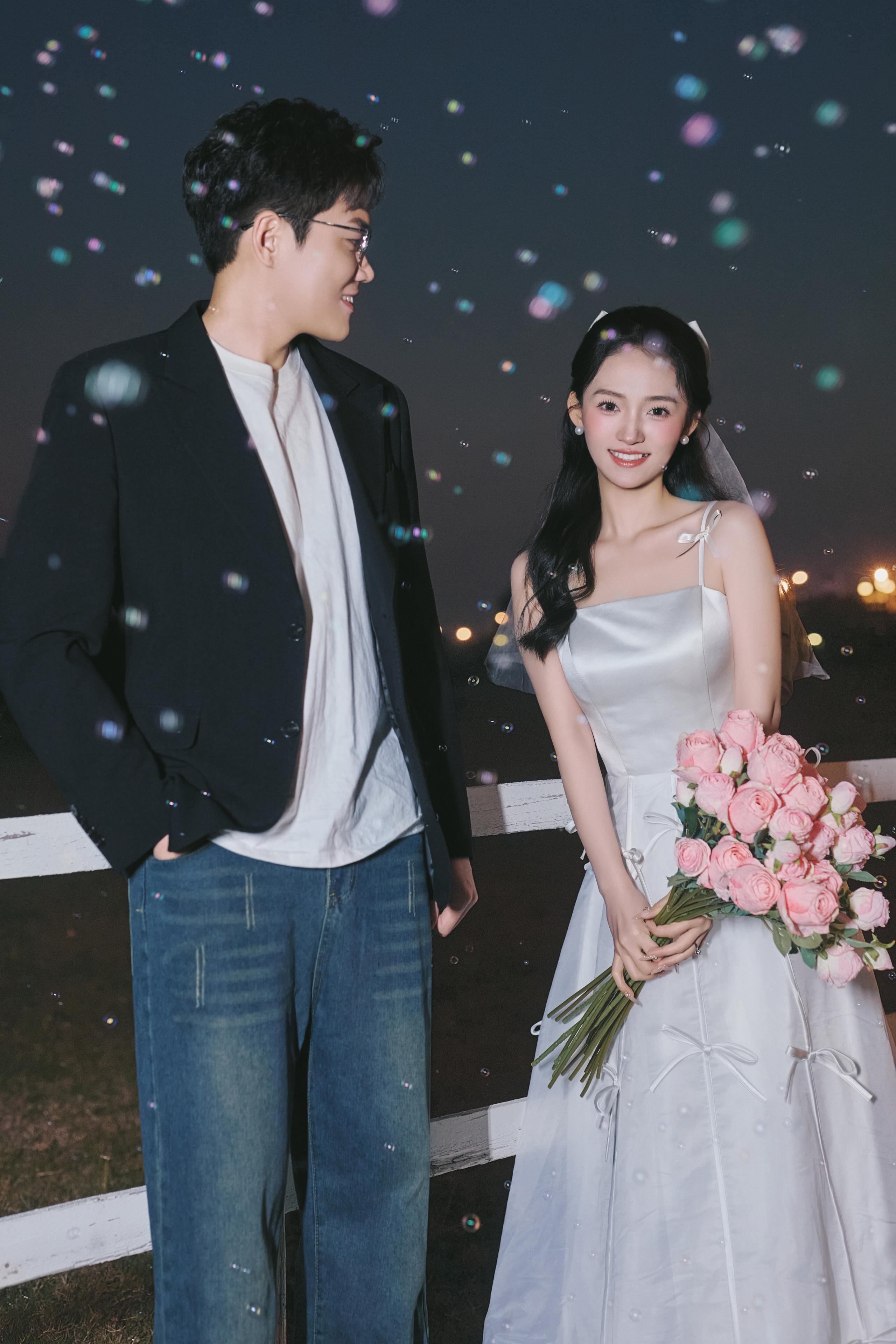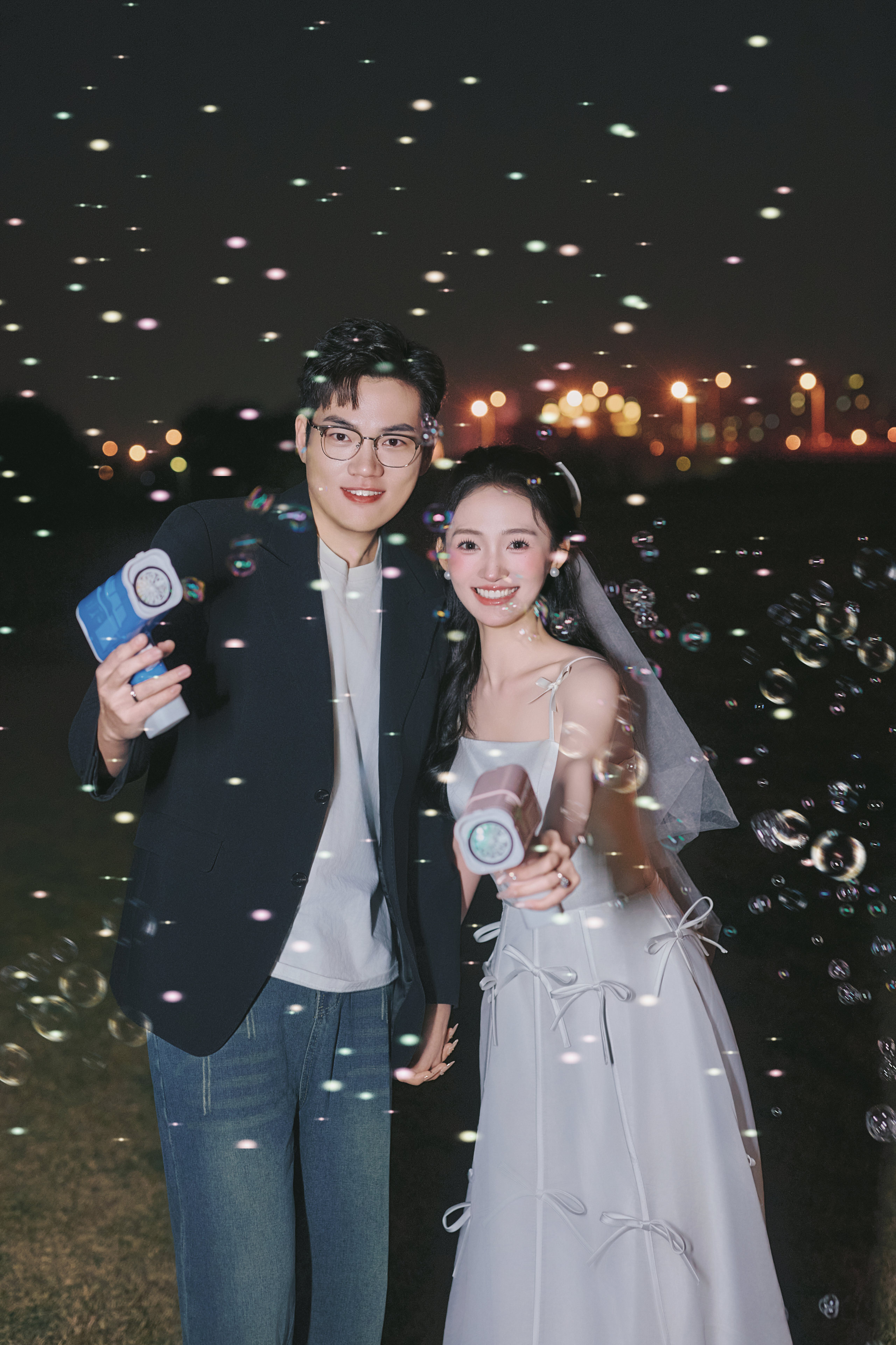 • #夜景烟花婚纱照 —— 就结一次婚‼️当然要尽兴呀 掌管出片精髓的夜景婚纱照 快被溢出屏幕的生命力美哭了 -- 比起漂亮 我更爱这生动的瞬间! 鲜花 泡泡🫧夜幕 晚风 爱意生长 我心中00后拍婚纱照的活人感 被这组夜景婚纱照具象化了 -