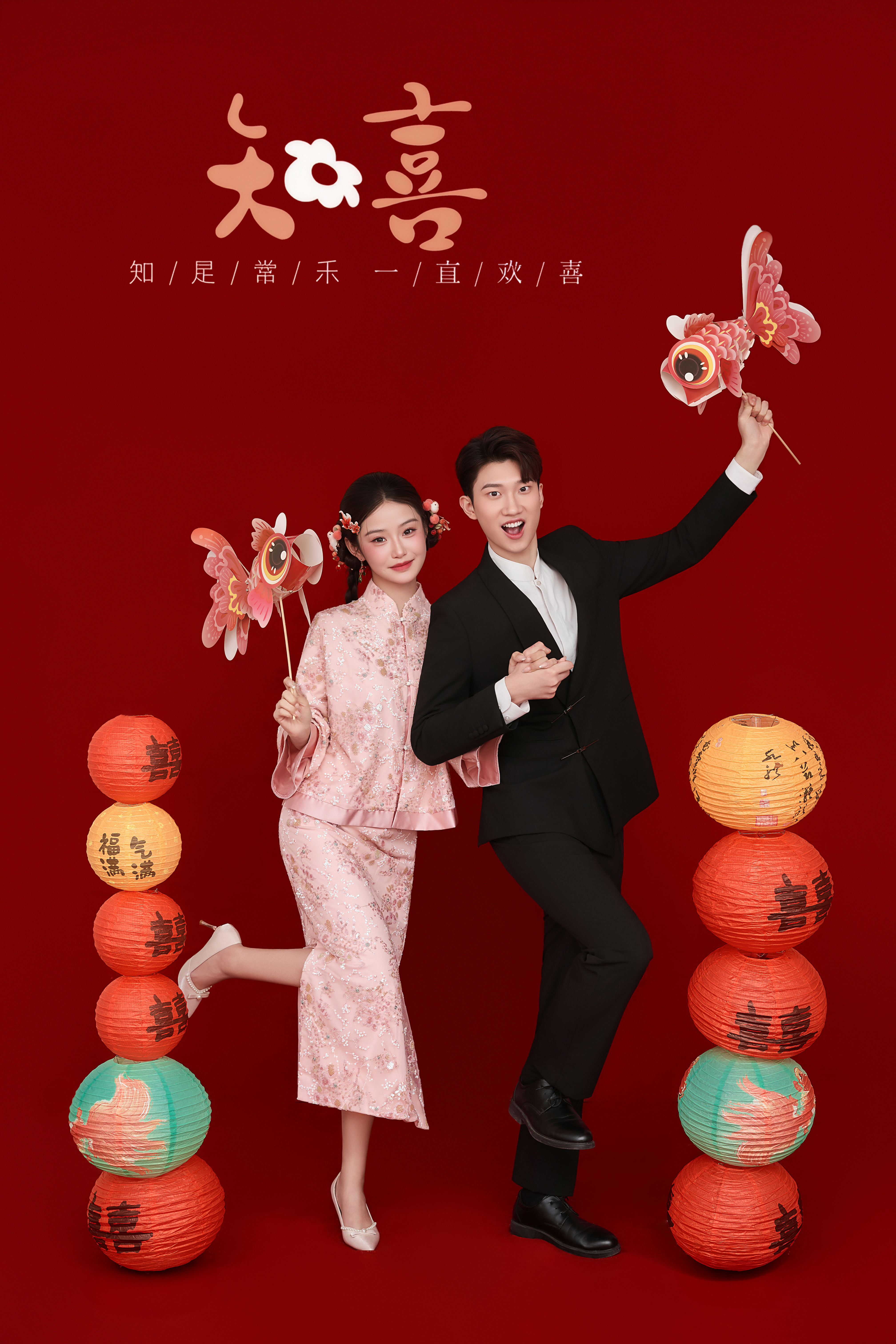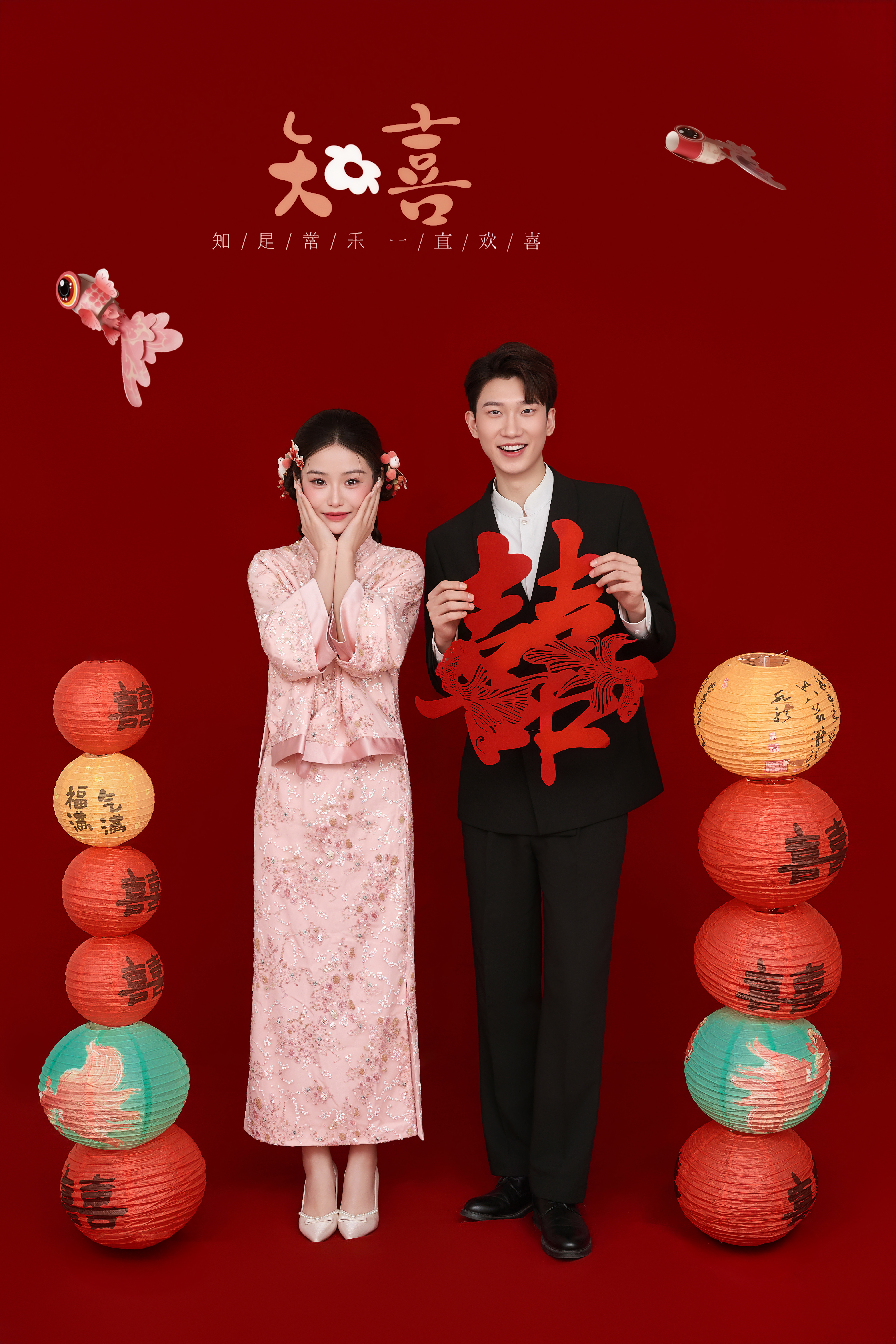 • #美出圈的新中式婚纱照 —— 精致的绣花粉色改良旗袍🌸 超可爱的双辫发型💘 加上灯笼、鱼儿点缀少女心 完美诠释了少女感的中式浪漫~ - 喜庆又活泼的热闹氛围 而且一点都不会有传统中式的古板 尊嘟太好看啦😭 -