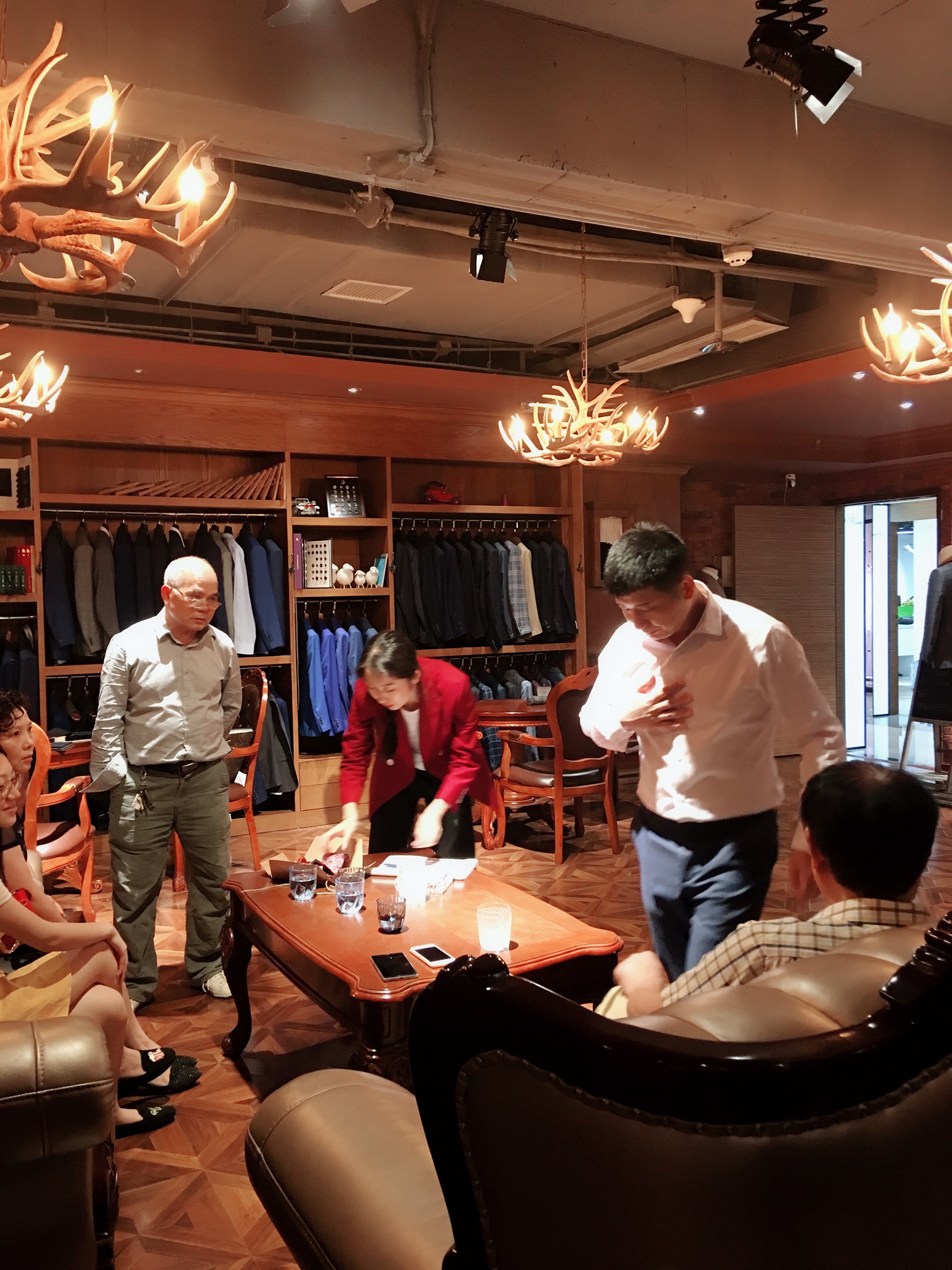 • 很棒的一家店,装修风格哟很喜欢,店家地址也很好找,他们家样衣都很多,版型很修身,现在年轻人穿很好看,也很合体,话说老公以前没有穿过西服,这次试穿西服真帅,哈哈…期待成品了