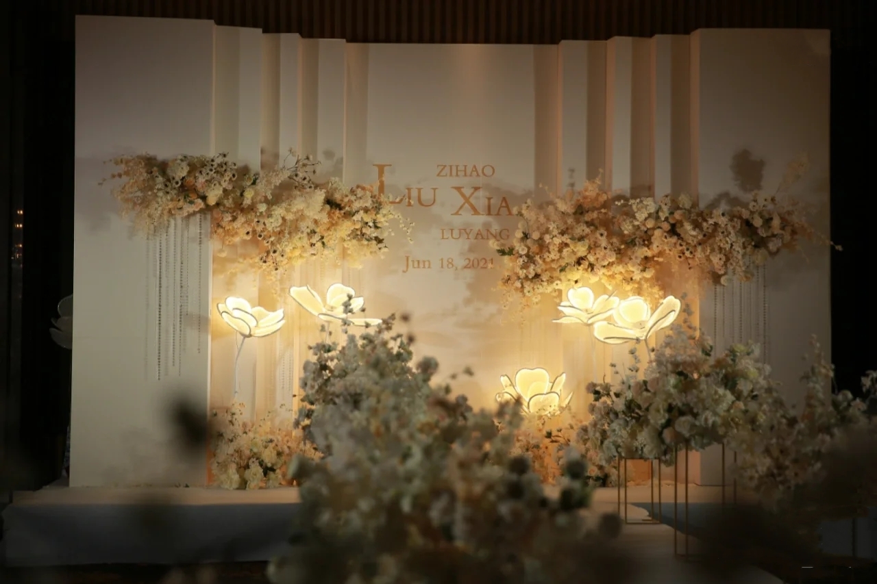 • 婚礼筹备了大半年开始真的是一头雾水,接触了他们家,策划师非常用心的给我们做了专业的讲解和场布策划。让仪式当天有点儿紧张的我轻松了不少,这是一场专属我们的难忘的婚礼。特别特别感谢、一切都很值得。