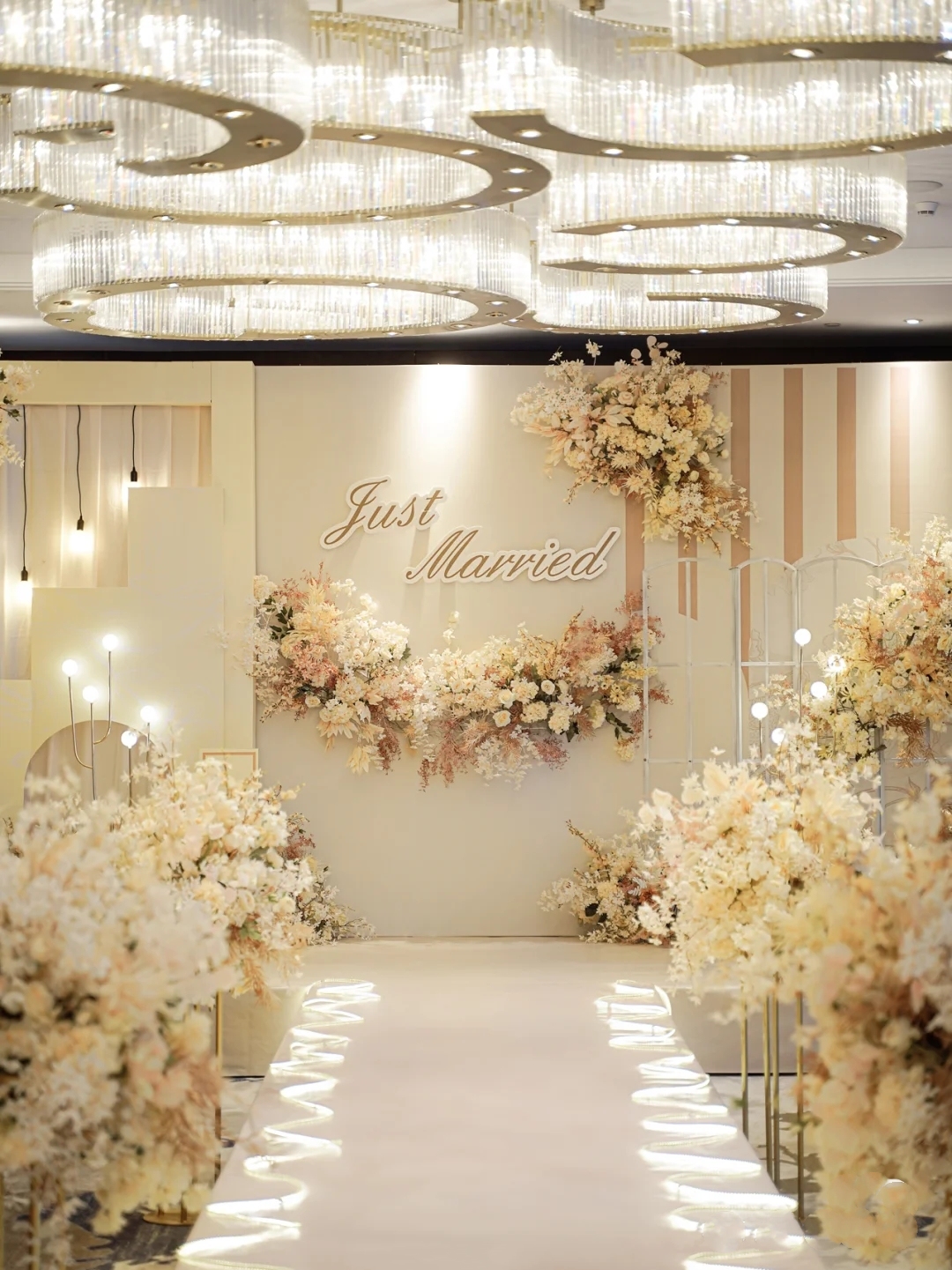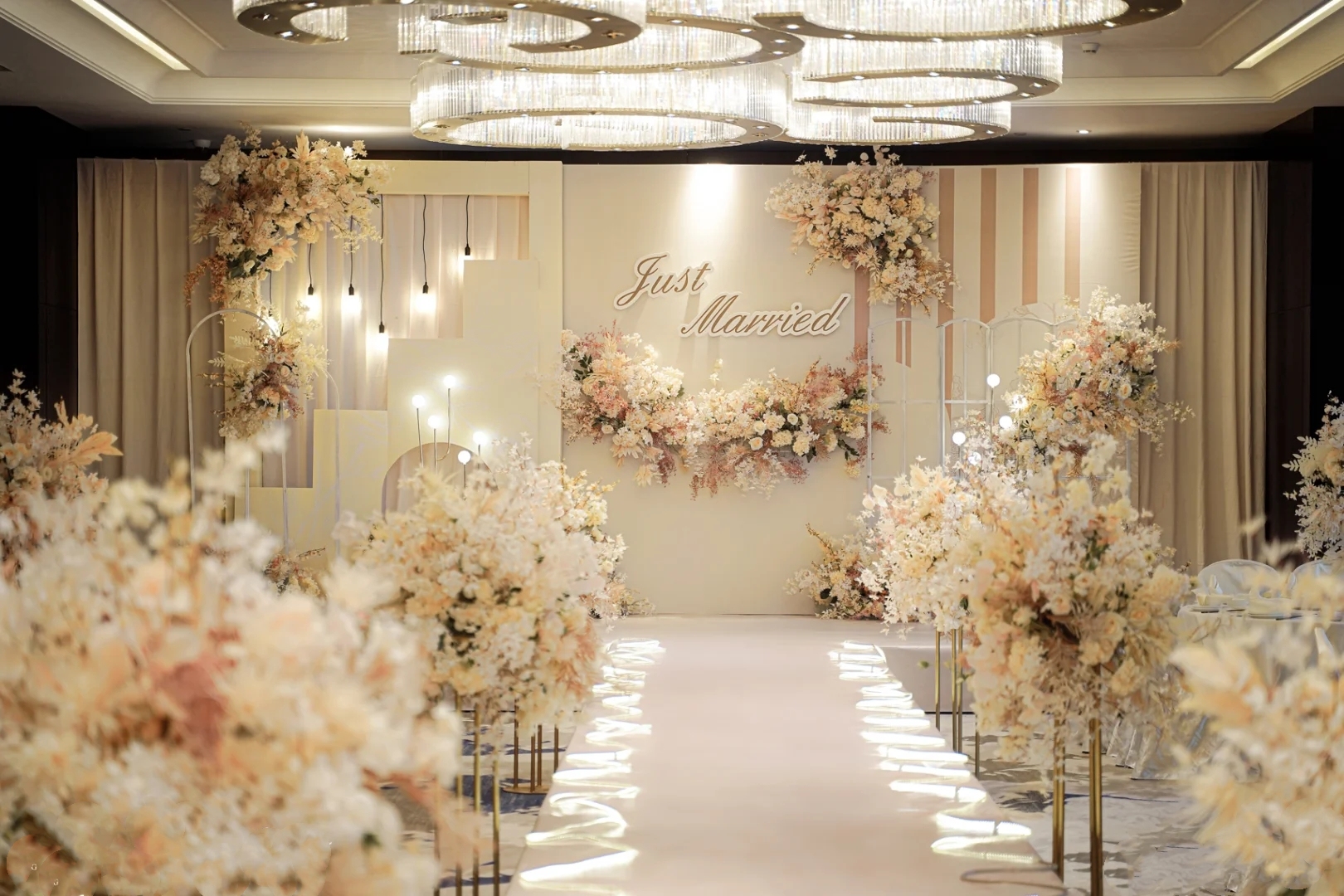 • 真的很感谢给了我一场自己喜欢的婚礼,当时去定的时候距离婚期只有一个月了,非常赶,策划师非常贴心,可以看得出所有工作人员的用心,自己不需要担心现场有什么问题,当天的布置人员都在抓紧时间搭建。婚礼很满意我们也很喜欢,比个心,哈哈。