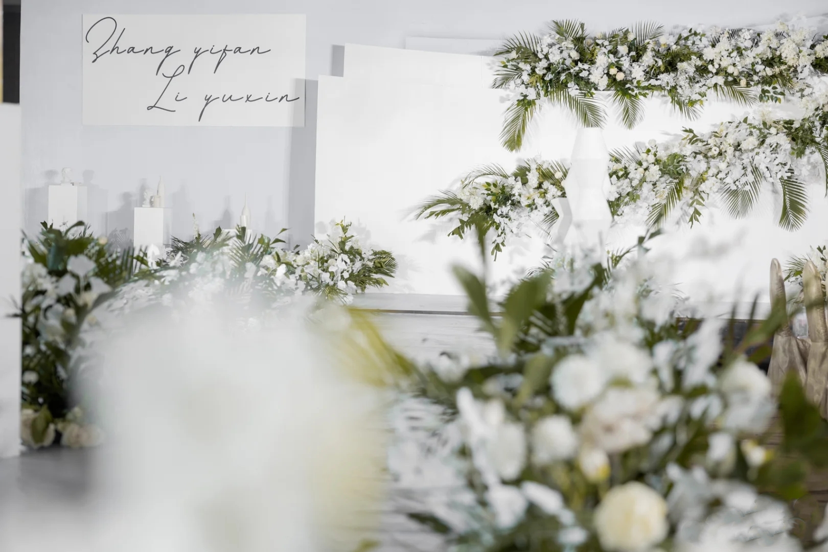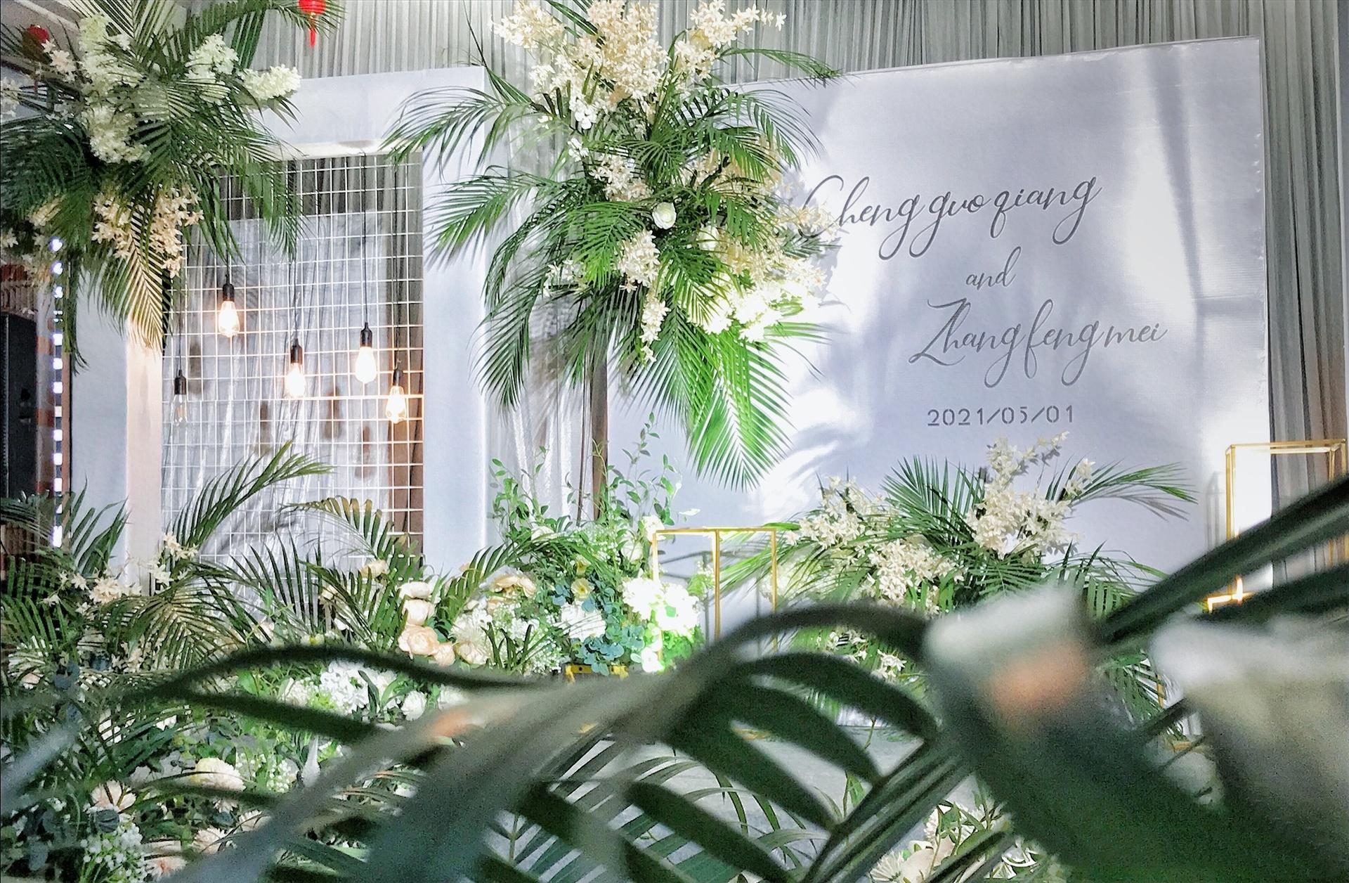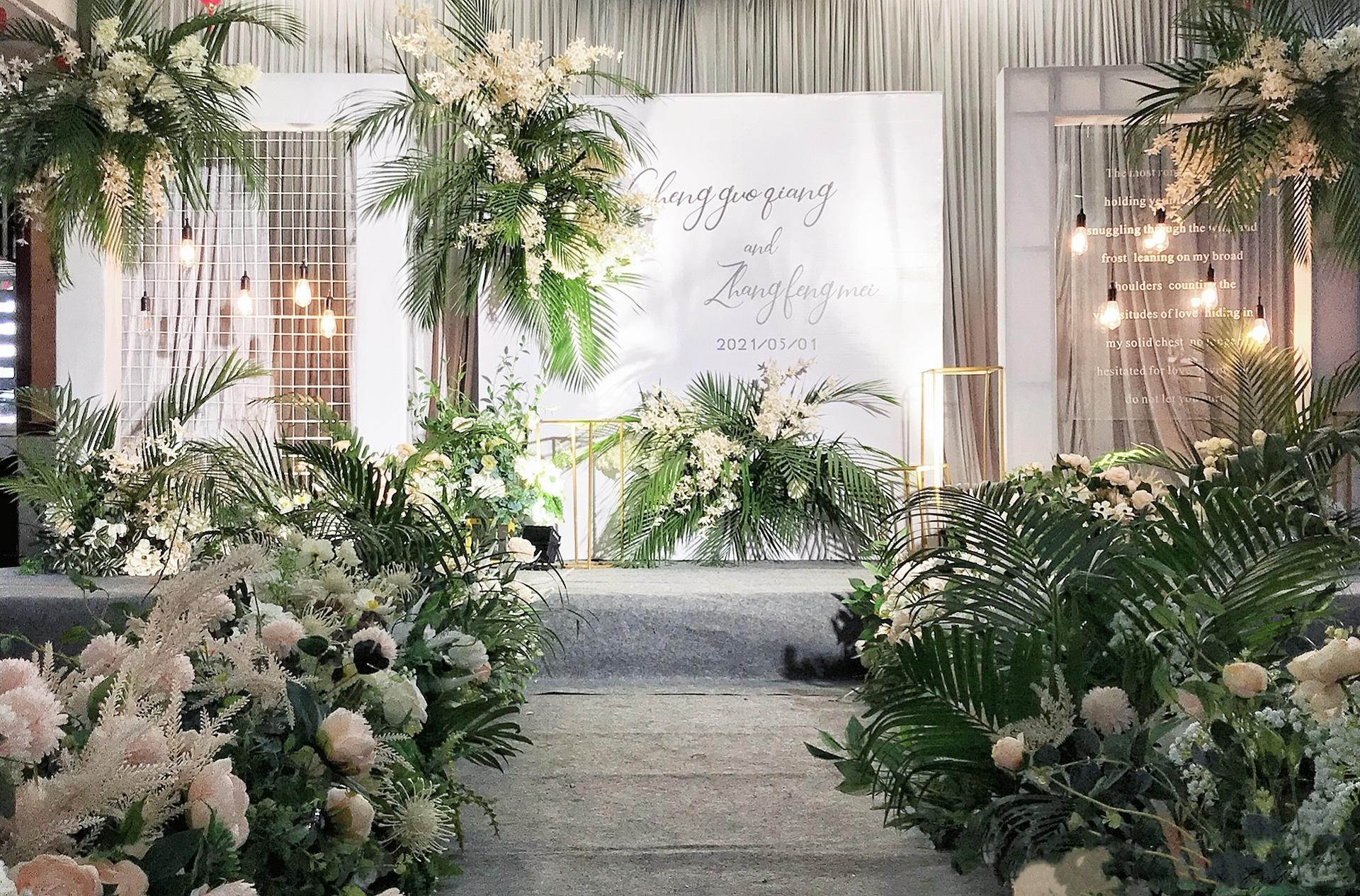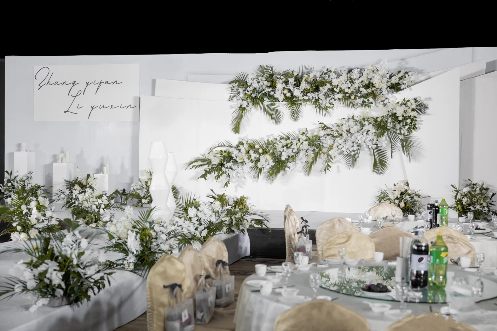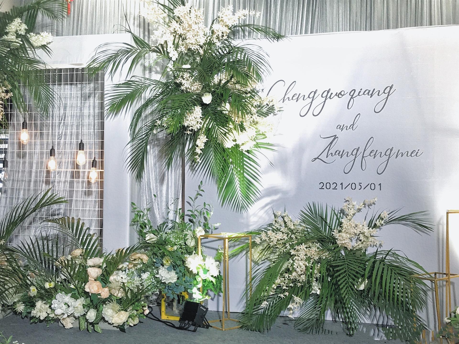 • 婚礼现场布置的相当的棒,感谢策划师,从初次沟通阐述自己的想法,到确定设计方案,全程高效而且顺利。主持人当场的发挥让我们也非常的满意,策划师也全程盯着费心,摄像摄影师傅也非常得投入,完全达到了之前设想效果,近乎于完美理想,从婚礼装饰的细节里能感受到工作人员的特别用心。