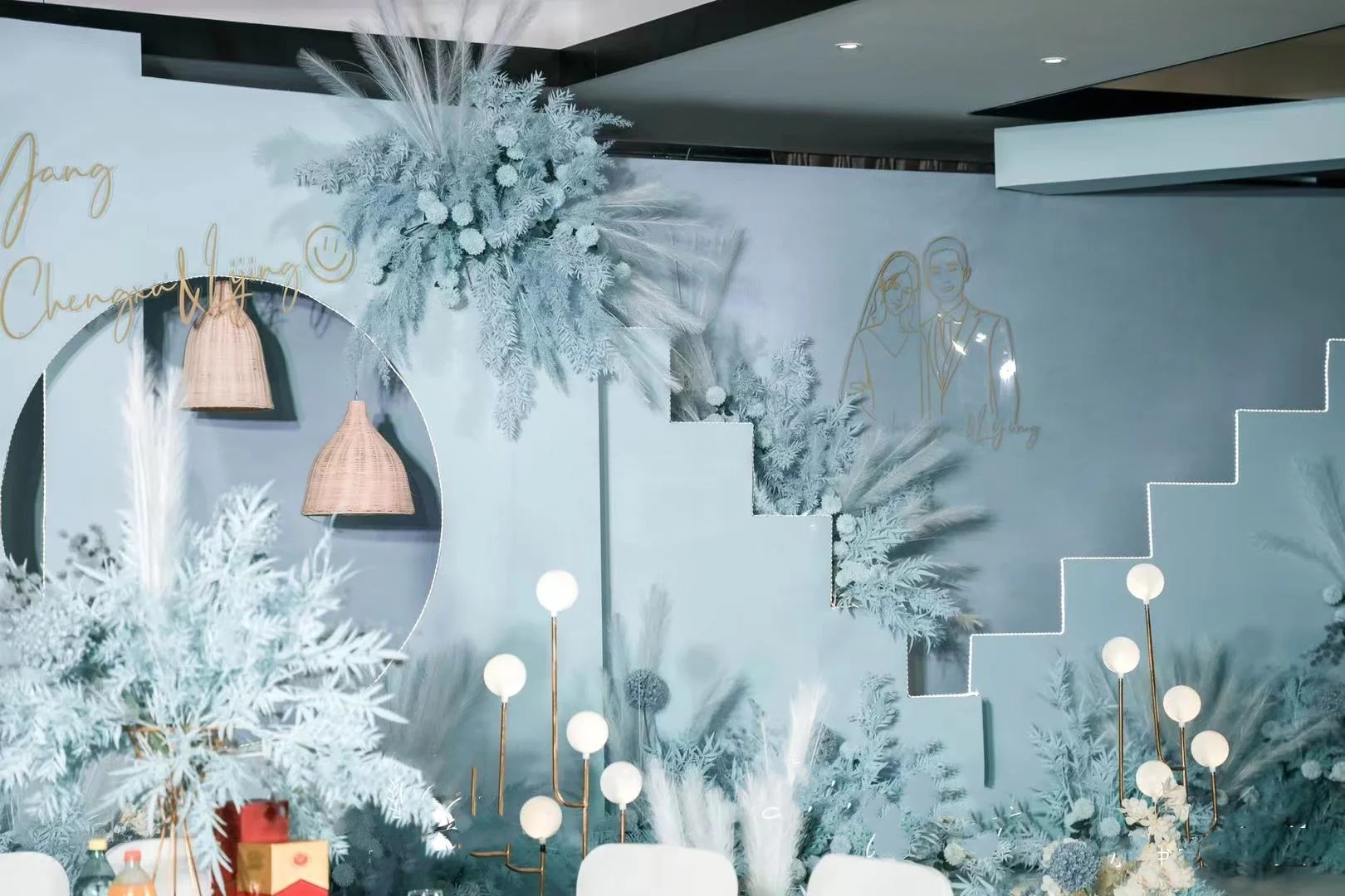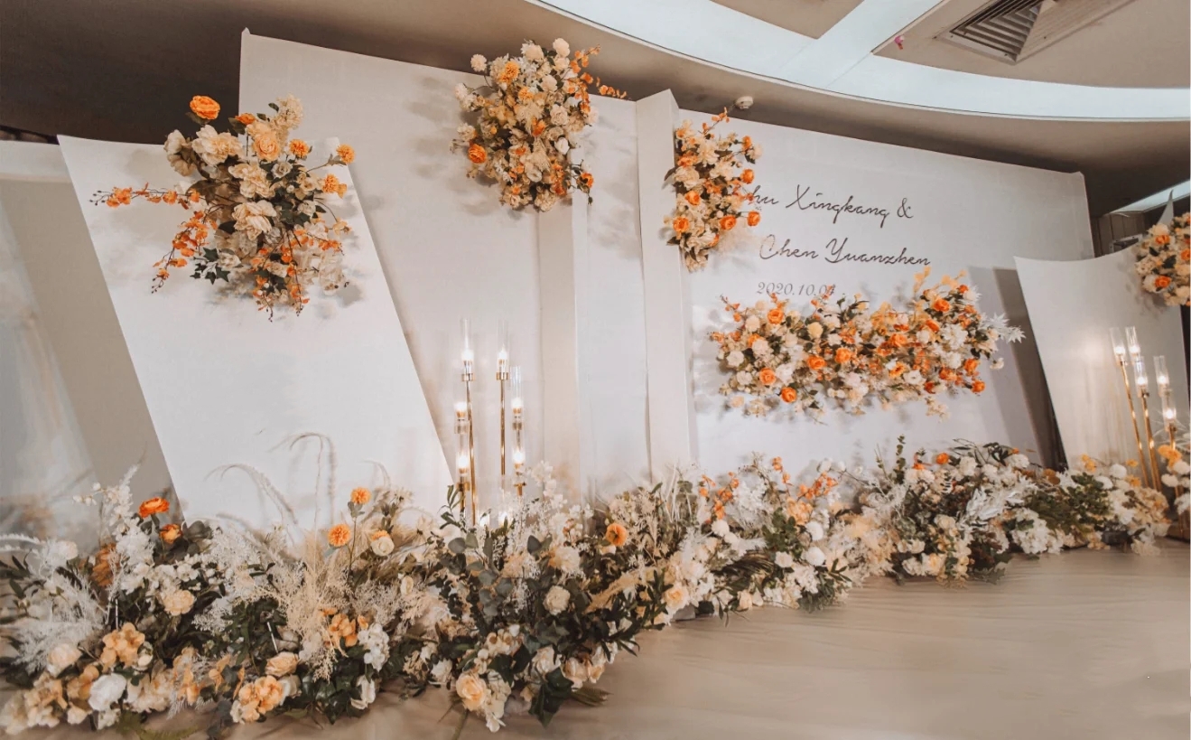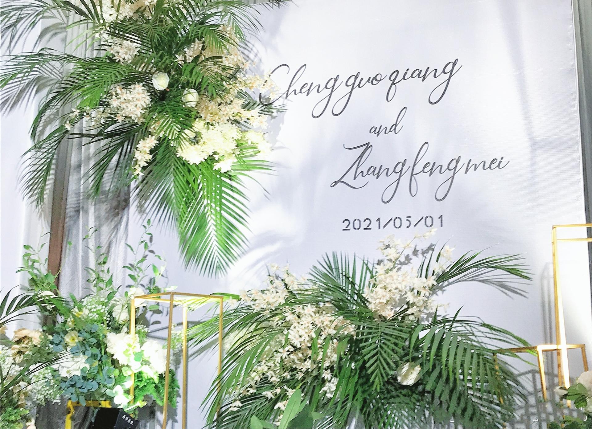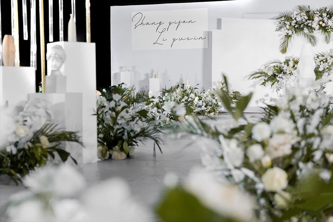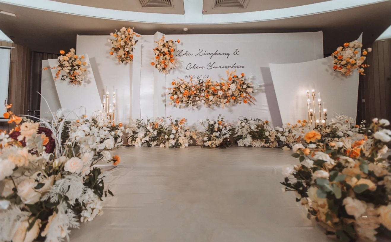 • 婚礼现场布置的相当的棒,感谢策划师,从初次沟通阐述自己的想法,到确定设计方案,全程高效而且顺利。主持人当场的发挥让我们也非常的满意,策划师也全程盯着费心,摄像摄影师傅也非常得投入,完全达到了之前设想效果,近乎于完美理想,从婚礼装饰的细节里能感受到工作人员的特别用心。