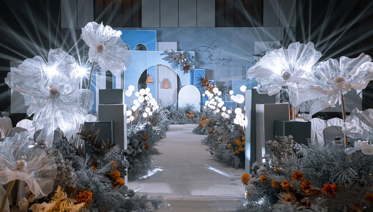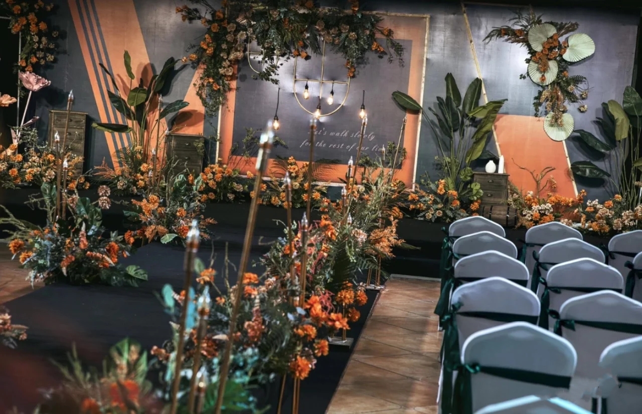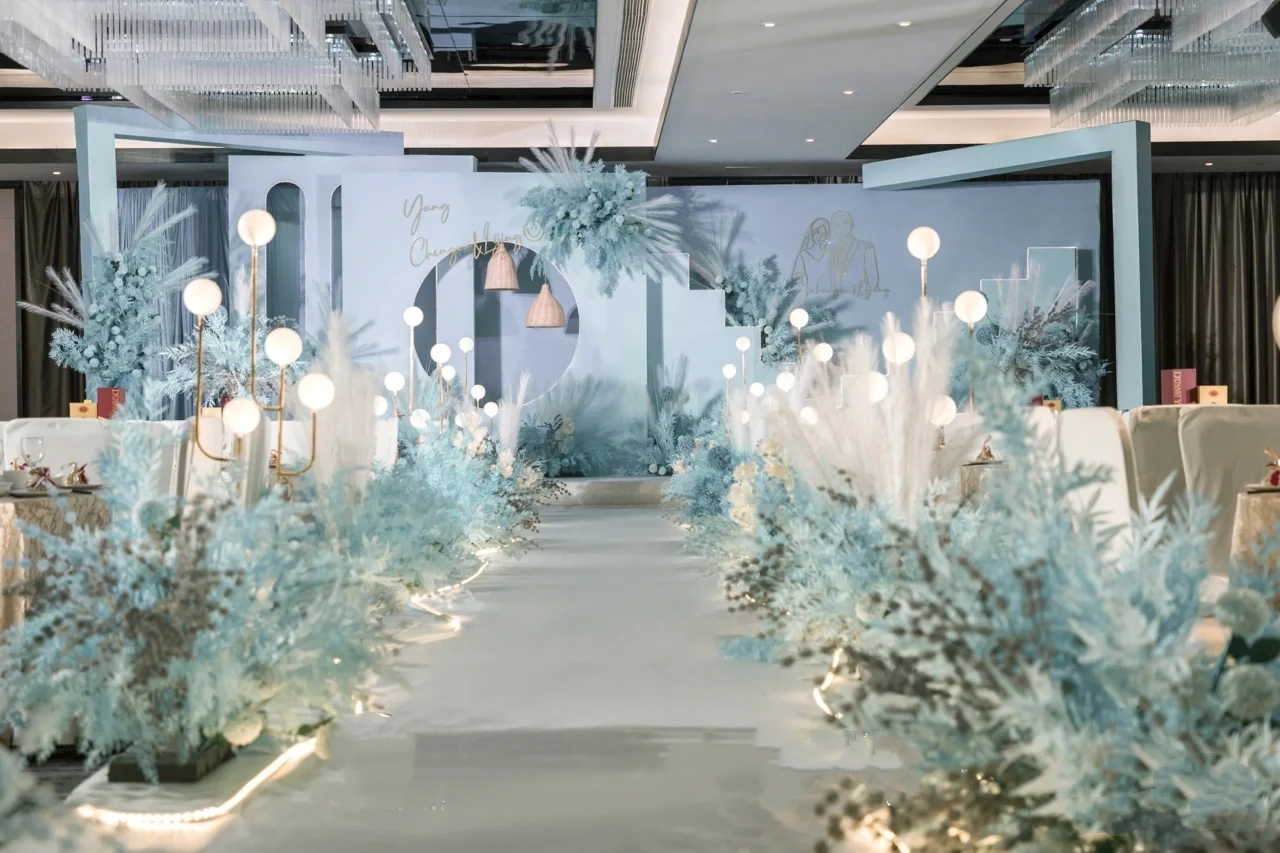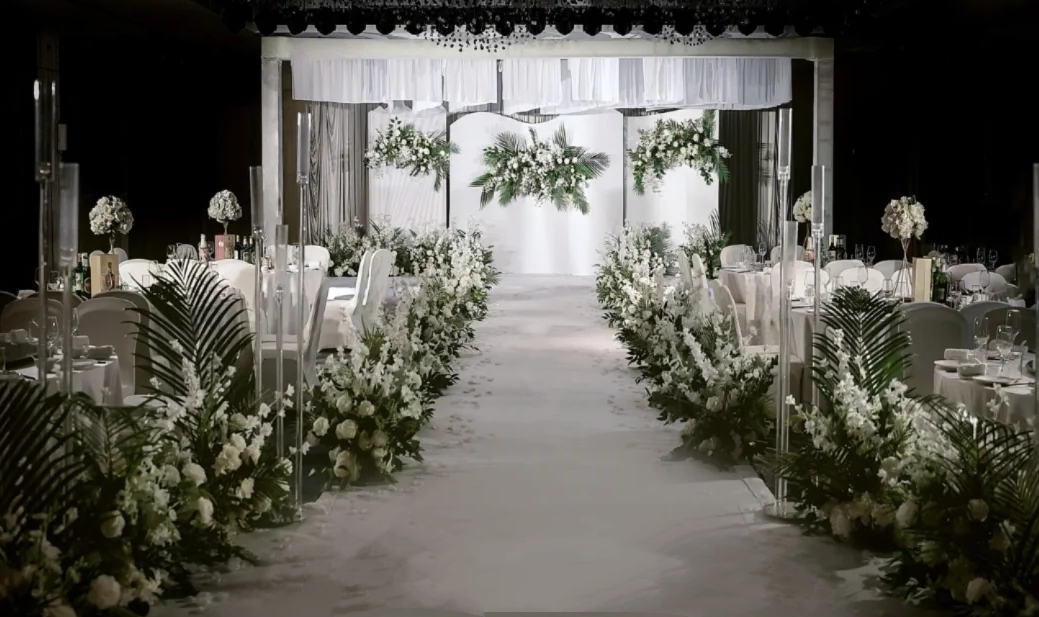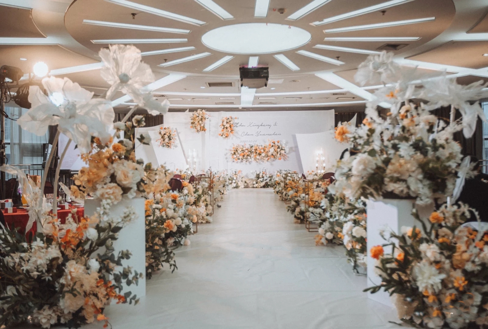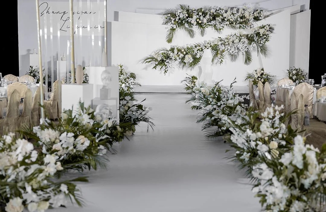 • 婚礼现场布置的相当的棒,感谢策划师,从初次沟通阐述自己的想法,到确定设计方案,全程高效而且顺利。主持人当场的发挥让我们也非常的满意,策划师也全程盯着费心,摄像摄影师傅也非常得投入,完全达到了之前设想效果,近乎于完美理想,从婚礼装饰的细节里能感受到工作人员的特别用心。