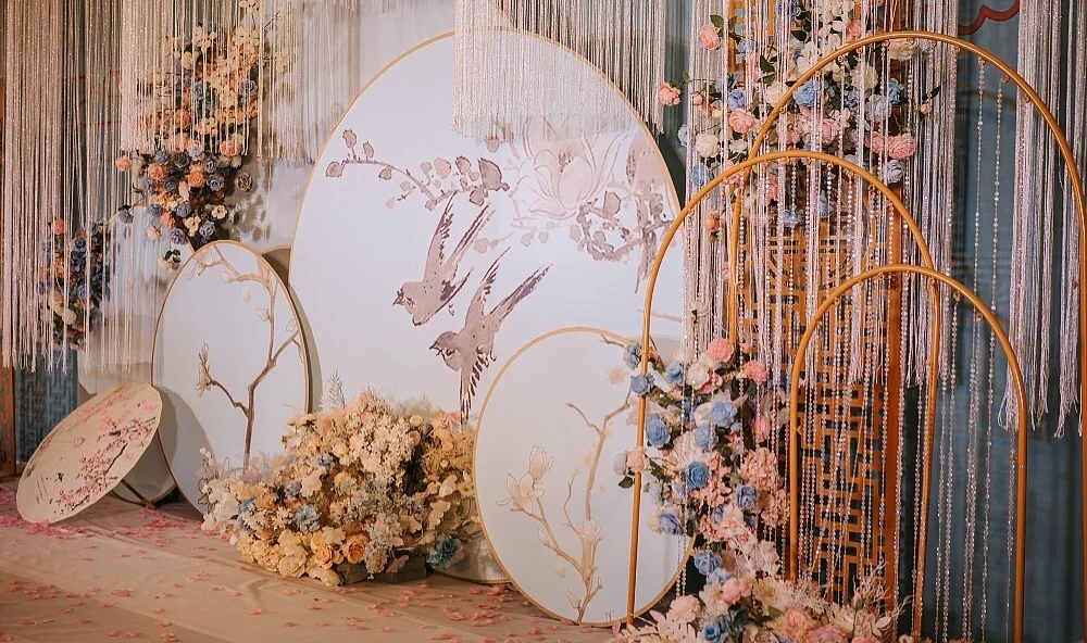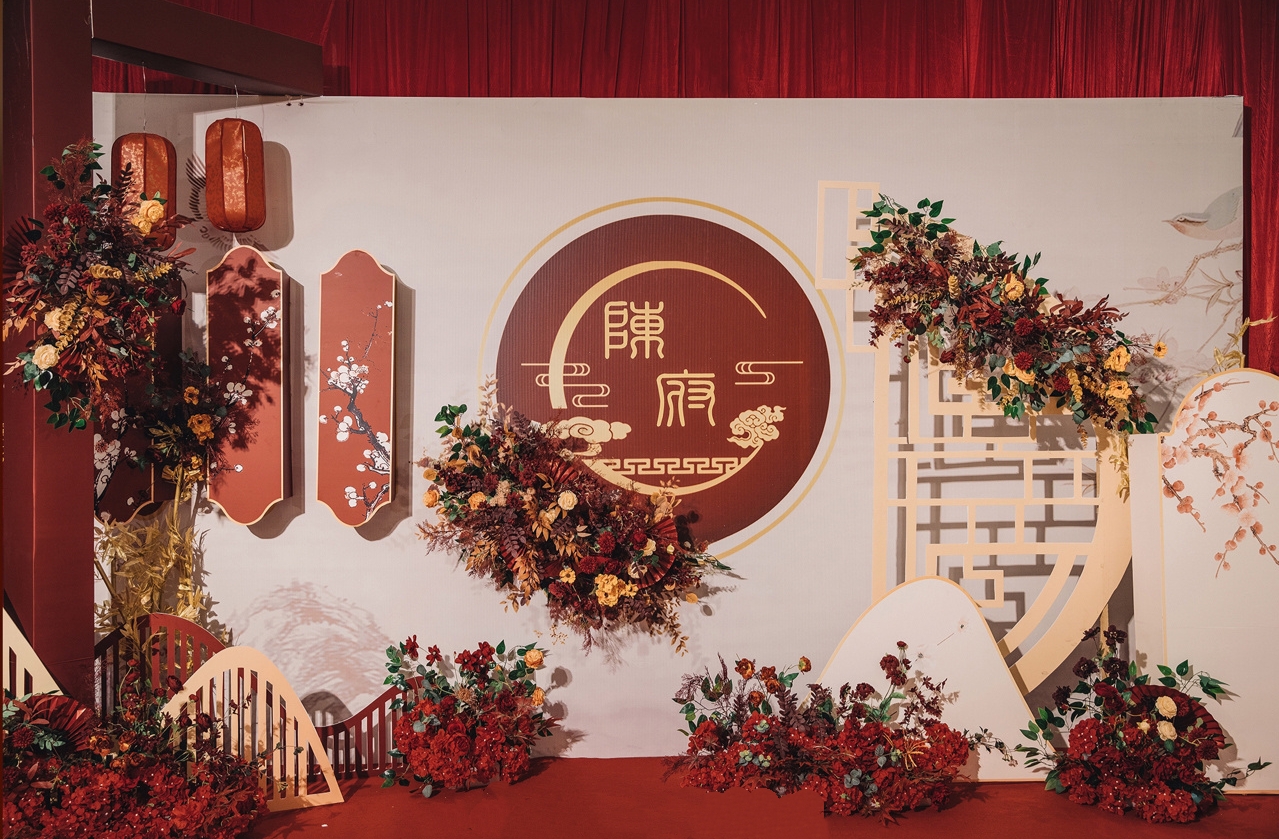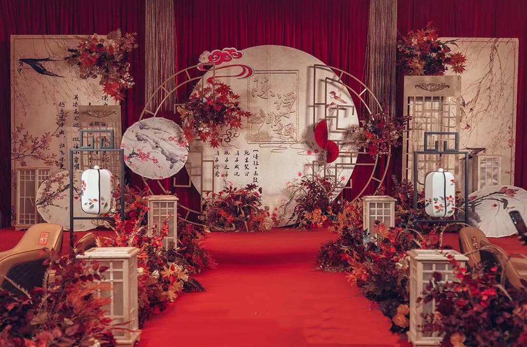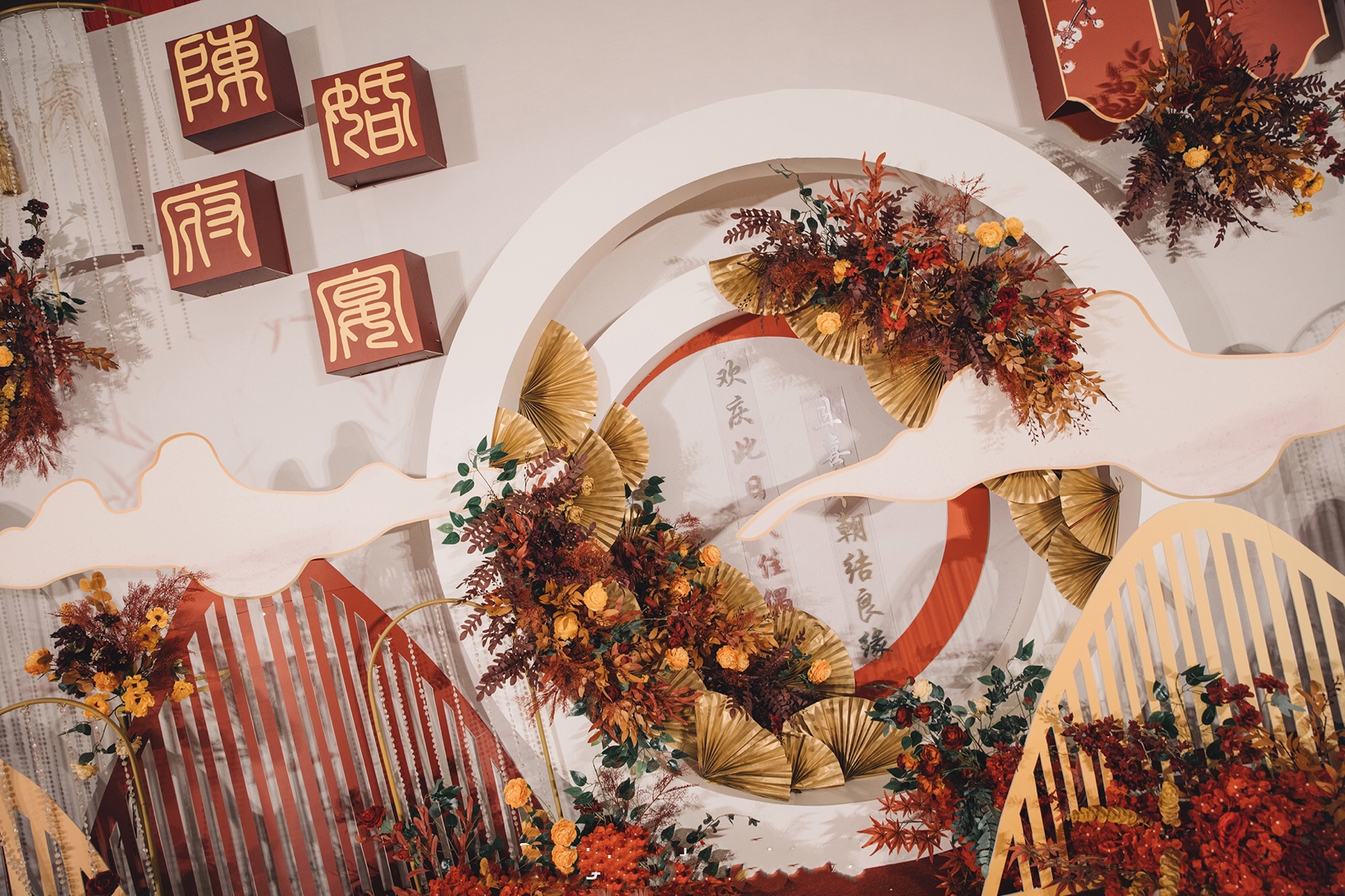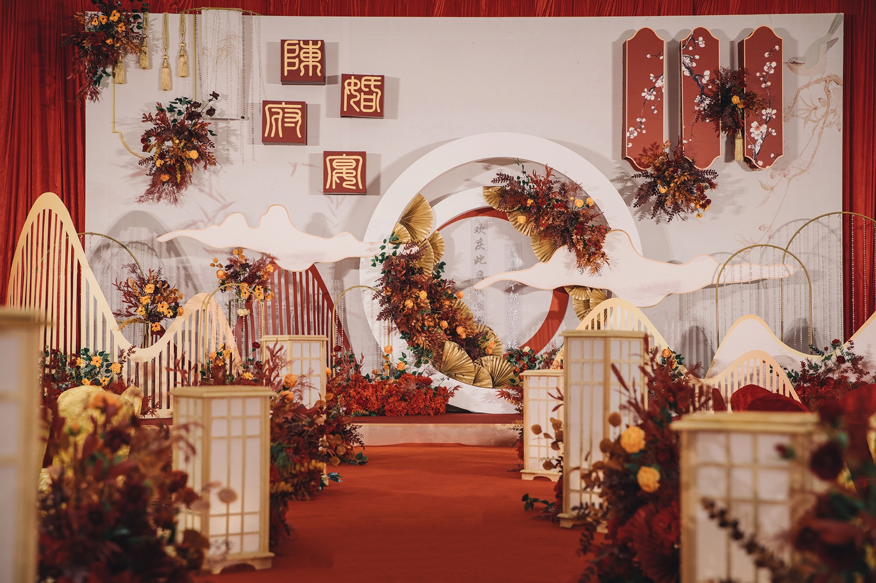 • 策划师说现在蛮流行新中式的,我们也觉得中国风的婚礼不错,而且还可以穿婚纱。于是就请策划师做了中国风的婚礼设计。果然很好看!现场氛围就很随意了,主持人对主持的氛围很好,不尴尬,不煽情。