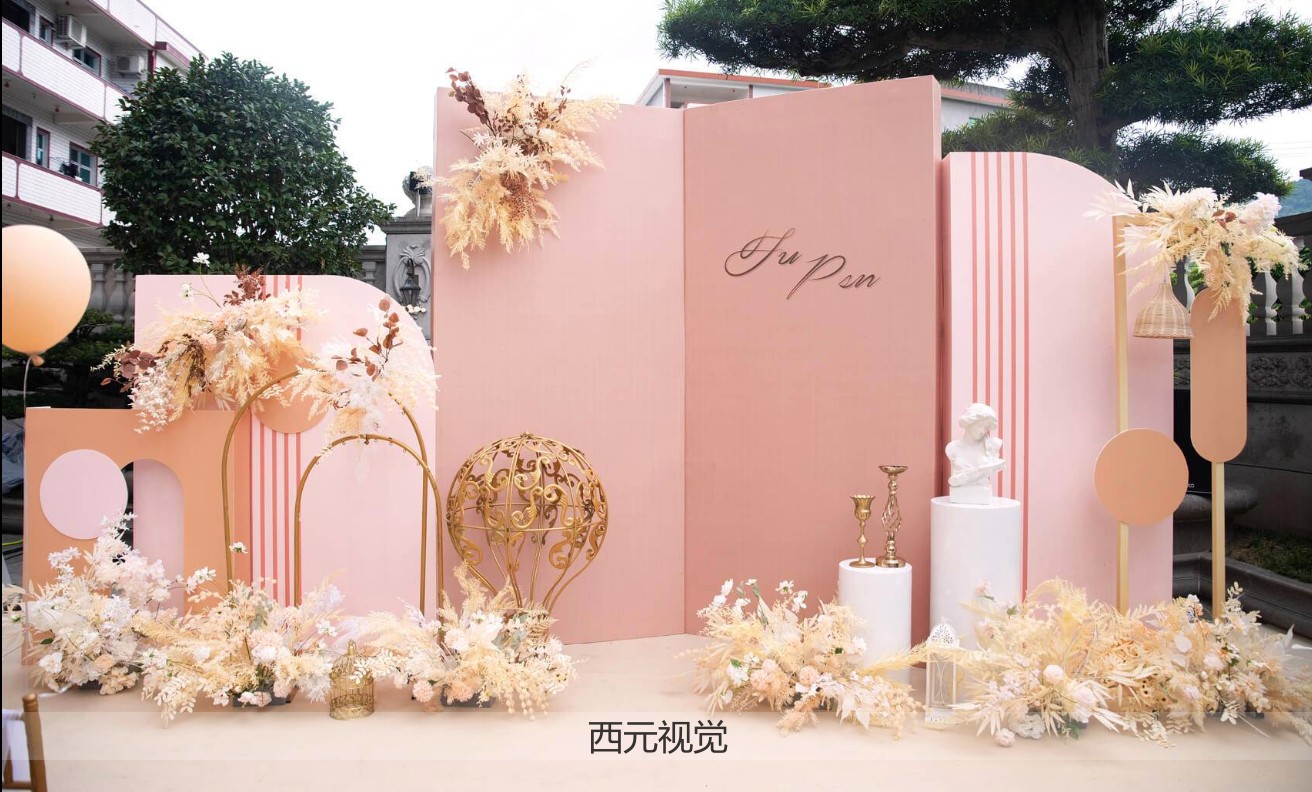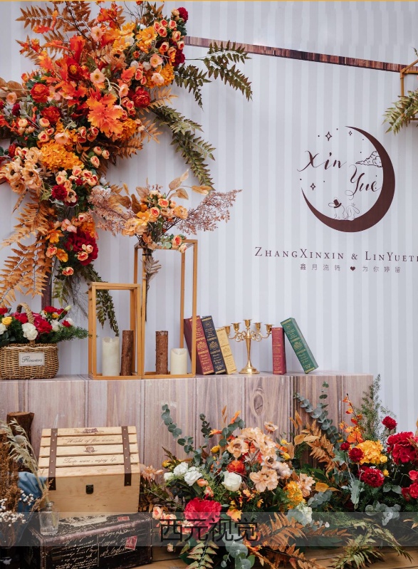 • 舞台布置+kt板+花艺+道具。