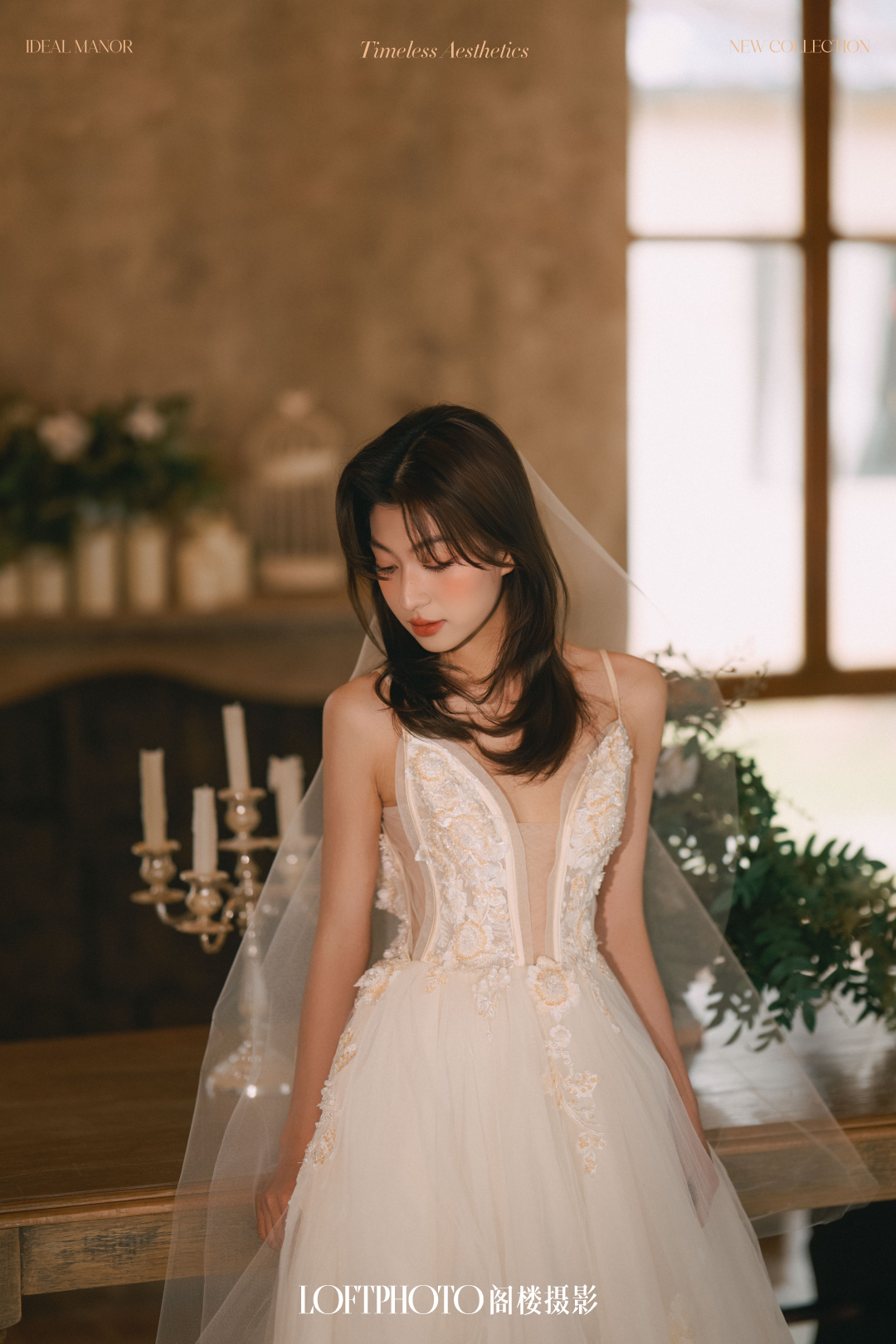 • 心里泛起的涟漪融入光影✨ 慵懒的暖黄色调晕开温柔💐 是每个女孩都无法抗拒的梦幻之境 · 摘下星星撒在纯洁白纱上👰🏻 高定婚纱刻画精致与优雅的少女形象 在温柔浪漫的空间轻舞 #室内婚纱照 拍摄:阁楼摄影