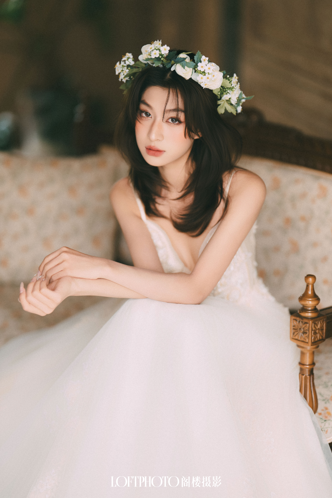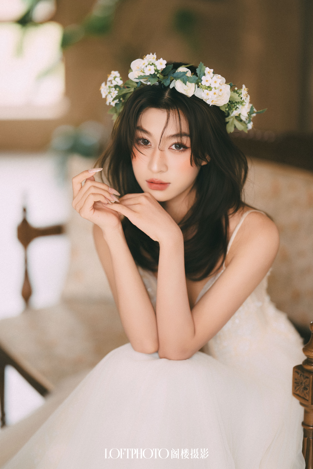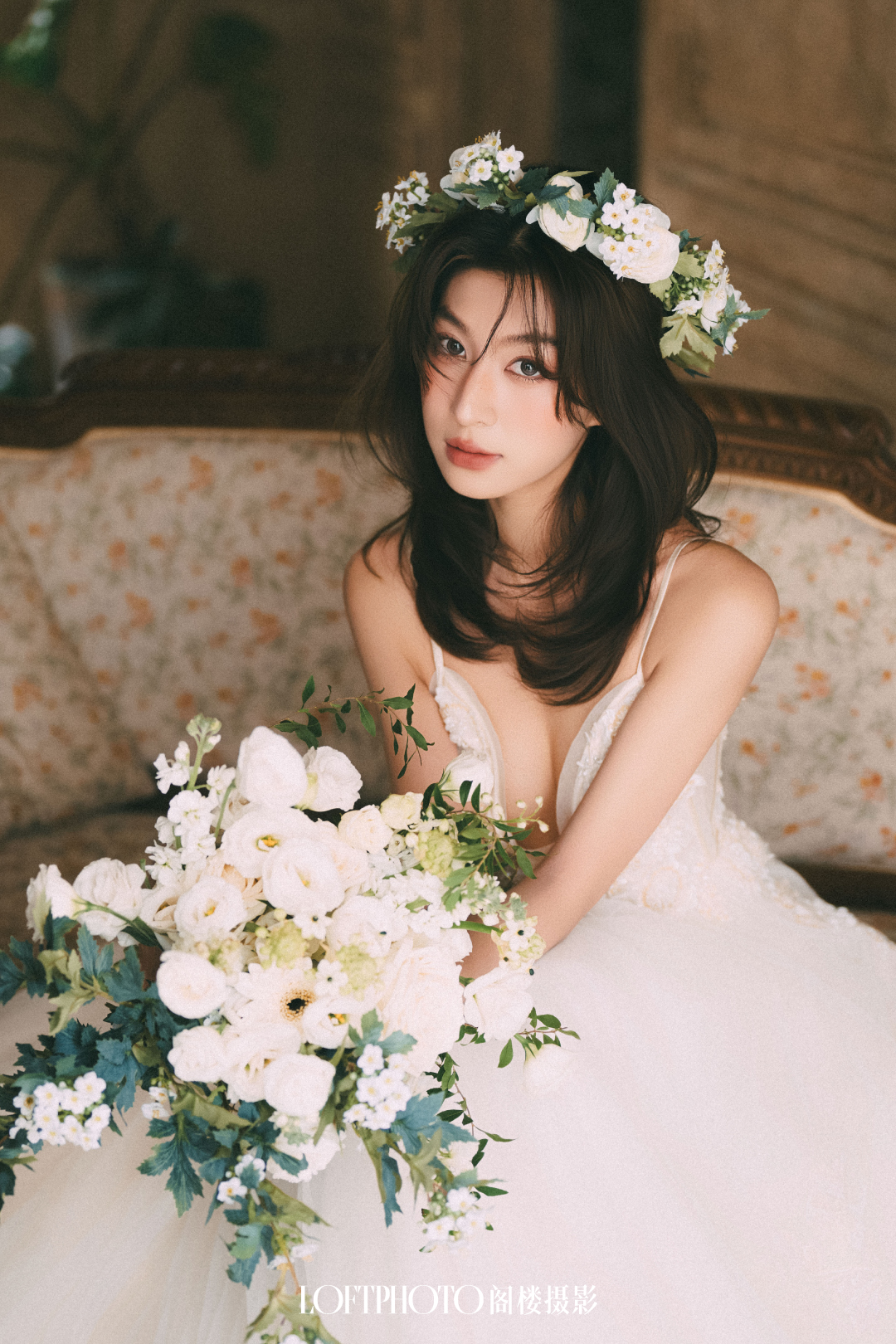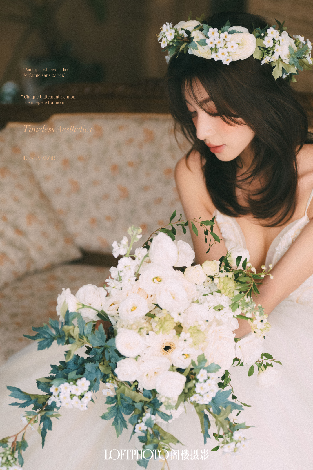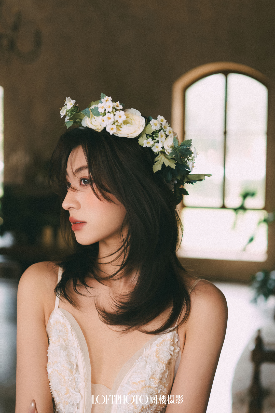 • 无论看多少次都还是会心动 手作花环、白蕾丝轻纱礼裙 法式花房里的少女婚纱照美得好梦幻 备婚姐妹快来拍!!! 拍摄:阁楼摄影#法式婚纱照